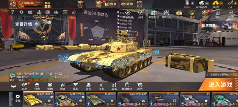 巅峰坦克【安卓OPPO】合作商家-2301安卓oppo-手电通用-凯隆-夏尔巴S装甲号-部件全红-技能满-锻造全开-研修满