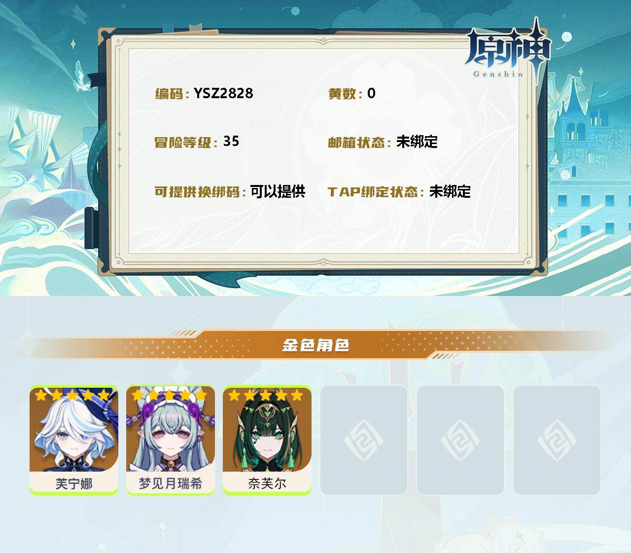 【YSZ2828】35级/30黄/女主/0命奈芙尔/梦见月瑞希/芙宁娜