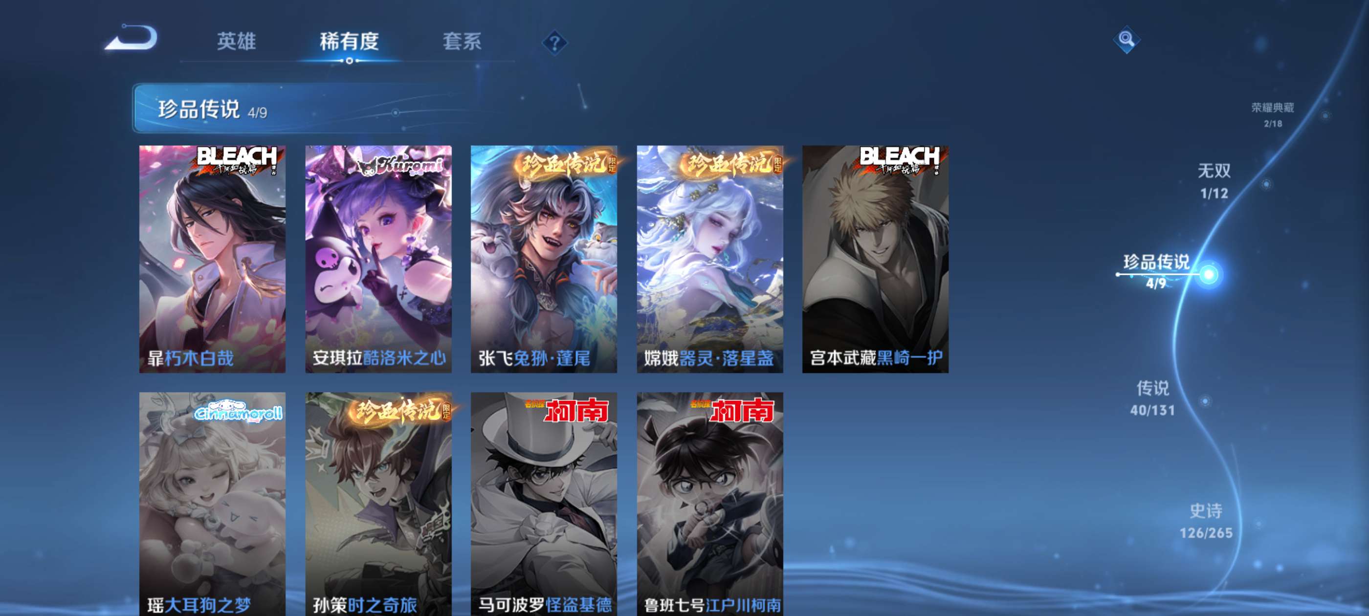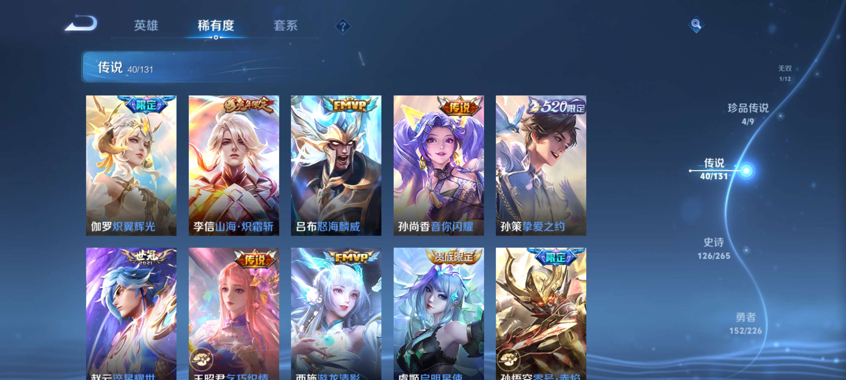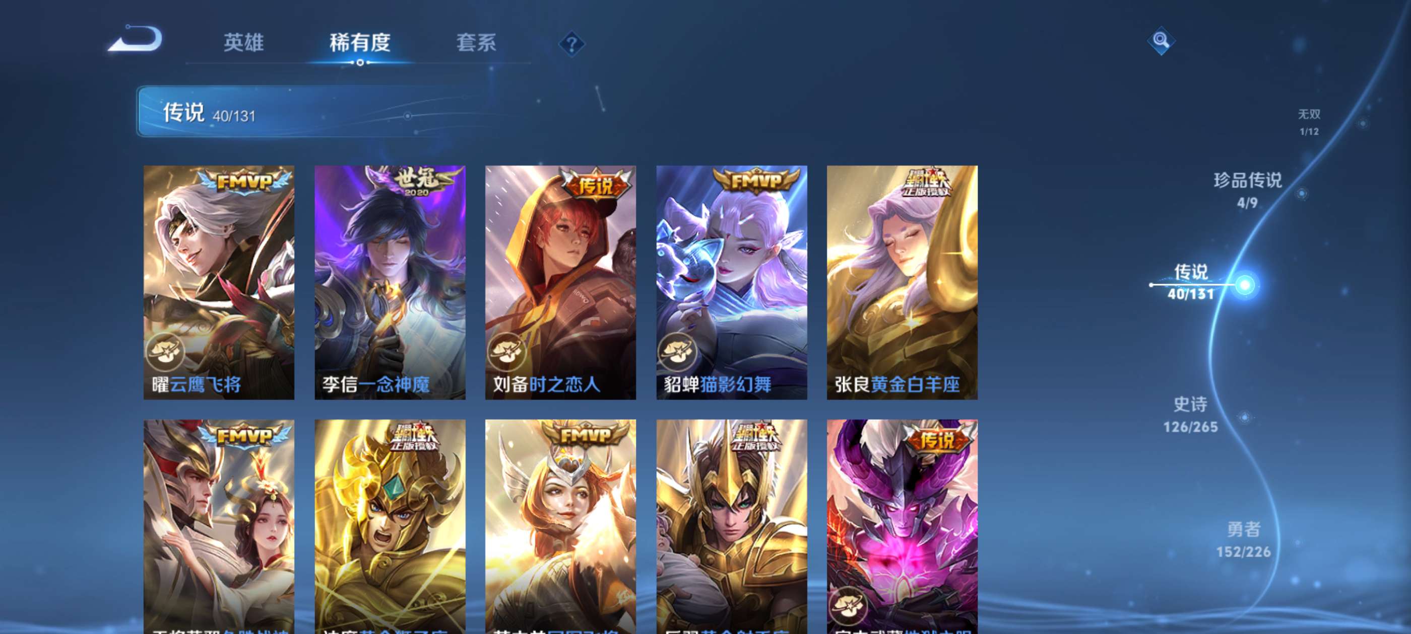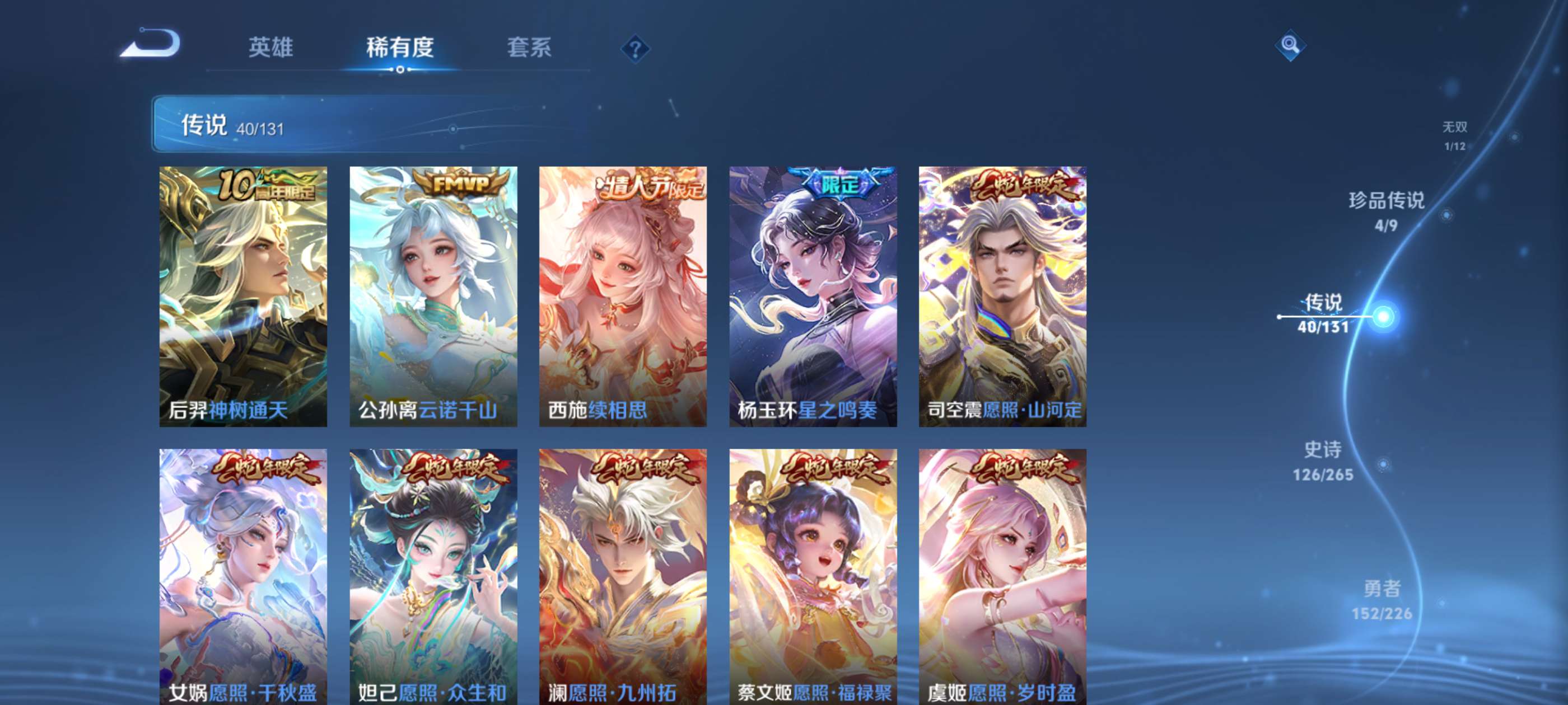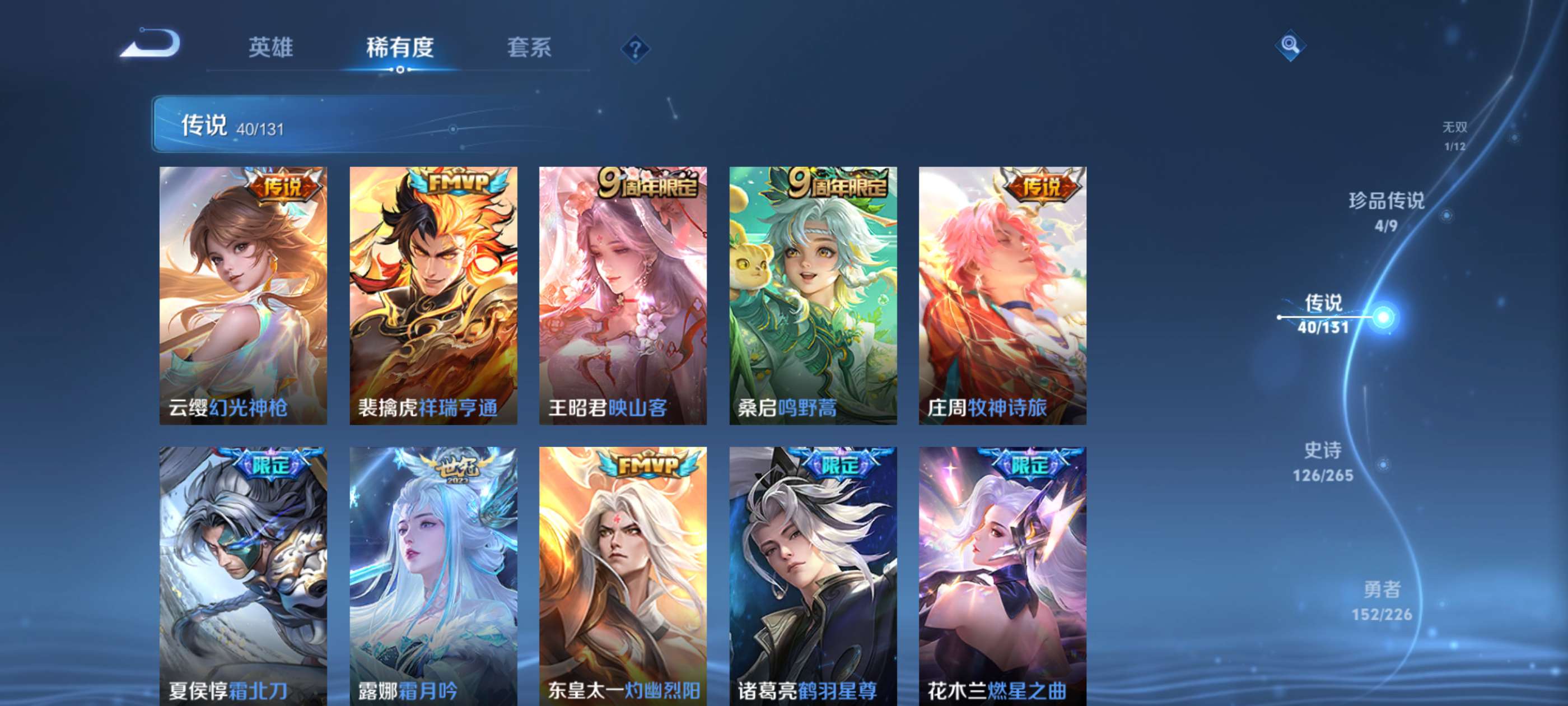 王者荣耀【安卓QQ】安卓QQ-可二次-V9-395皮-2典藏-1无双-4珍品传说-40传说