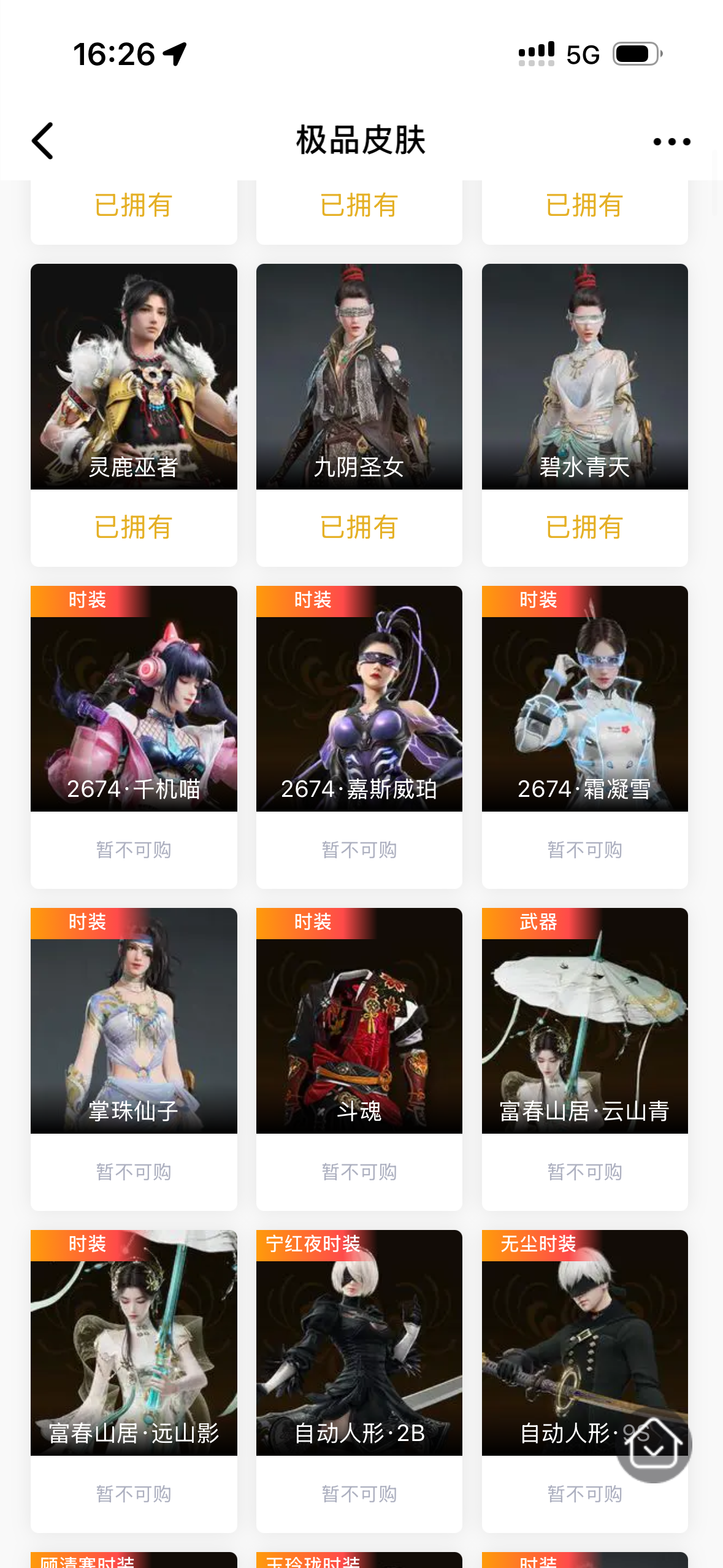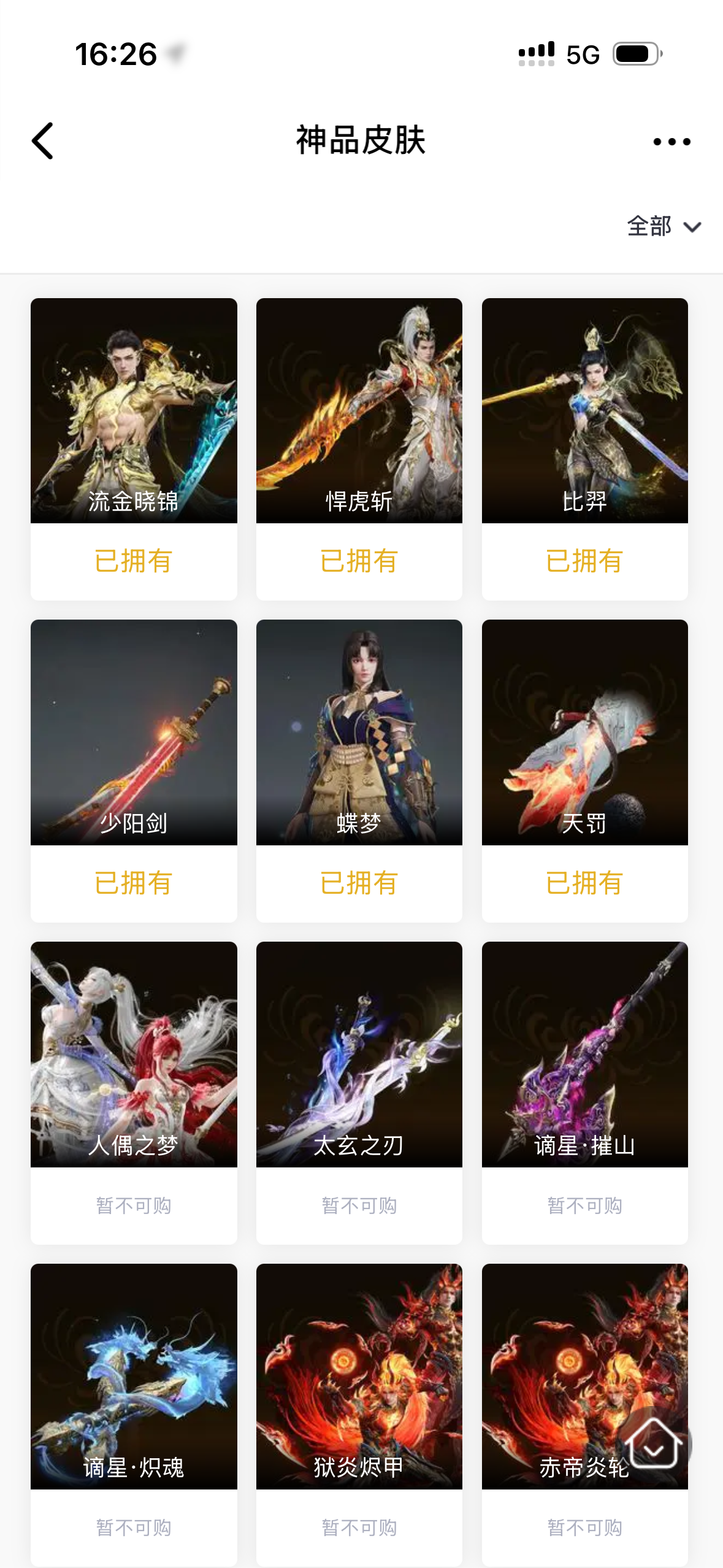 自己上号看 包不亏 有斩马到红皮 每个英雄和武器都有皮肤 还有横刀的比羿 好久没玩了