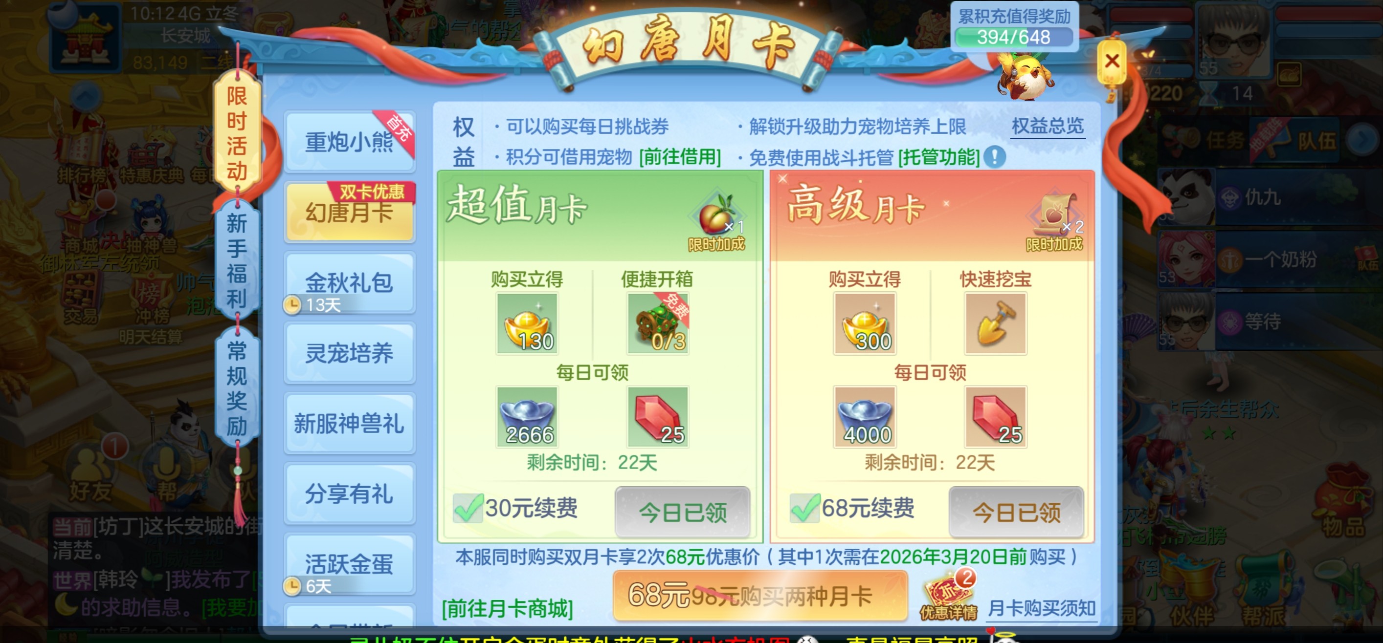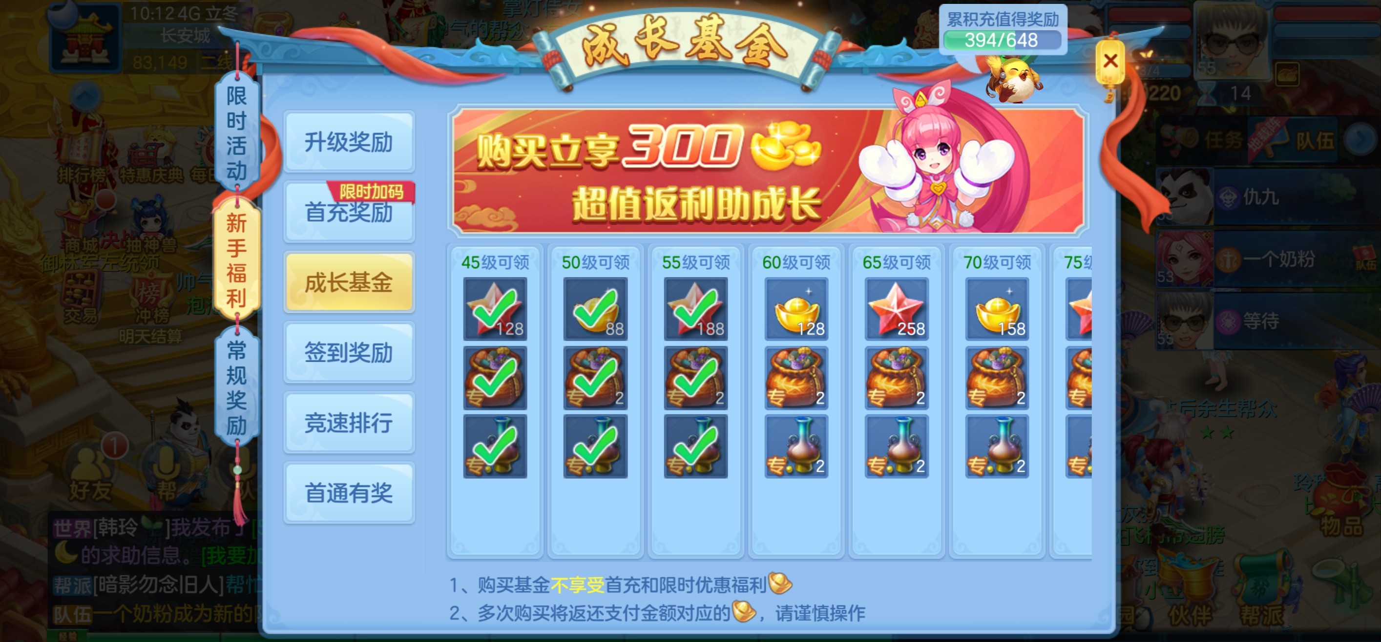 月卡和基金都开了,还有782元宝,通灵符16张,简易通灵符37,极品护符