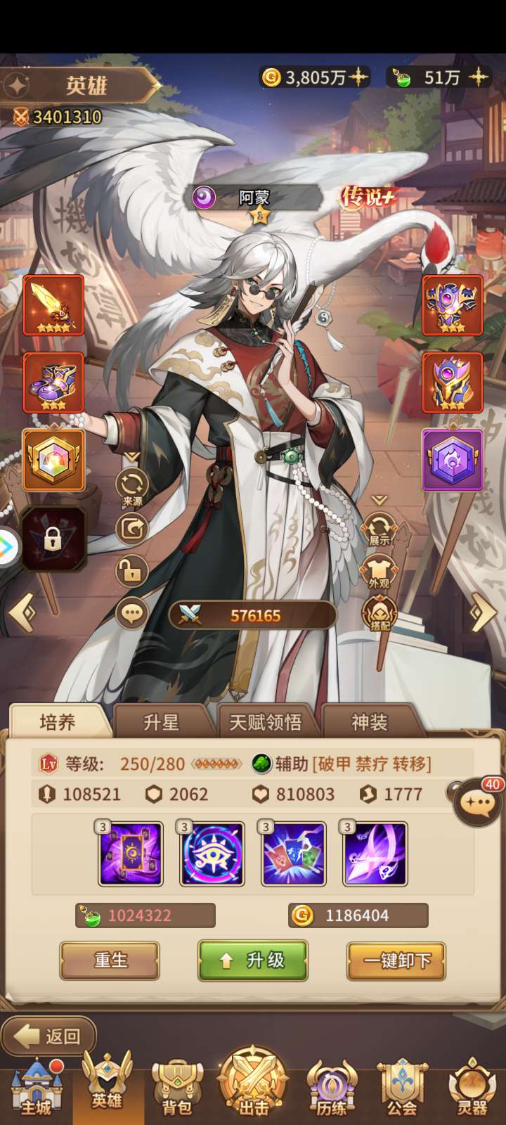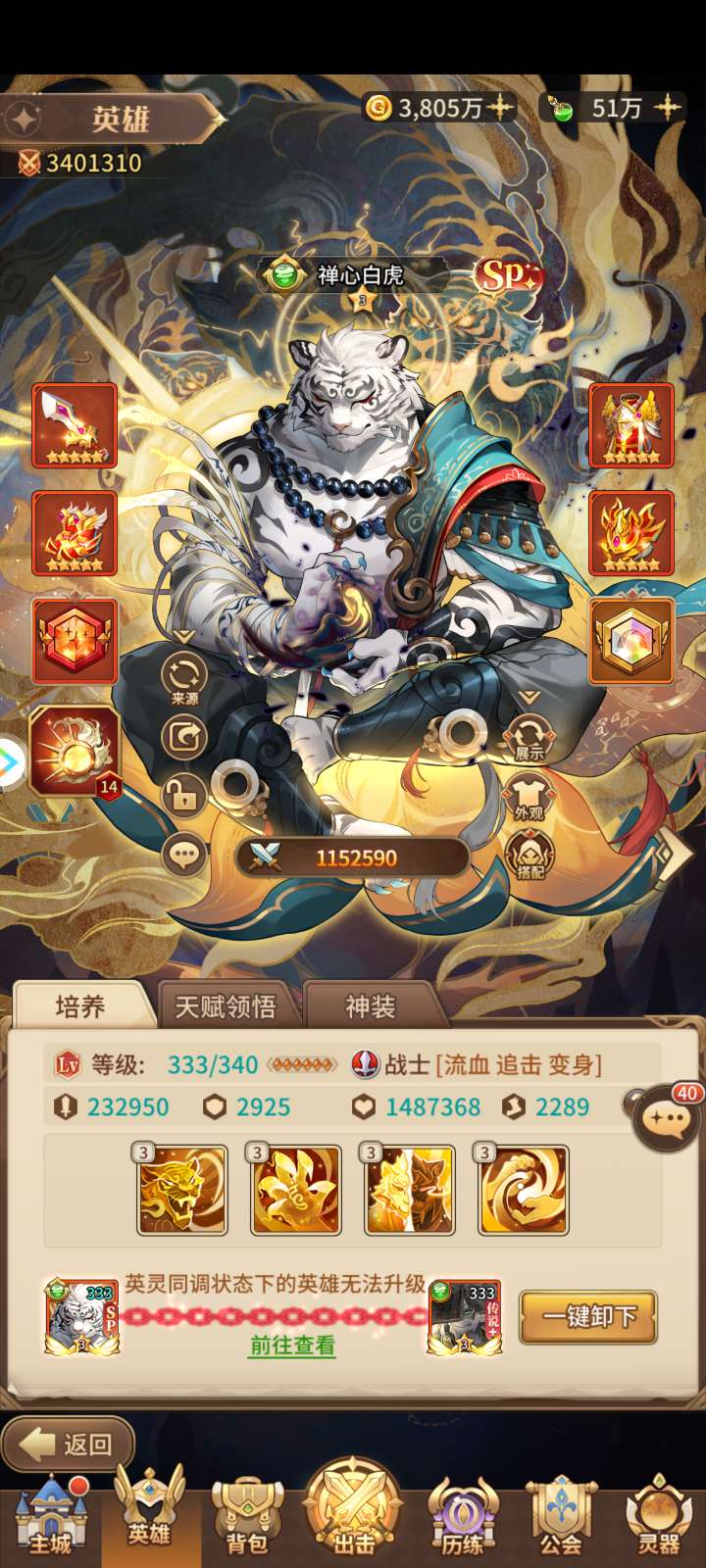 闪烁之光【安卓官方】幻月服小号13星白虎,11星阿蒙,10星海拉,哈迪斯
