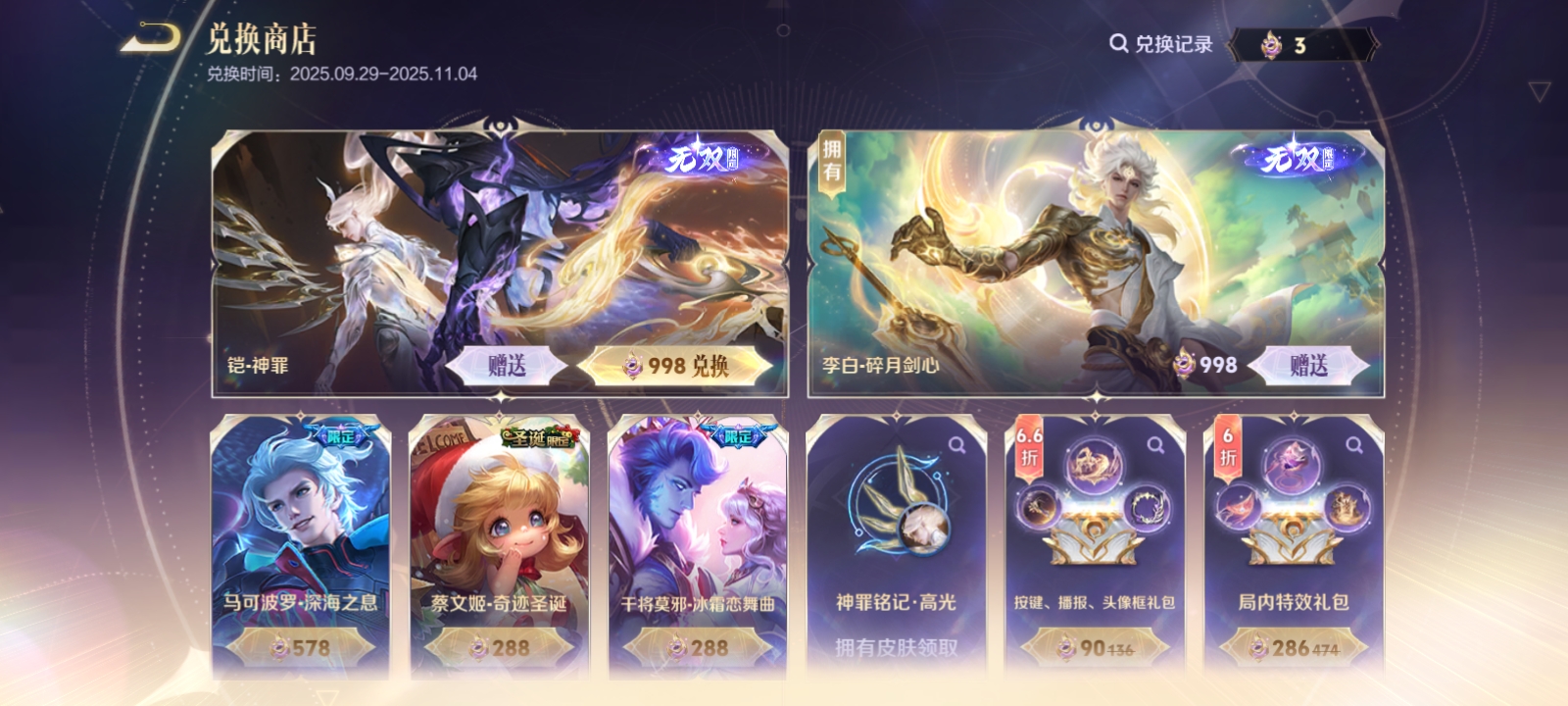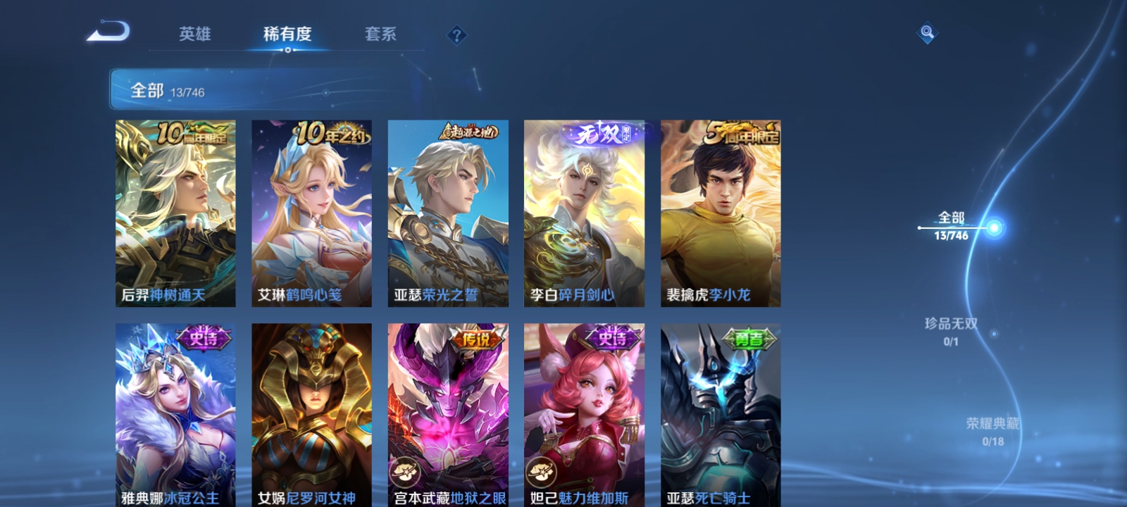 皮肤14 英雄21 永恒钻石 无双皮肤1 传说2 其他皮肤4-李白无双碎月剑心,。每周星期六星期天交易。