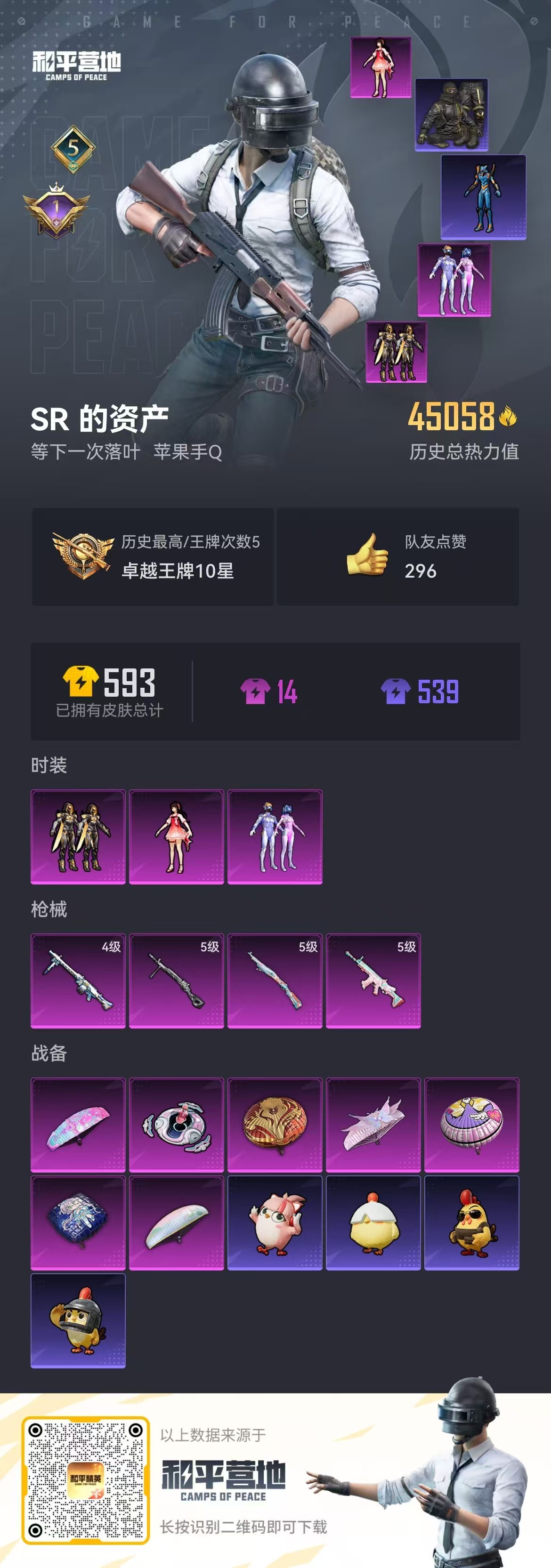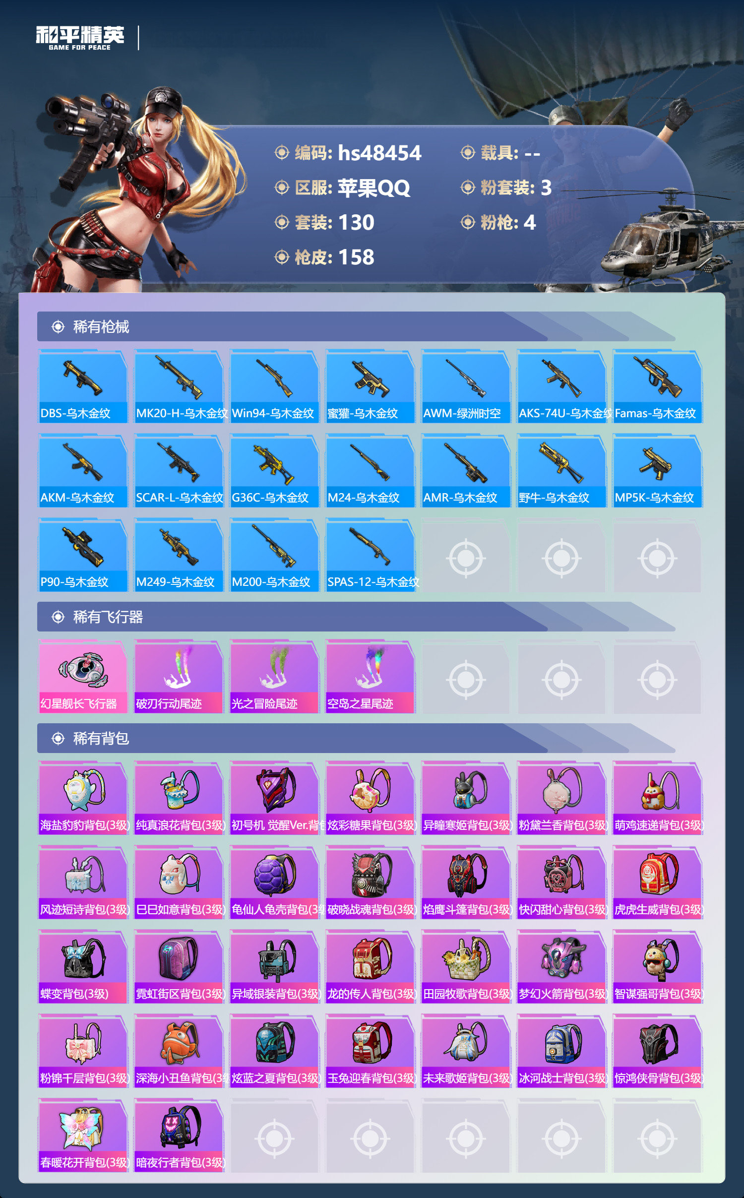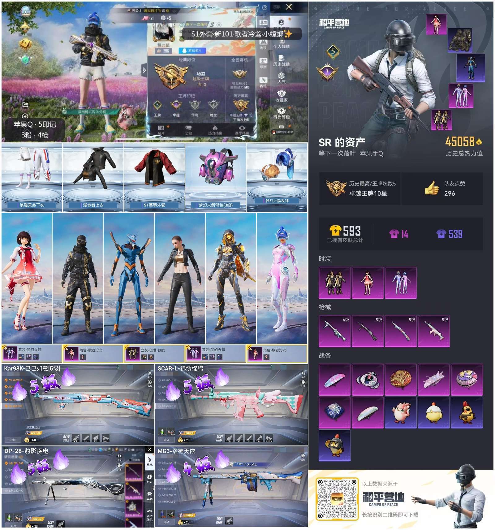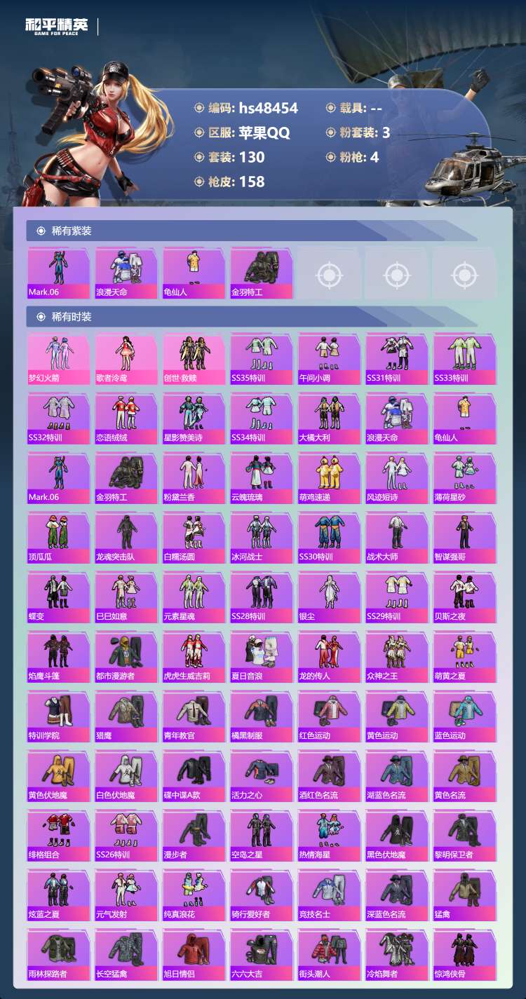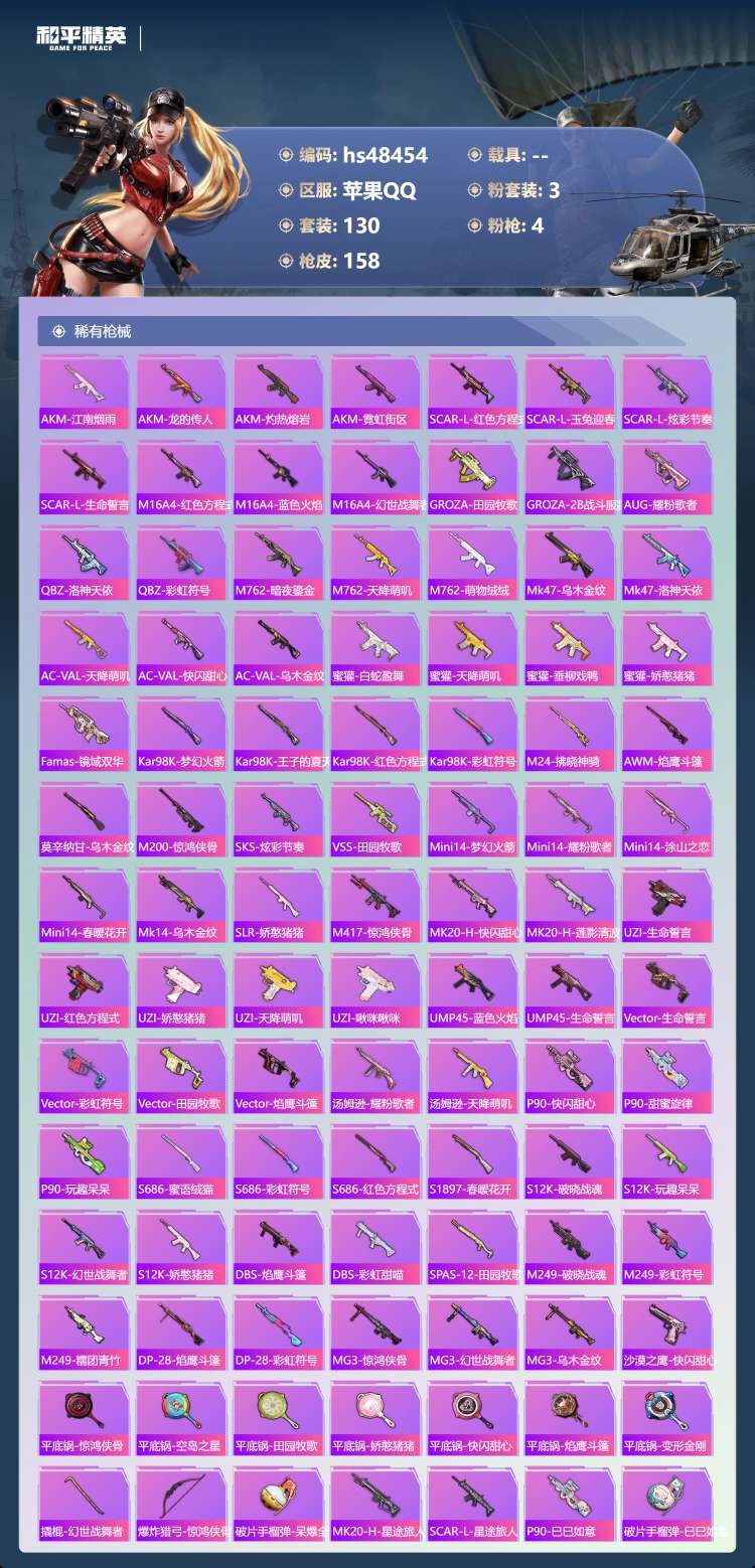 和平精英【苹果QQ】hs48454 苹果手Q-5王牌印记-3粉装-4特效枪-45058热力值-130套装-158枪皮-1