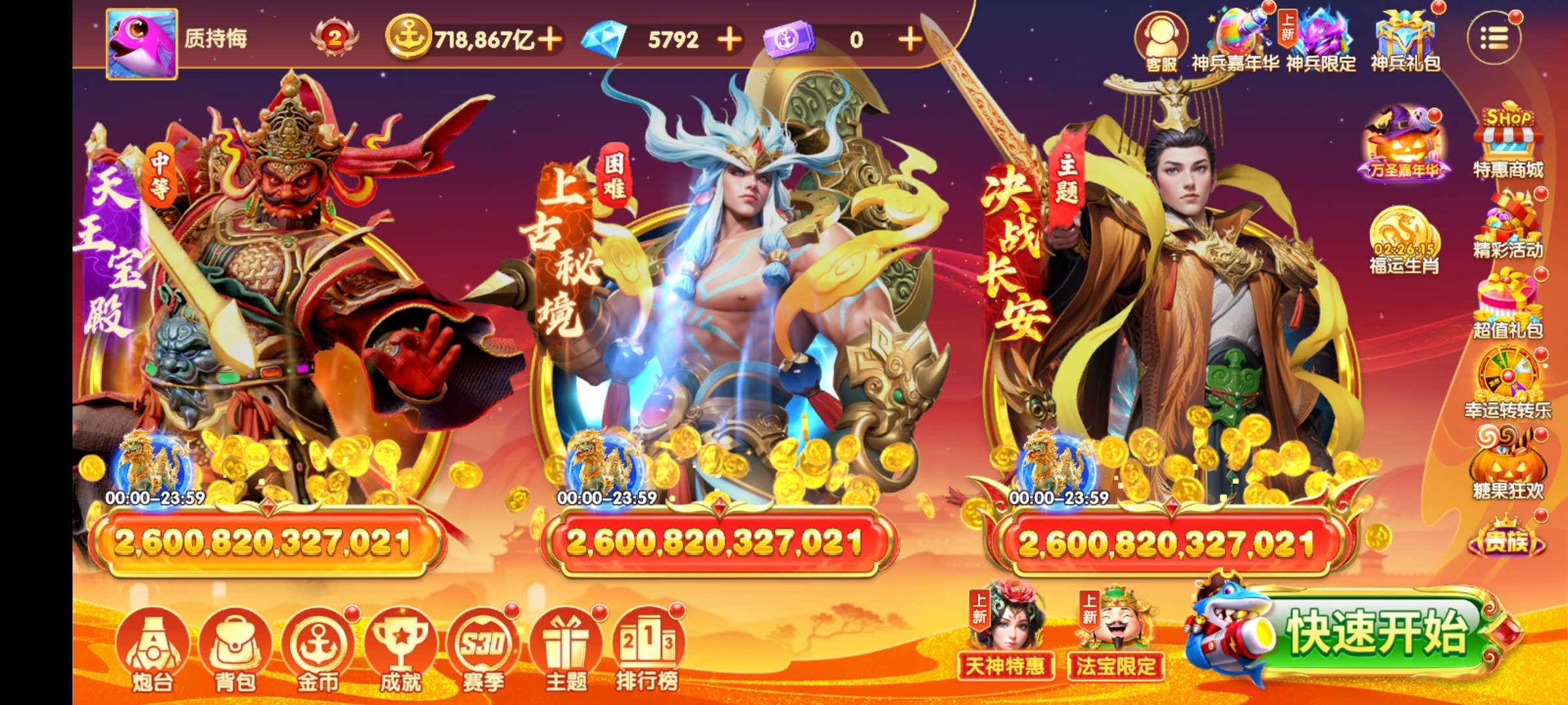 乐乐捕鱼【安卓官方】乐乐捕鱼v2金币号 72万亿两星关羽还差一个三星