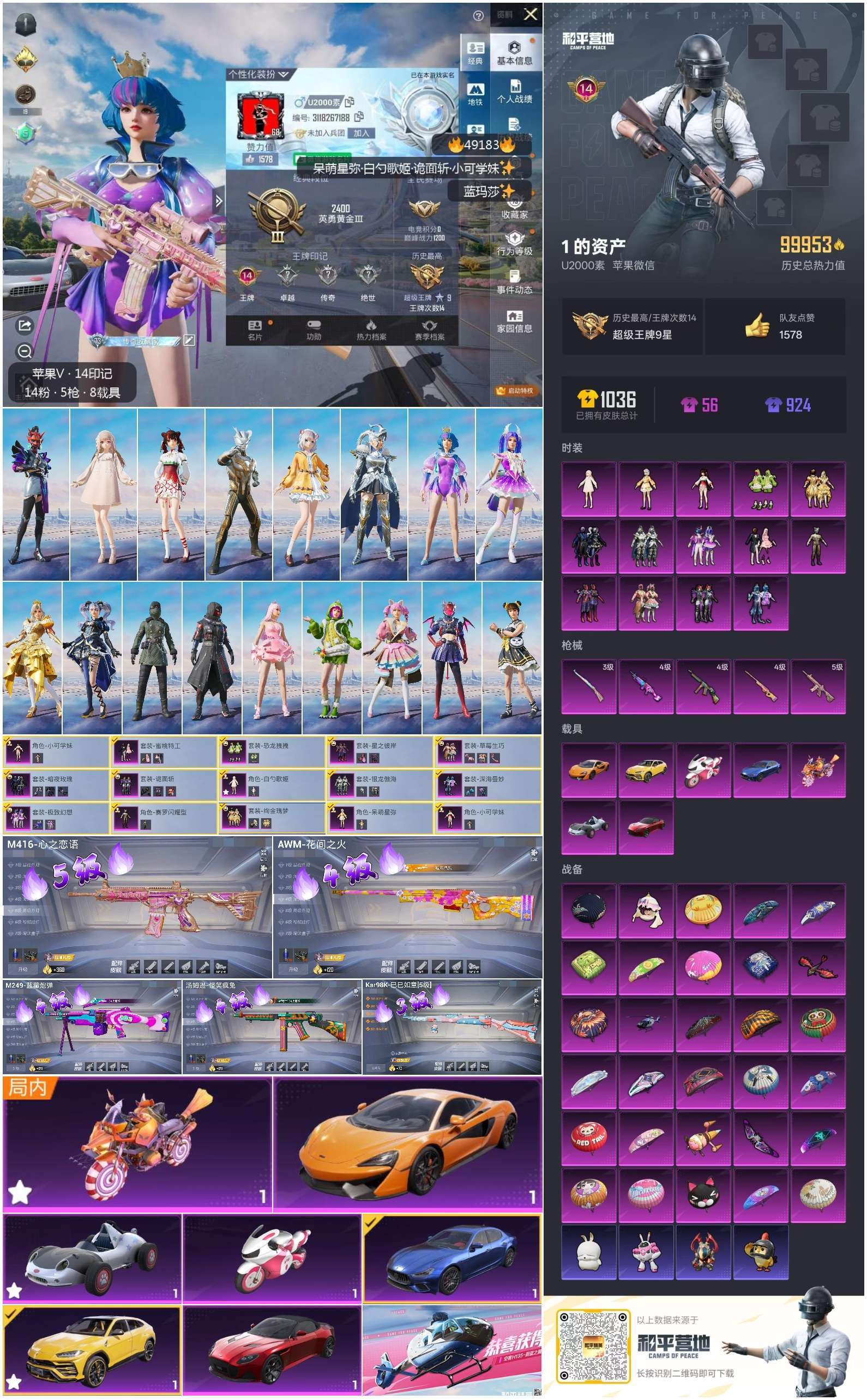 hs49183 苹果v-14王牌印记-14粉装-5特效枪-7载具-99953热力值-236套装-2