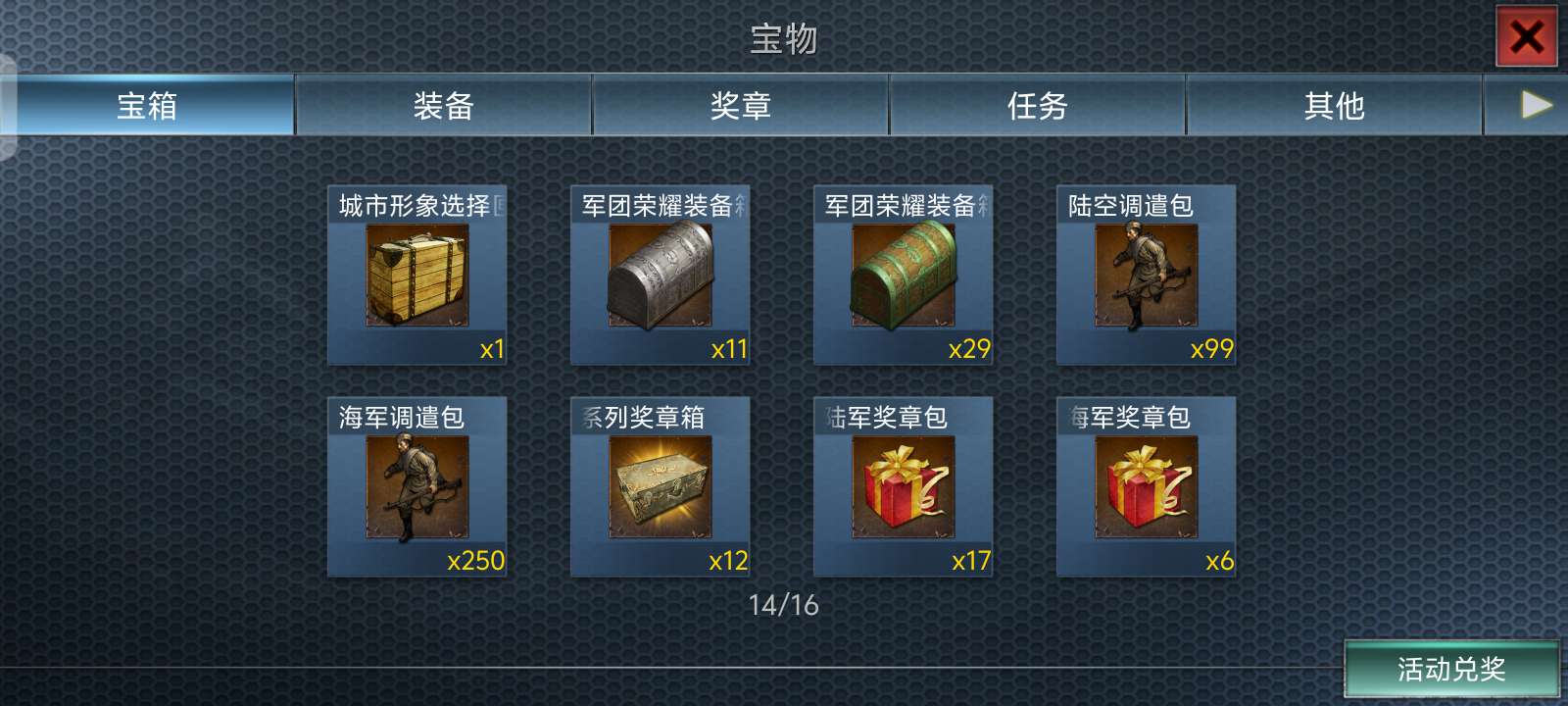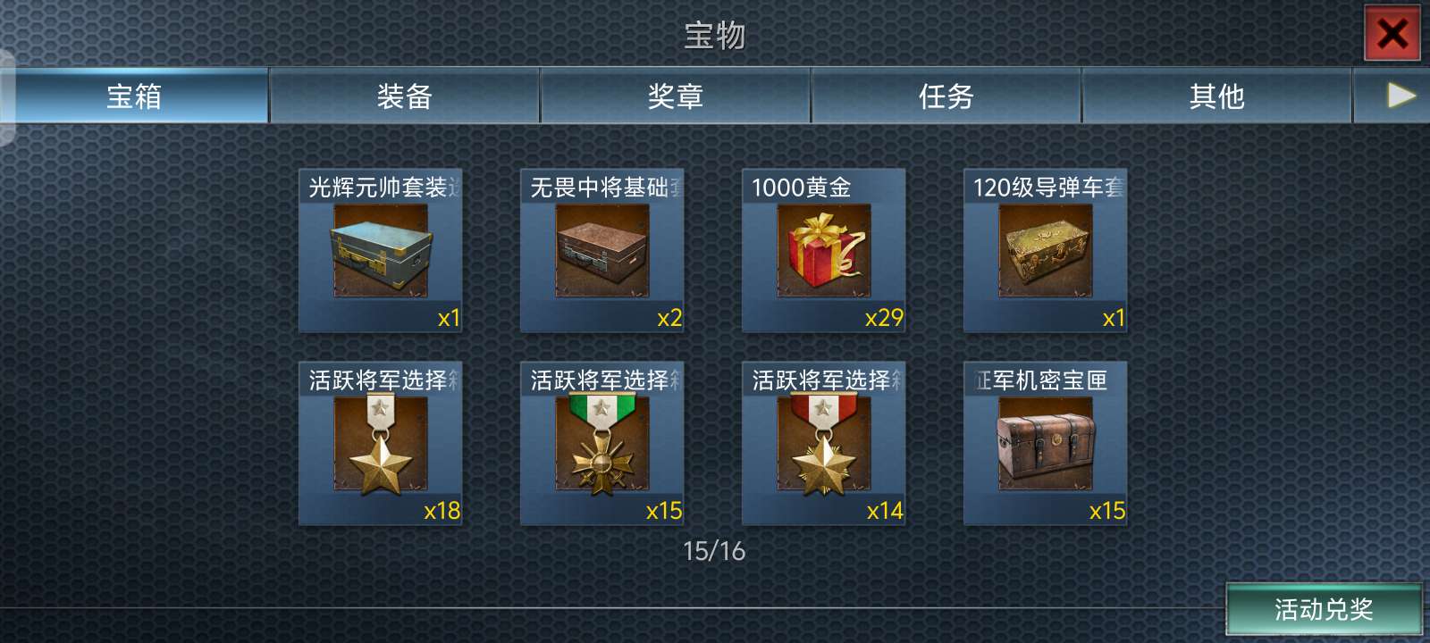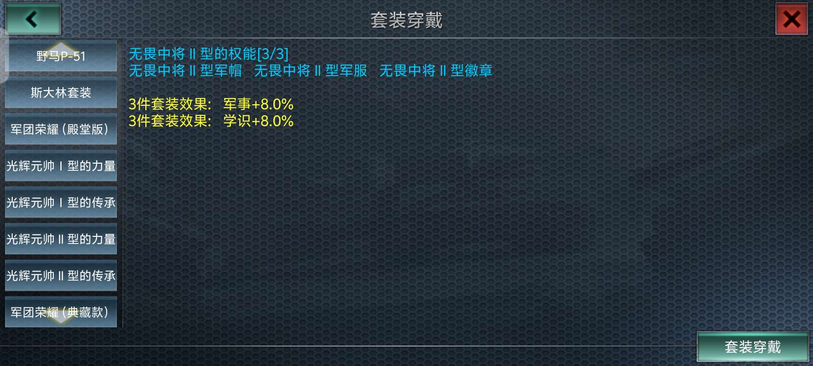 上将两件,军团一套,光辉四件。