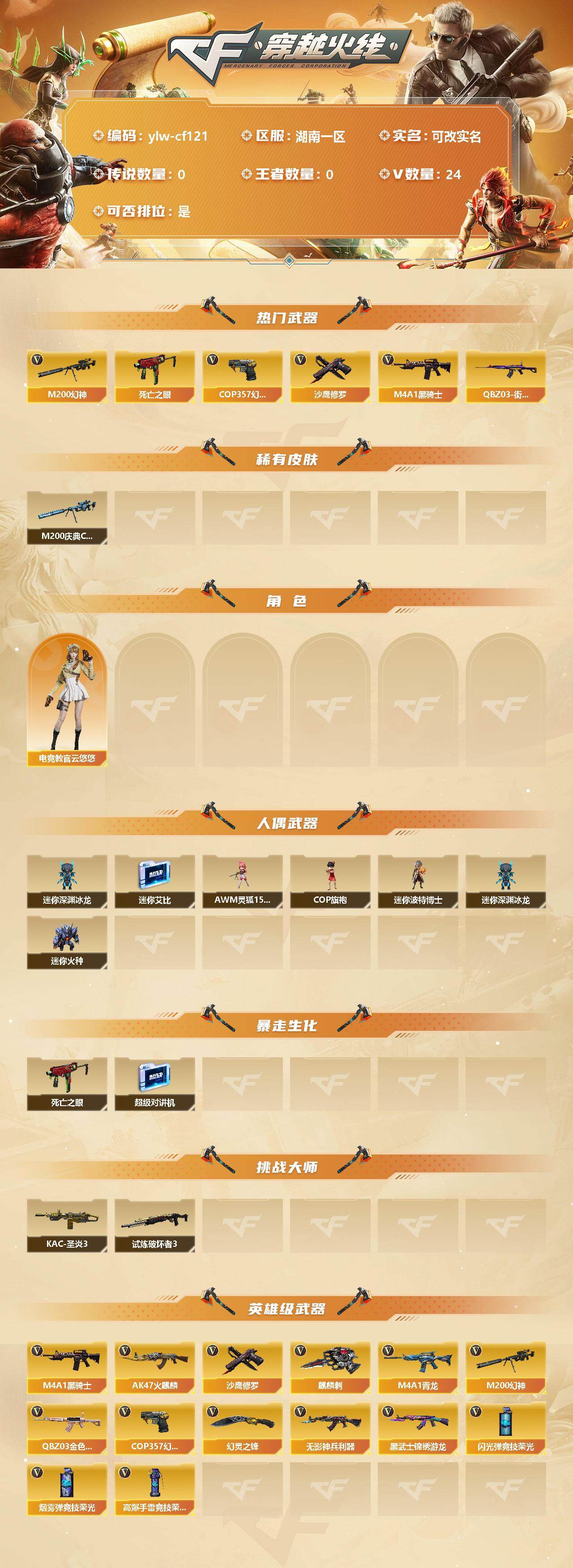 穿越火线(CF)【端游】【商品标题】:湖南一区-24V-0王者-0炫金
