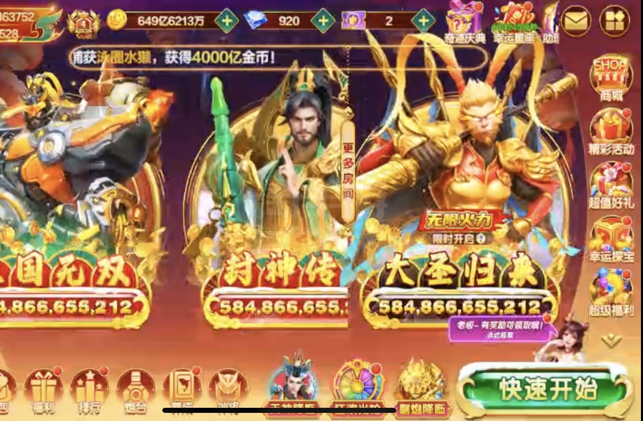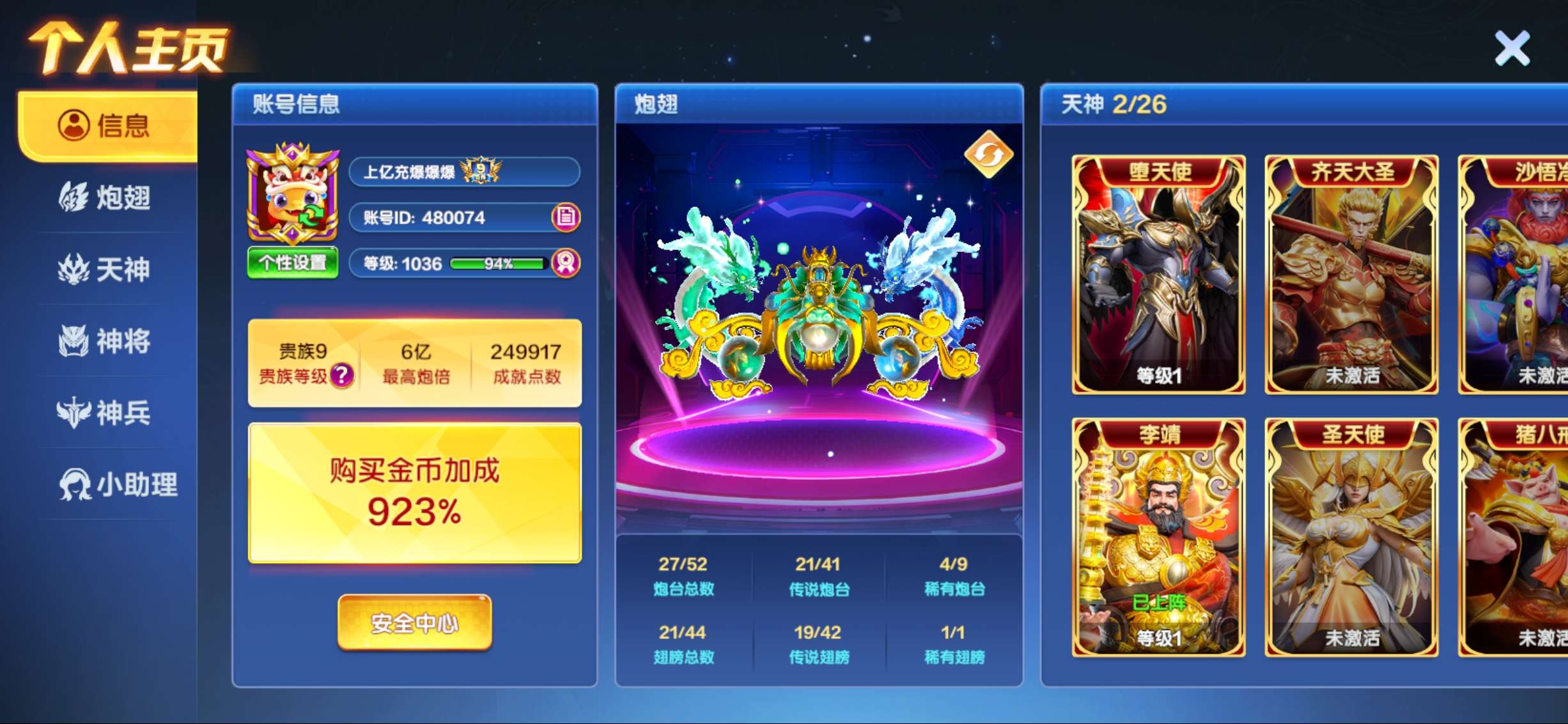 捕鱼大咖【苹果官方】捕鱼大咖官方文字号vip10马上11 带130点卷 500亿金币 最新天神武松 还有副炮