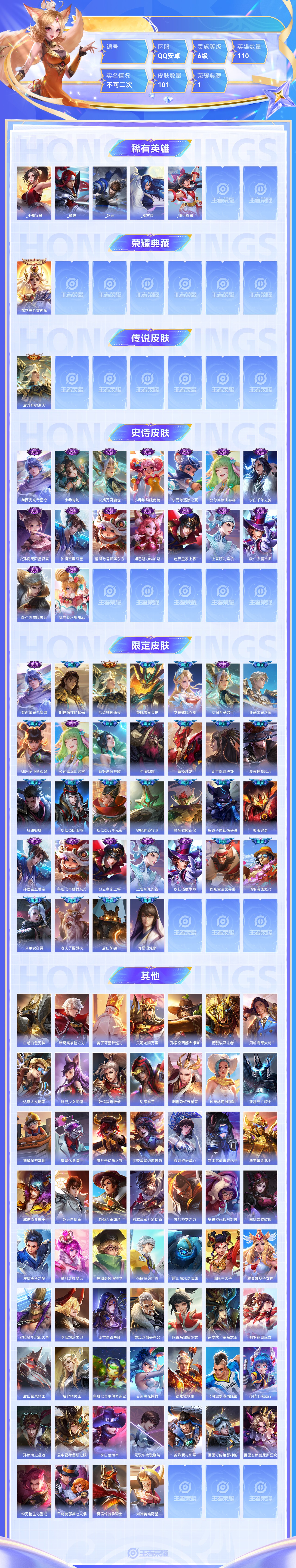 王者荣耀【安卓QQ】典藏1 传说1 史诗16 限定32 英雄110