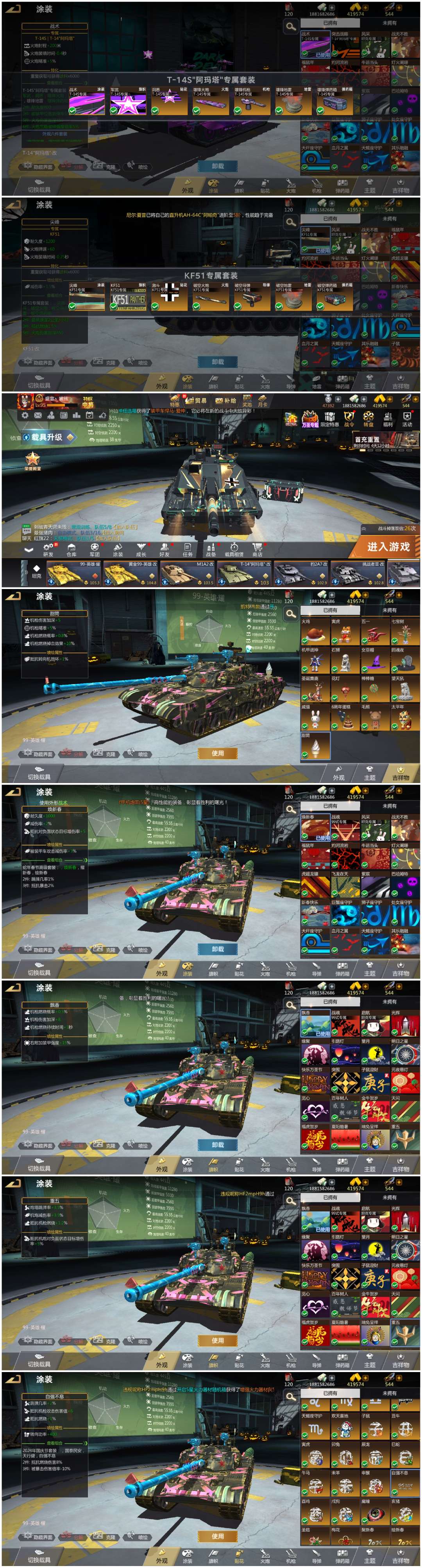 4盛会武器套装!2巨龙甲!天梯输出最高!最硬的坦克号!顶级指挥官只有4个没有,其他全部有!带40万金
