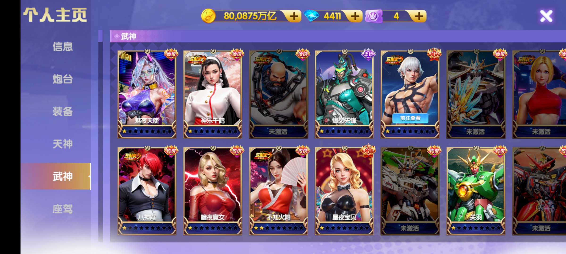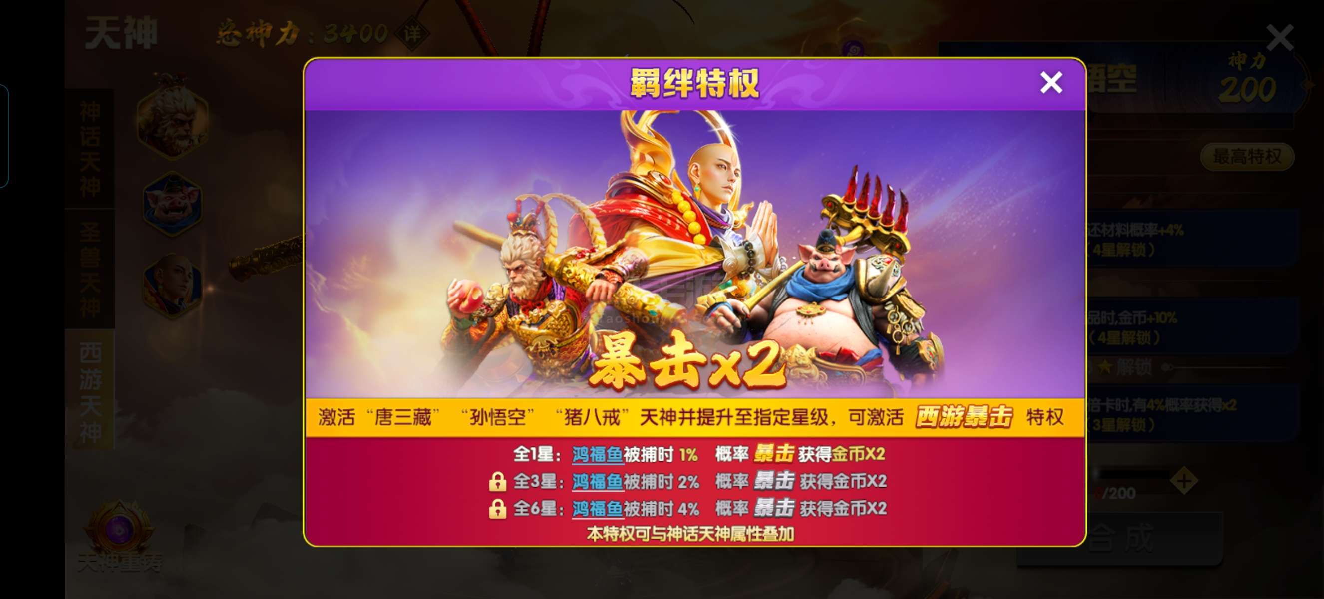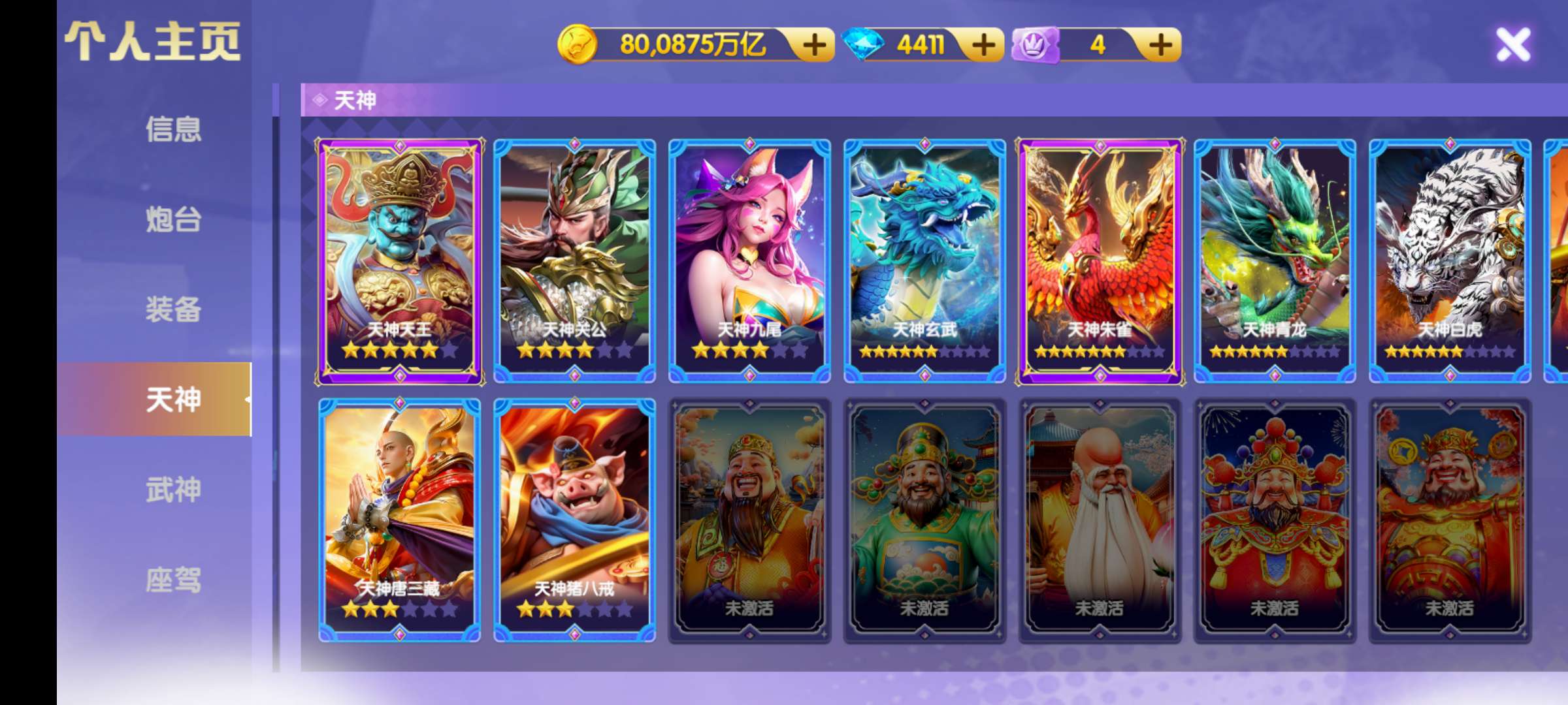 天神都是4星至6星,神装装备,武神1200连击