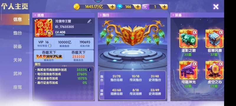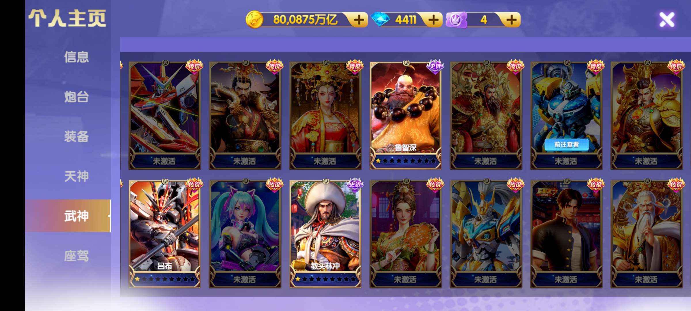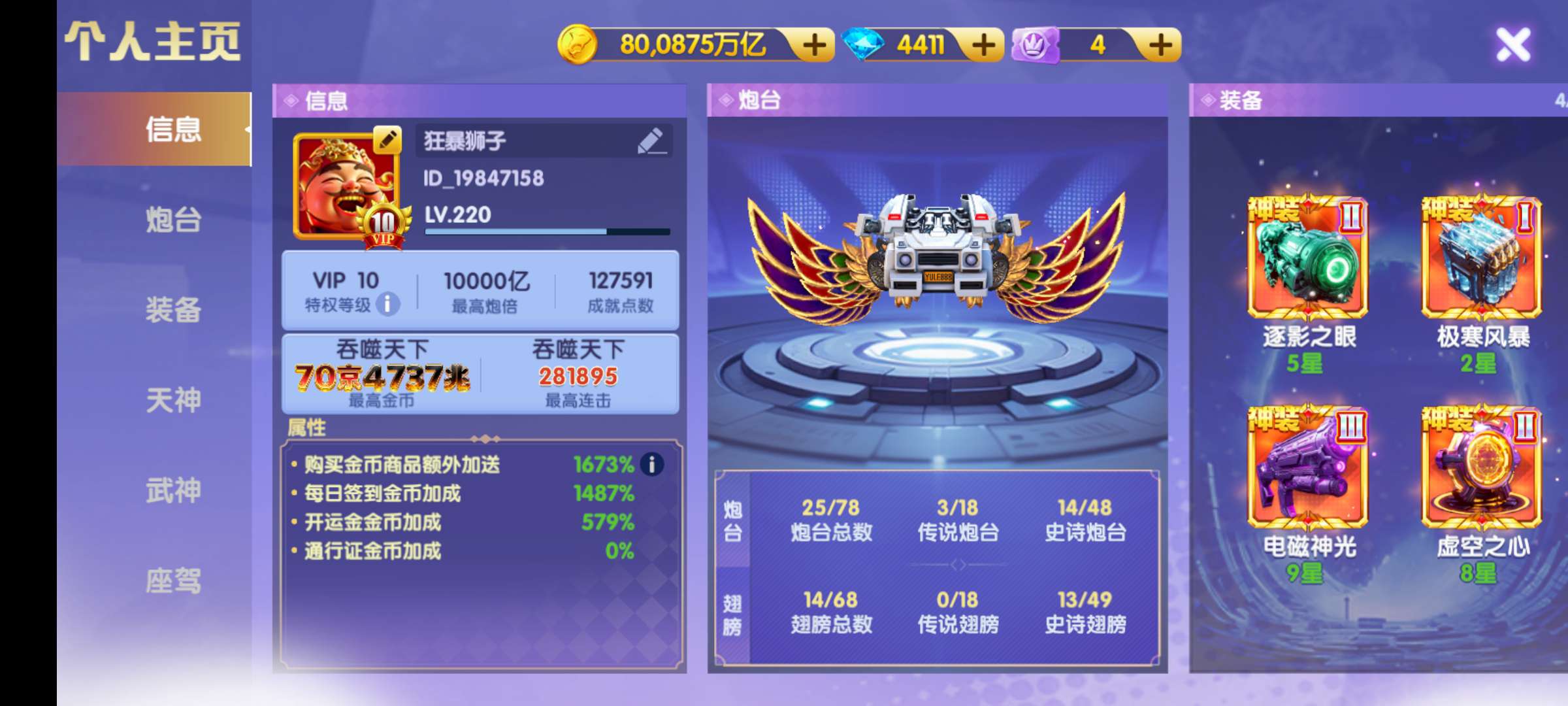 天神都是4星至6星,神装装备,武神1200连击