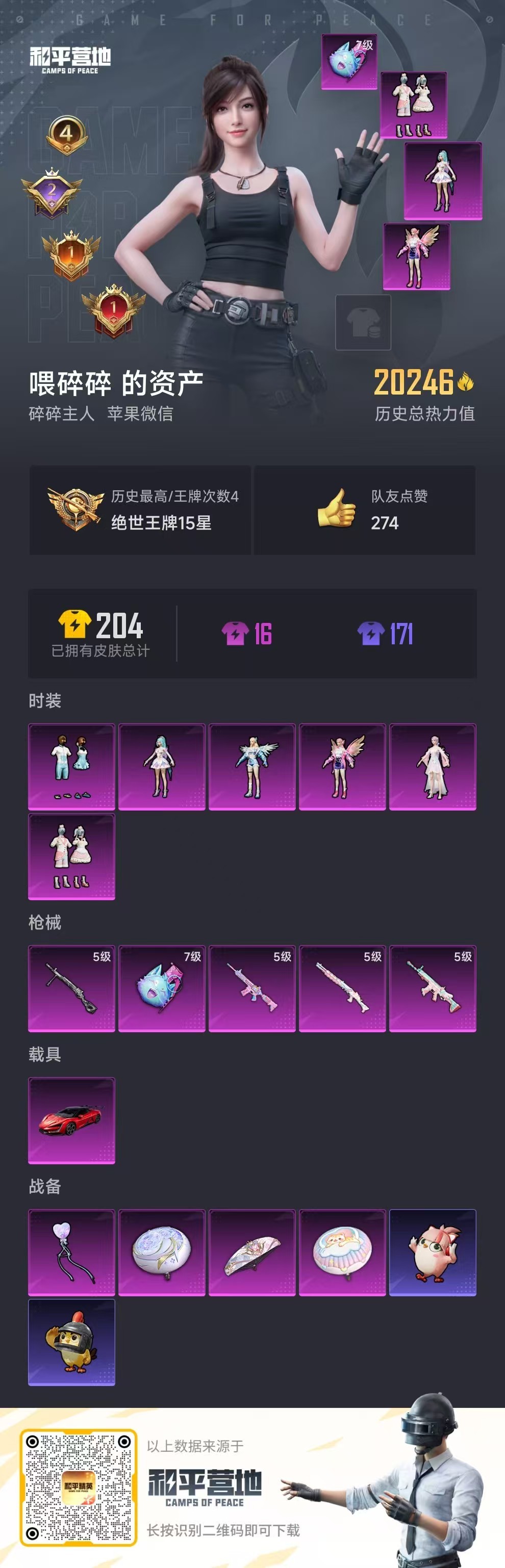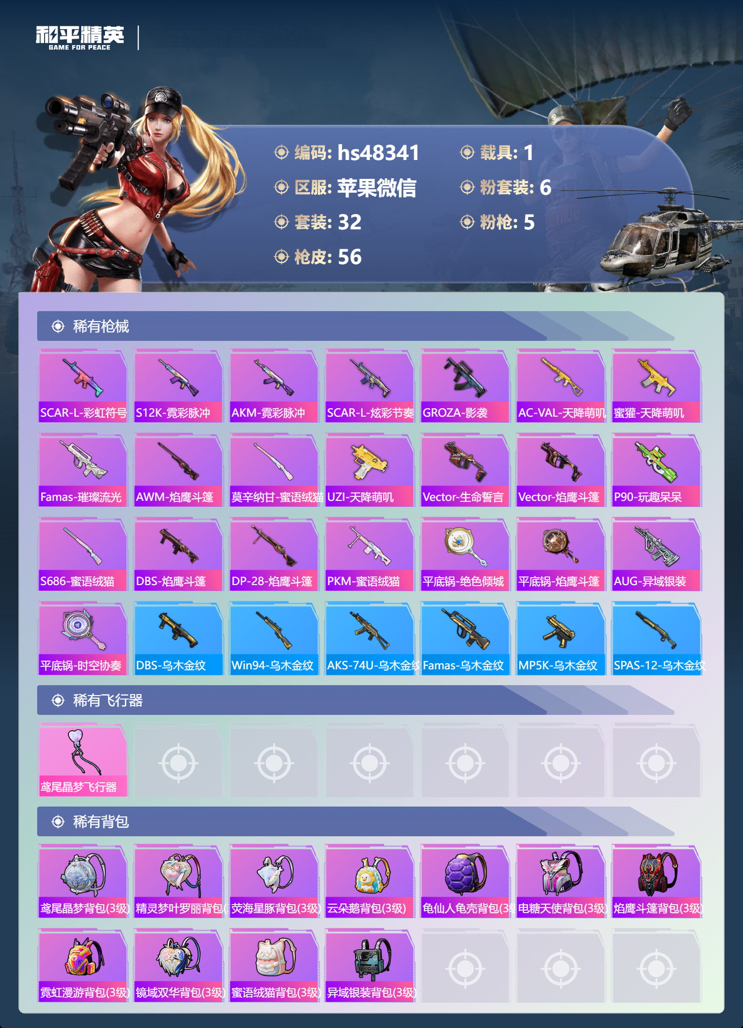 hs48341 苹果微-4王牌印记-6粉装-5特效枪-1载具-20466热力值-32套装-56枪皮