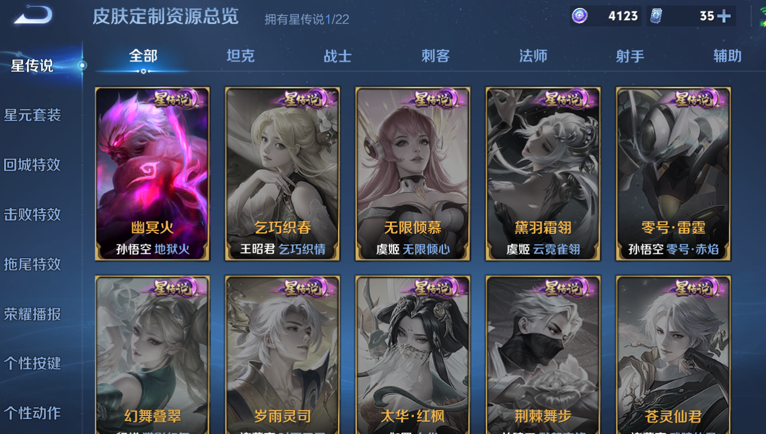 营地账号:367379568/【13410321】[13410321]实名: 可修改 英雄数: 122 皮肤数: 168 星传说: 幽冥火 传说皮: 猫影幻舞,云霓雀翎,地狱火 限定皮: 遇见飞天,李小龙,梁祝,时雨天司,龙胆,魔法小厨娘,神威,逐梦之光,天狼绘梦者,朱雀志,一生所爱 亮点: 【店长推荐精品号】33级收藏家诸葛亮时雨天司貂蝉猫影幻舞虞姬云霓雀翎孙悟空地狱火4123星币136皮肤碎