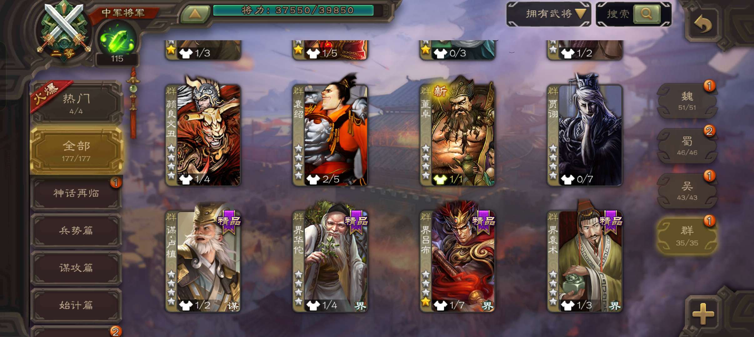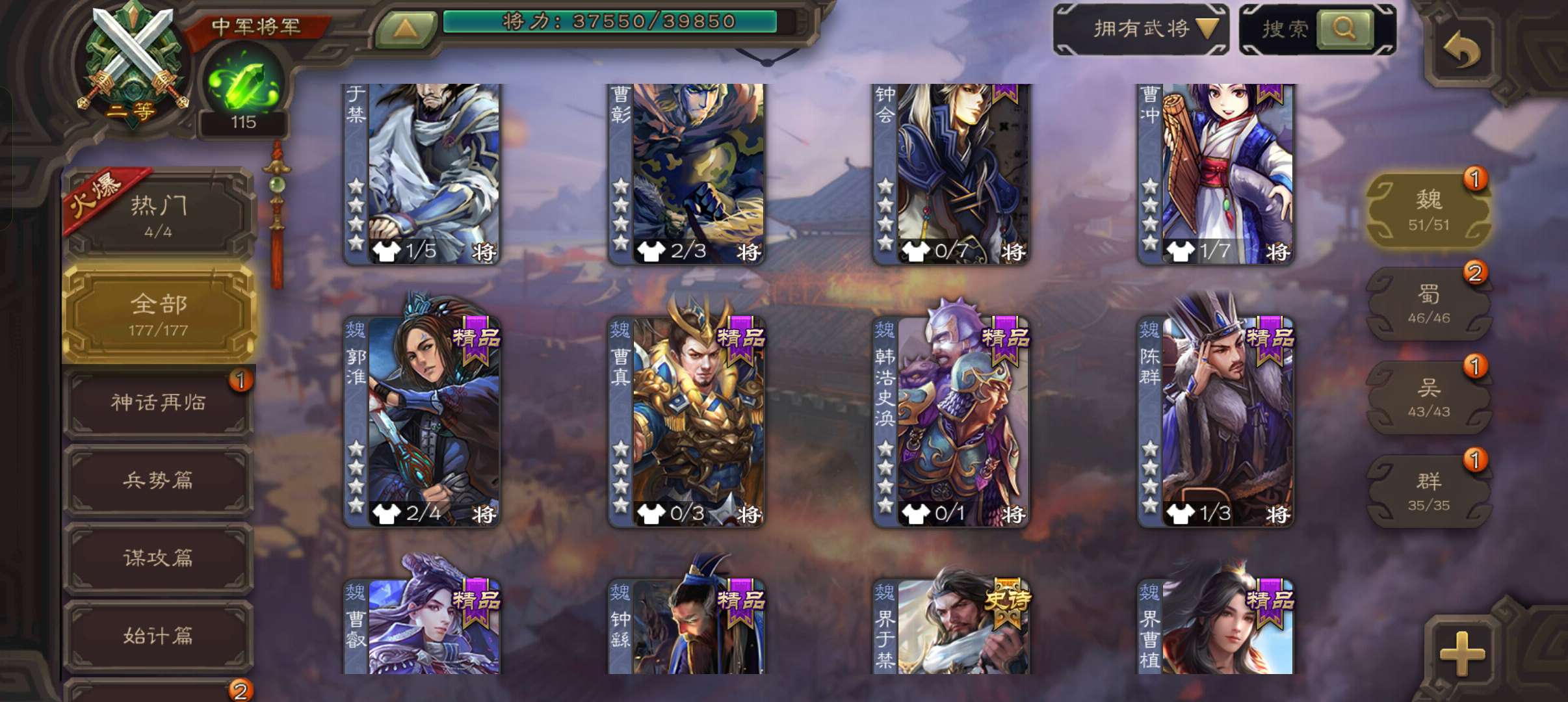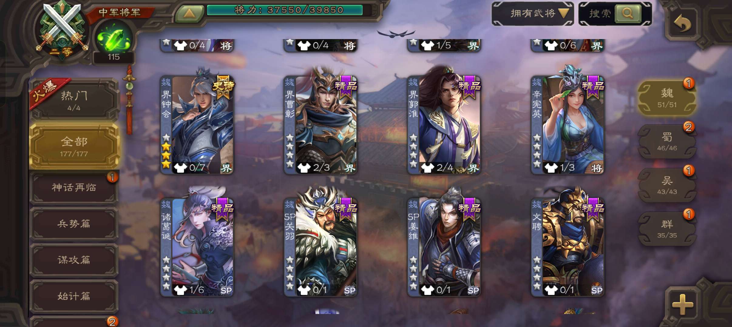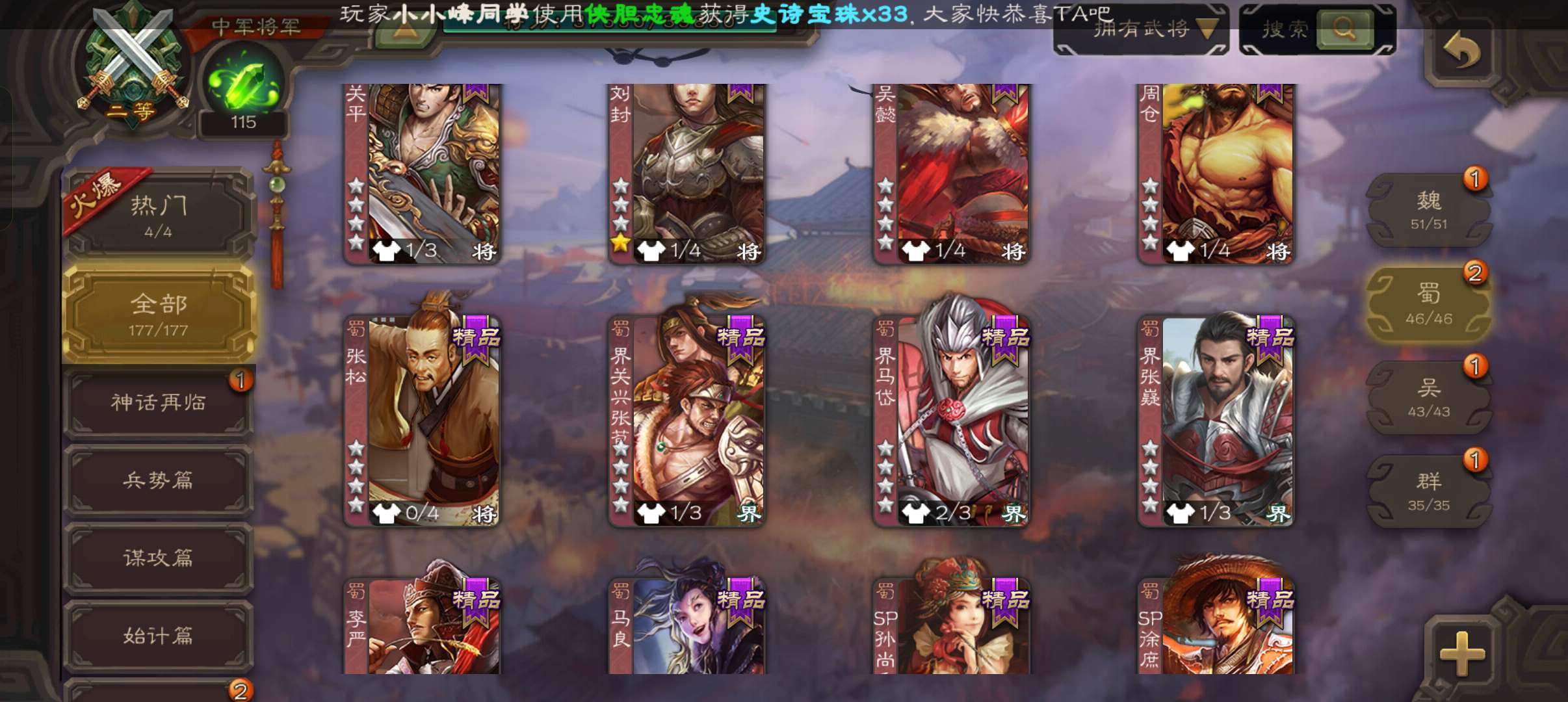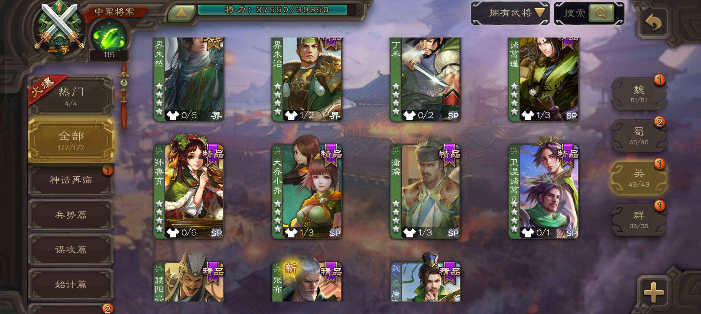 9史诗3神,7万7豆,回廊动白马真动神吕布界钟会沙摩柯谋赵云谯周界于禁界朱然程昱神吕蒙神周瑜177将