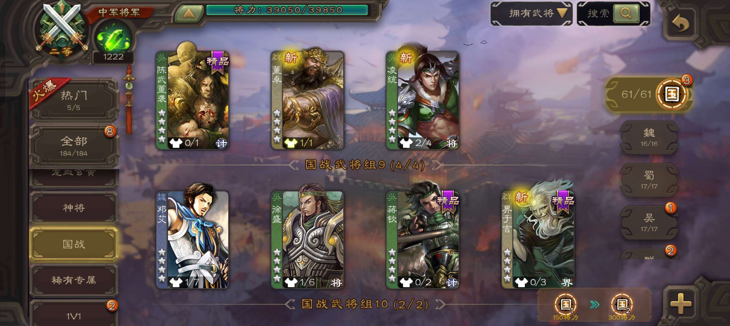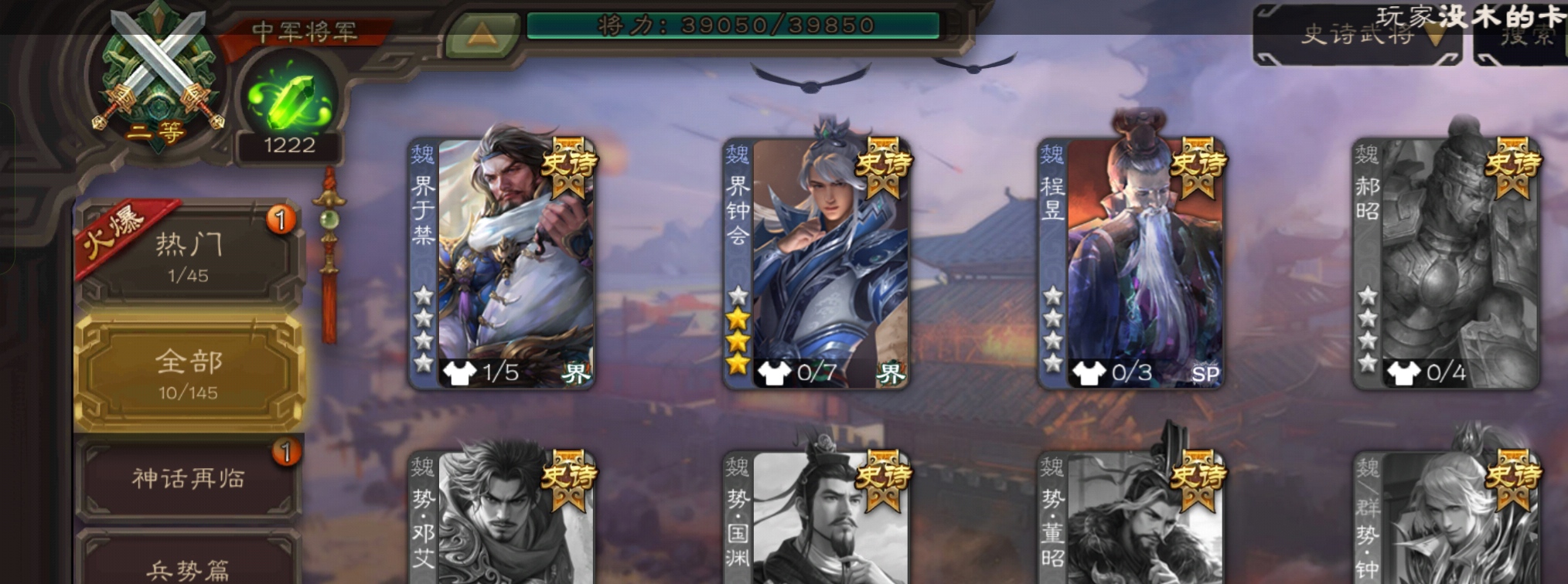 10史诗3神,8万7豆,回廊动白马真动神吕布界钟会沙摩柯谋赵云谯周界于禁界朱然马云騄程昱神吕蒙神周瑜
