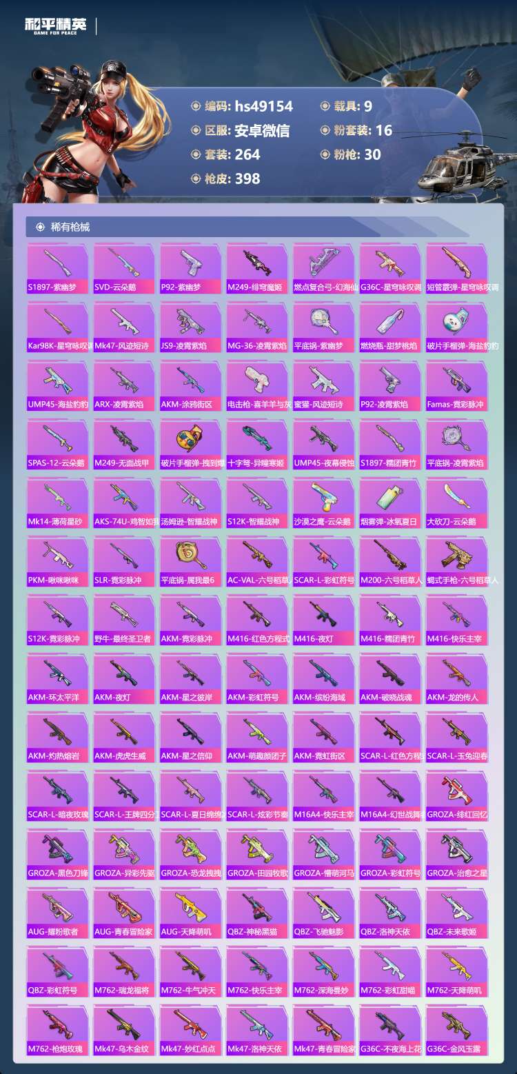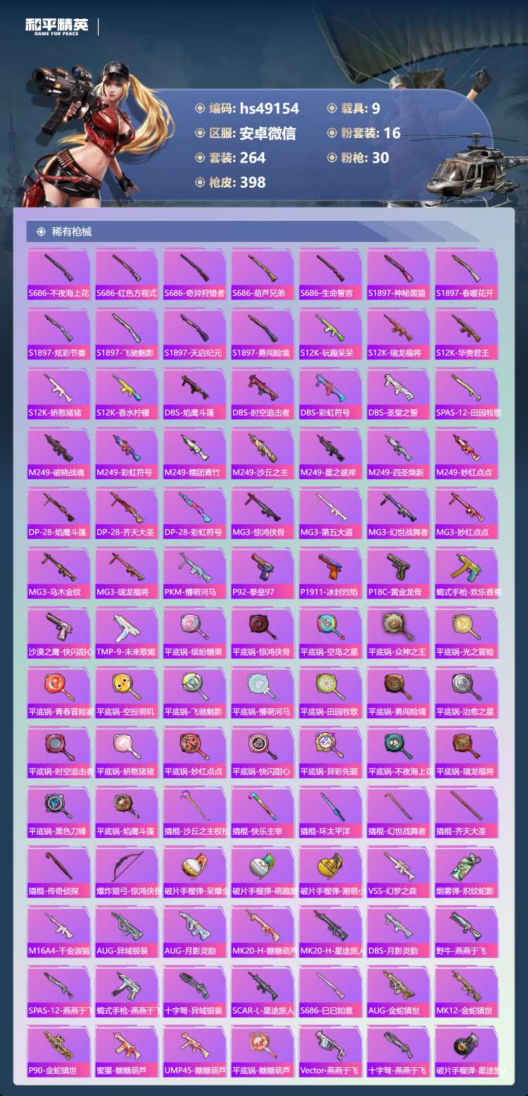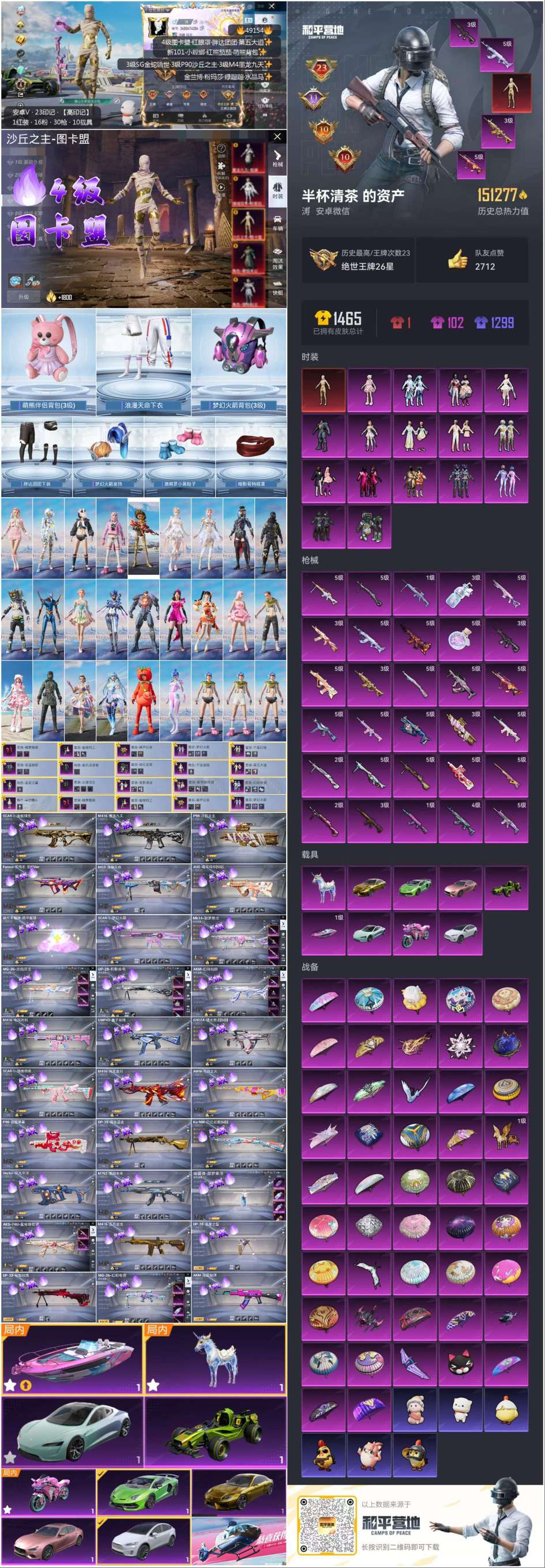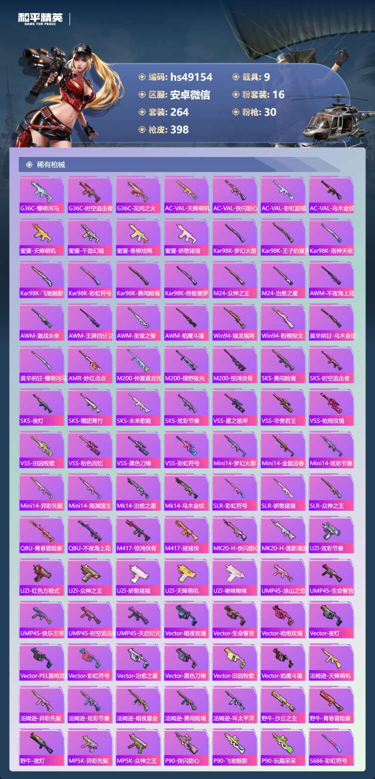 和平精英【安卓QQ】hs49154【1红装】沙丘之主-图卡盟/4级【16粉装】角色-复仇流浪者,套装-幻彩电音,套装-快