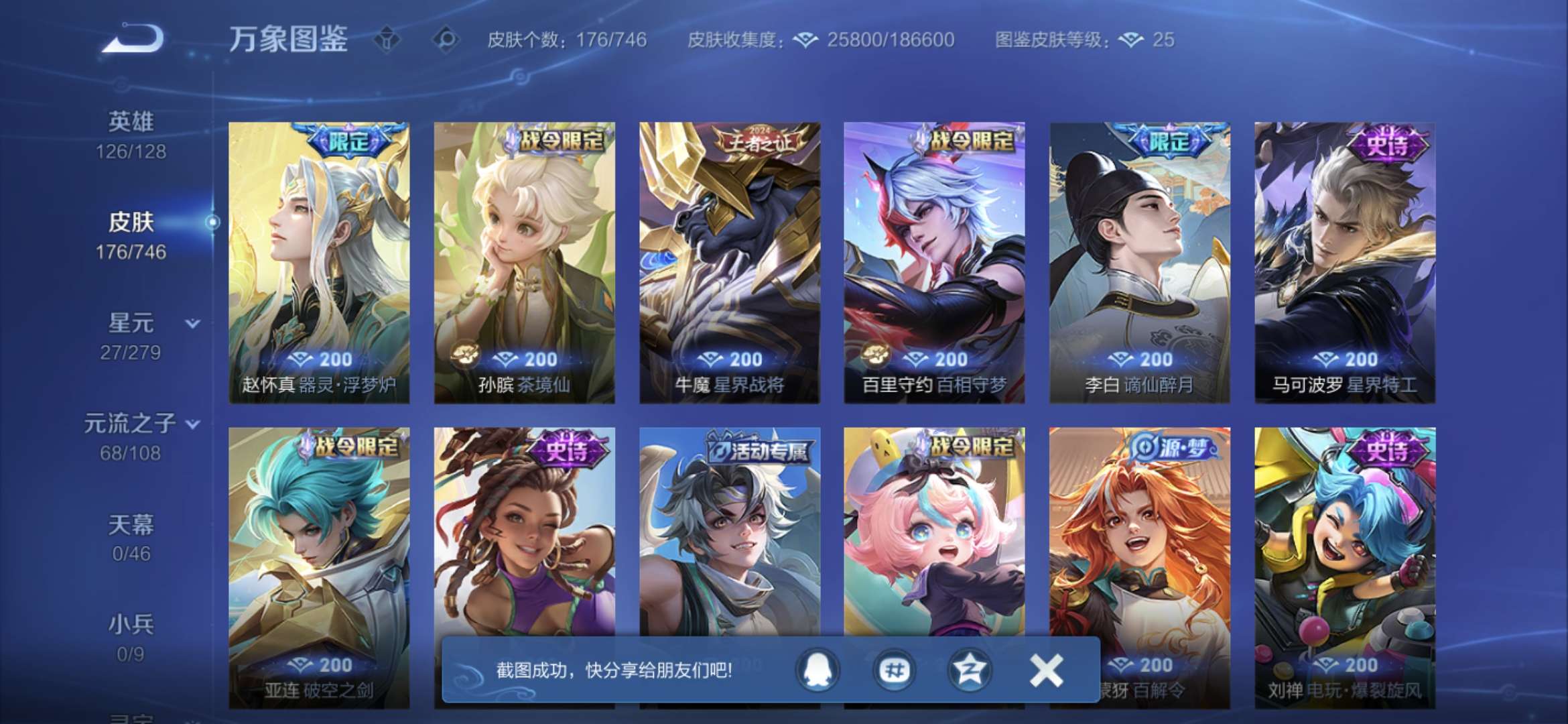 - 英雄126/128,皮肤174款(含荣耀典藏·韩信弑枪猎影)