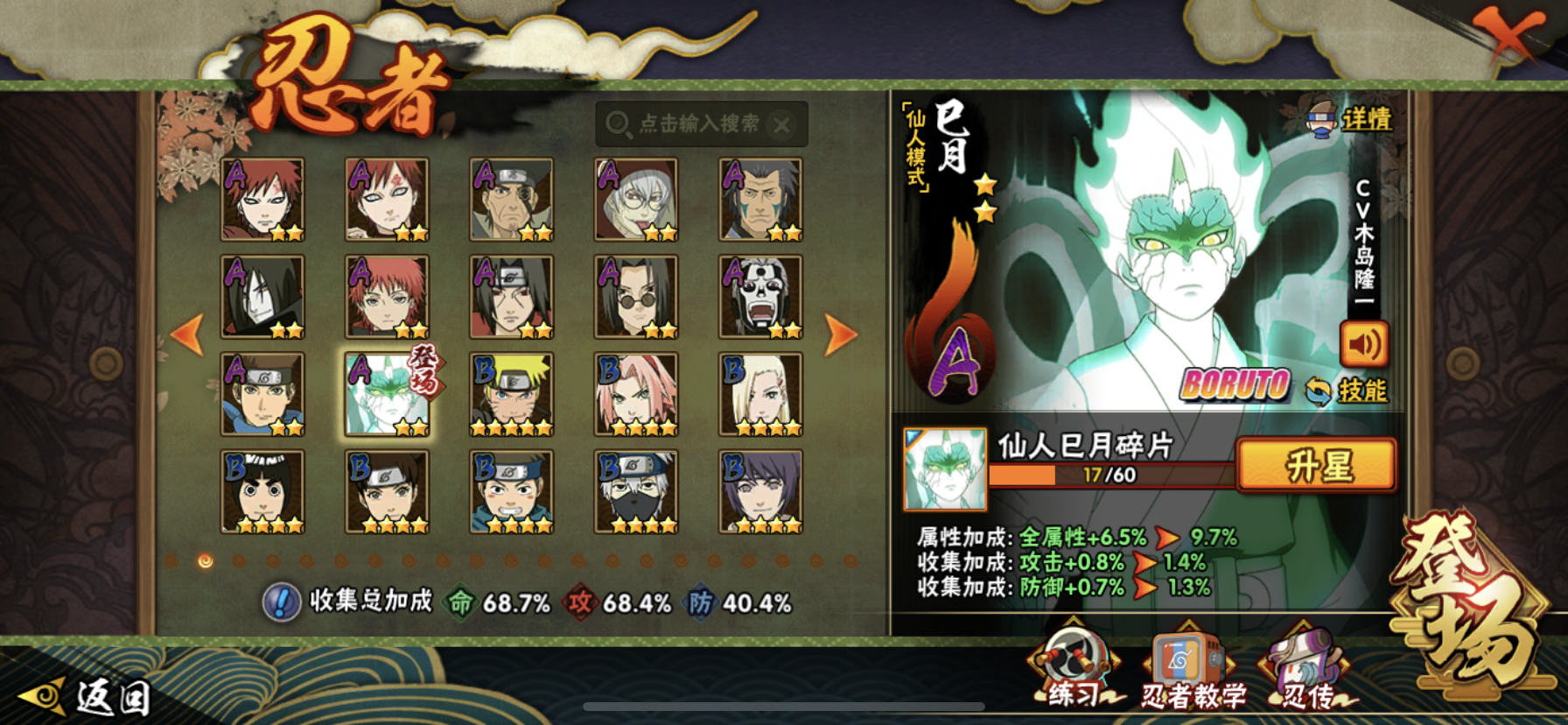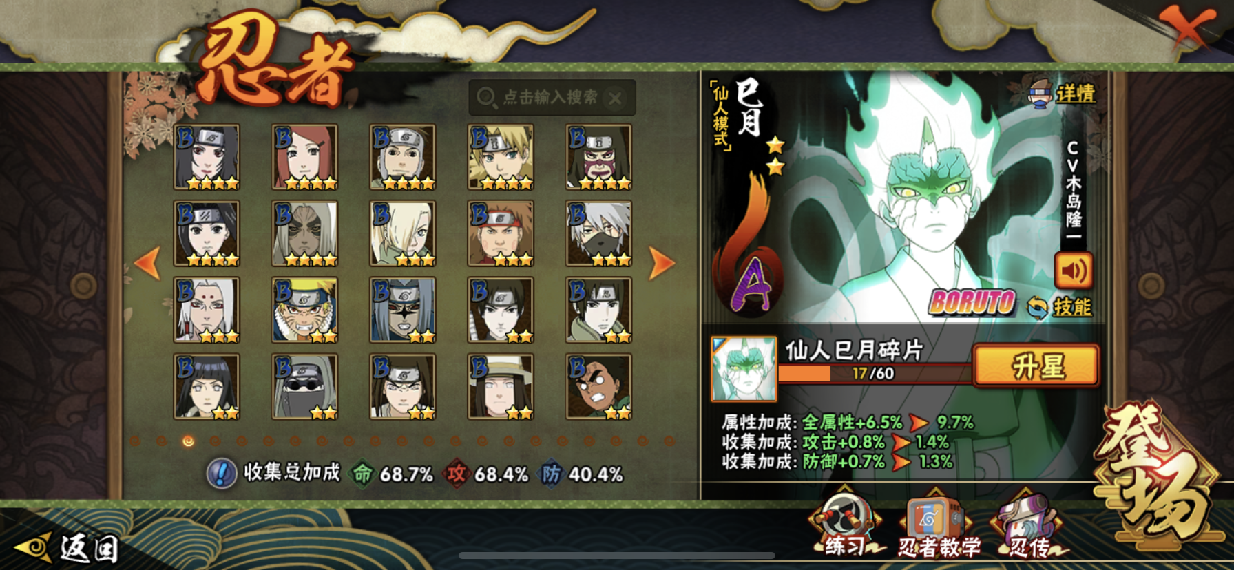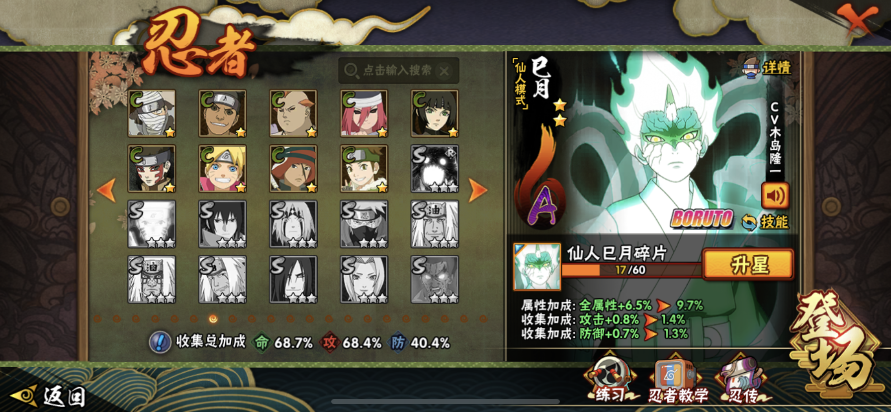 【核心忍者齐全】8个S忍+24个A忍,含仙人巳月等热门新忍,决斗场、副本都能打;