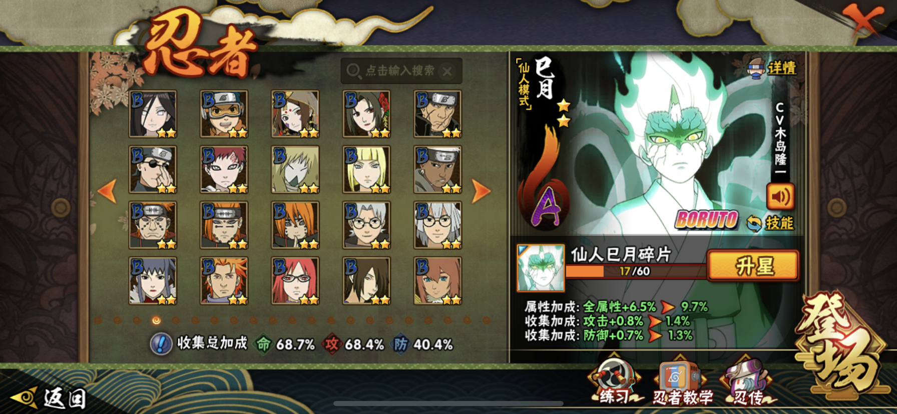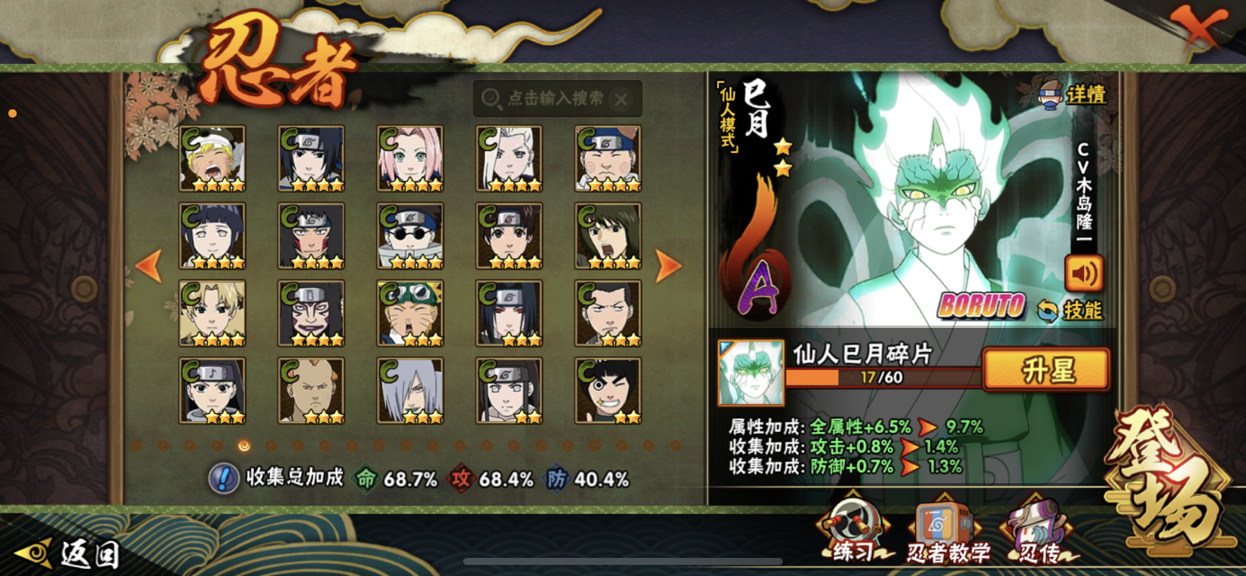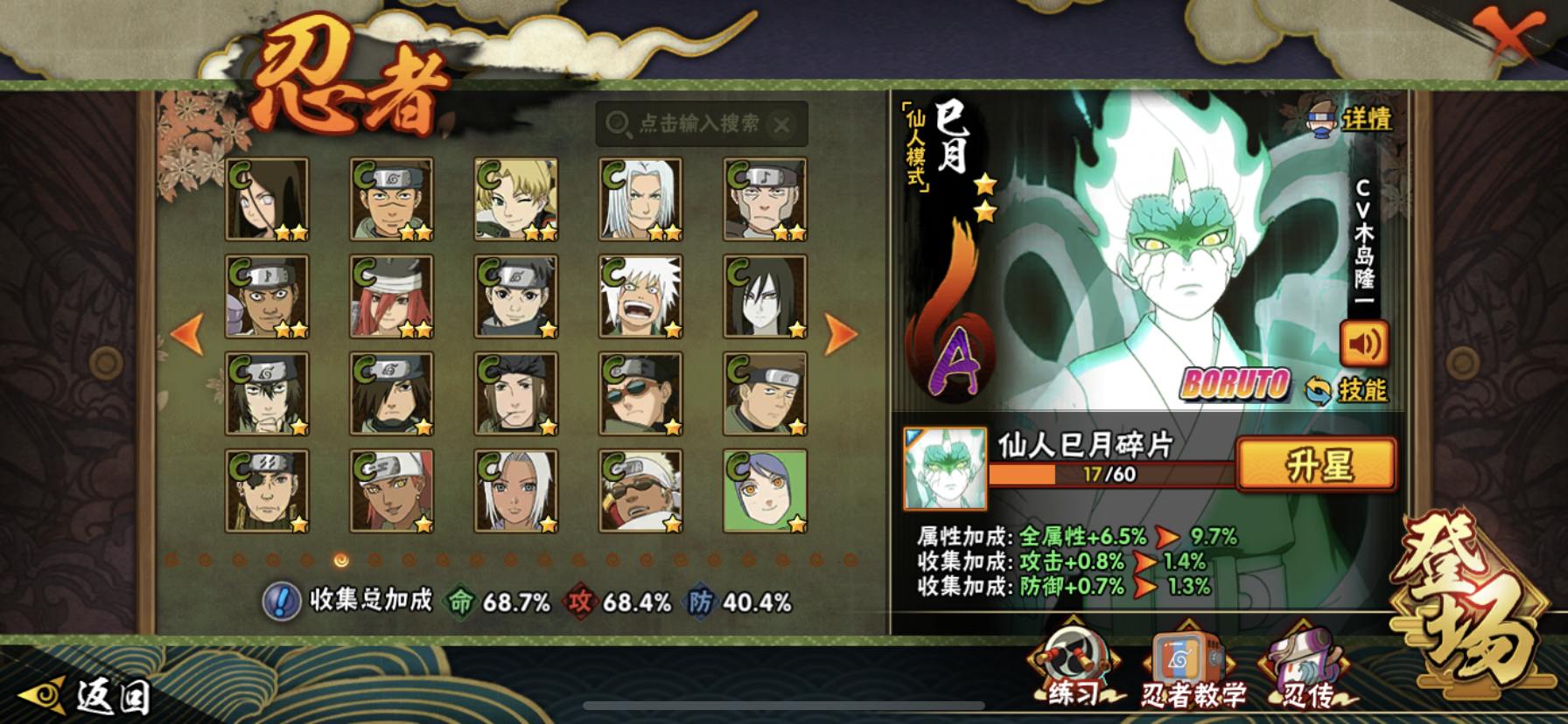 【核心忍者齐全】8个S忍+24个A忍,含仙人巳月等热门新忍,决斗场、副本都能打;
