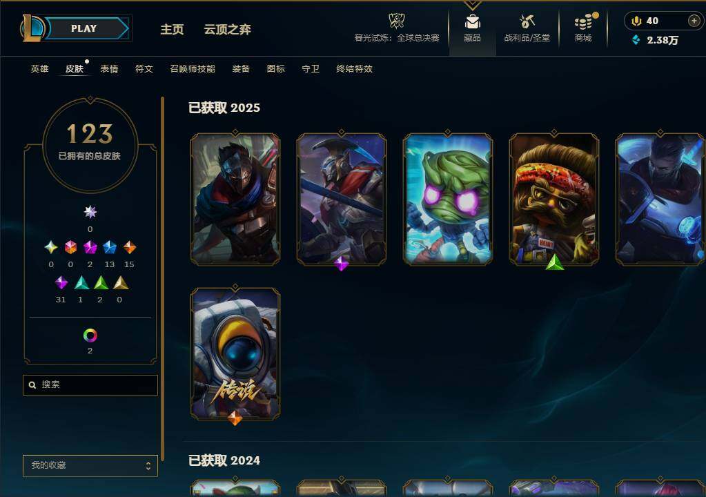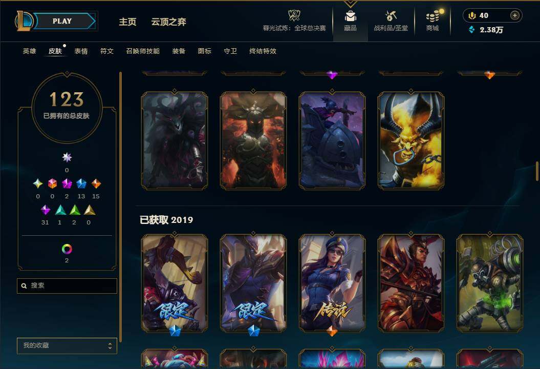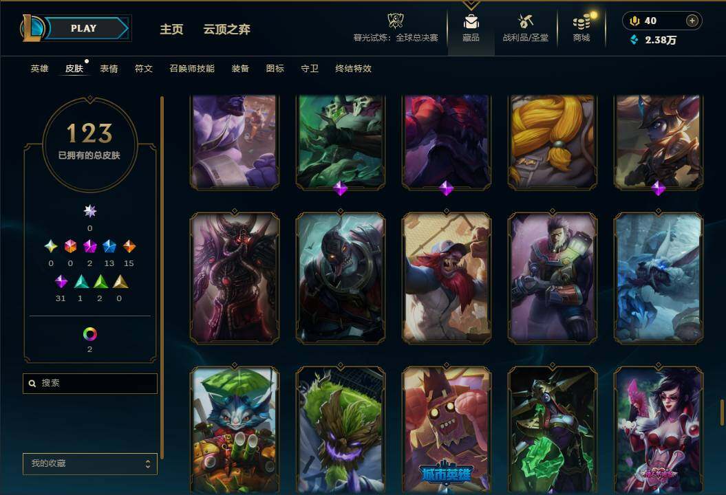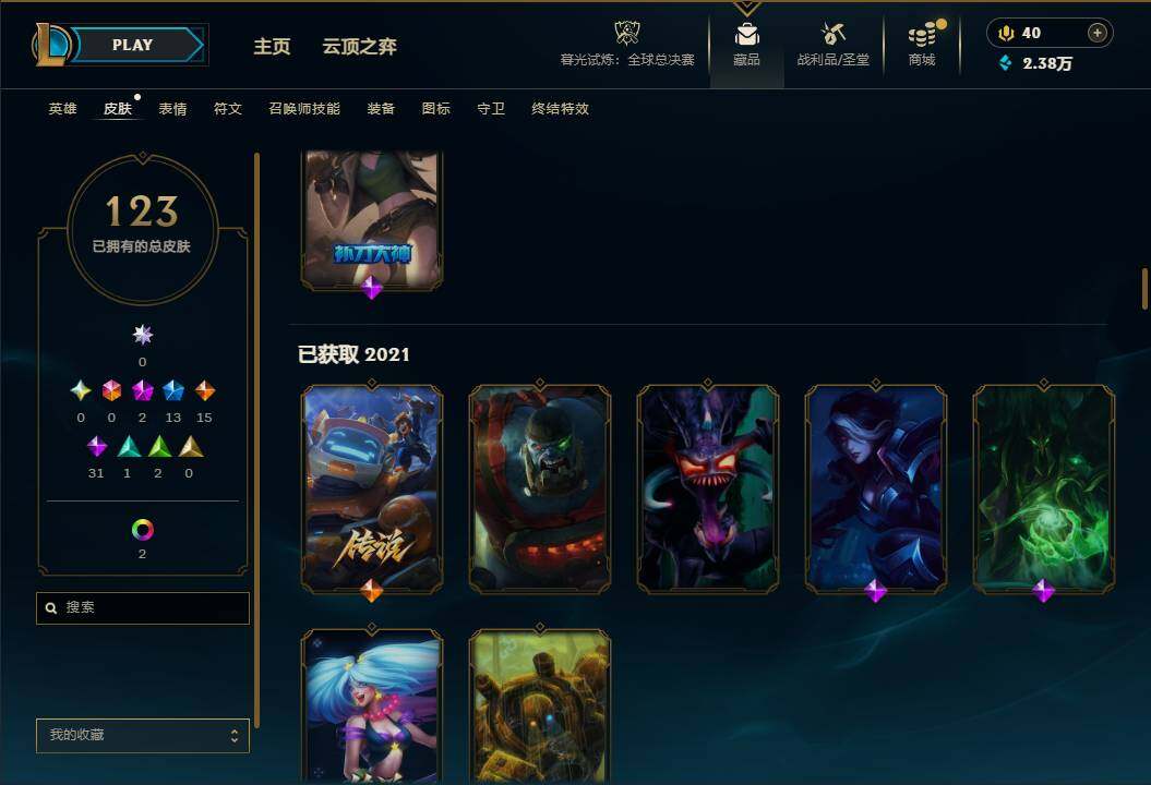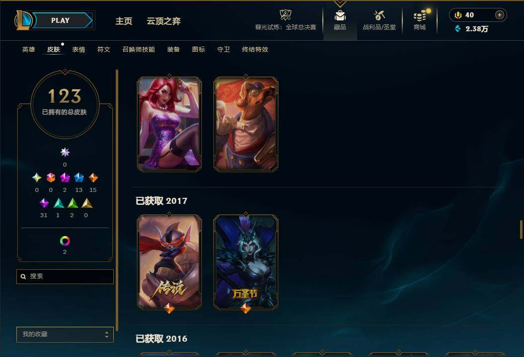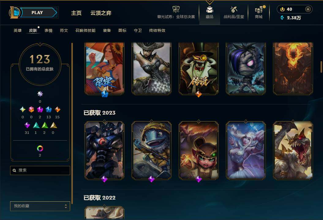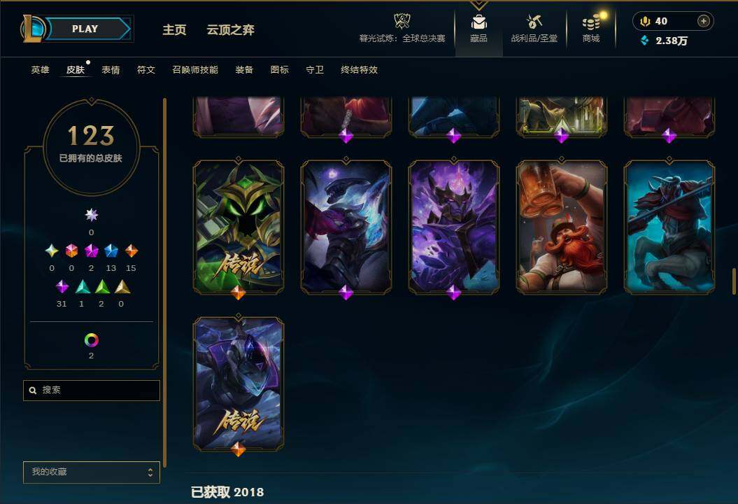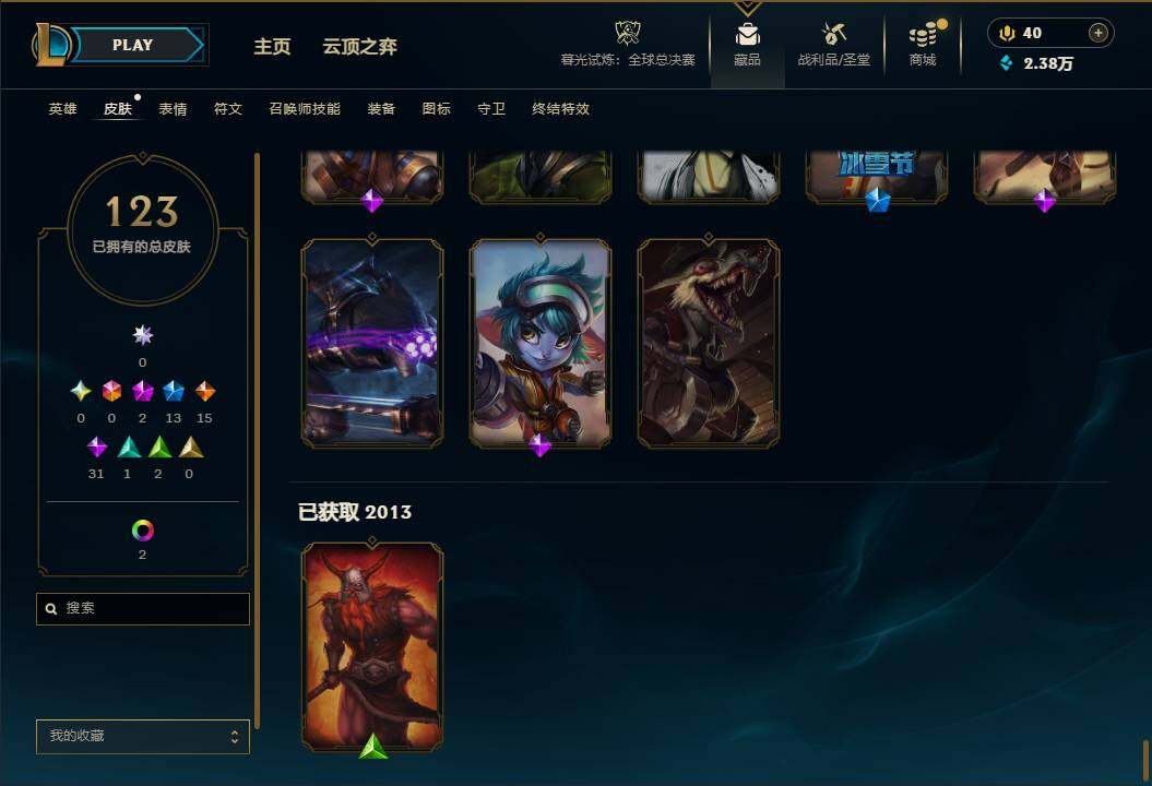 165英雄/123皮肤/2神话/13限定/2炫彩