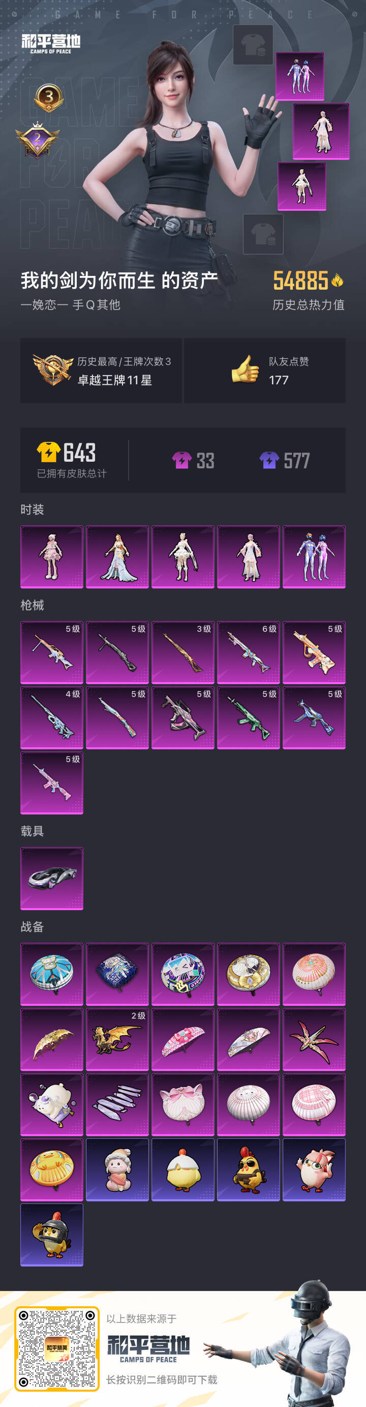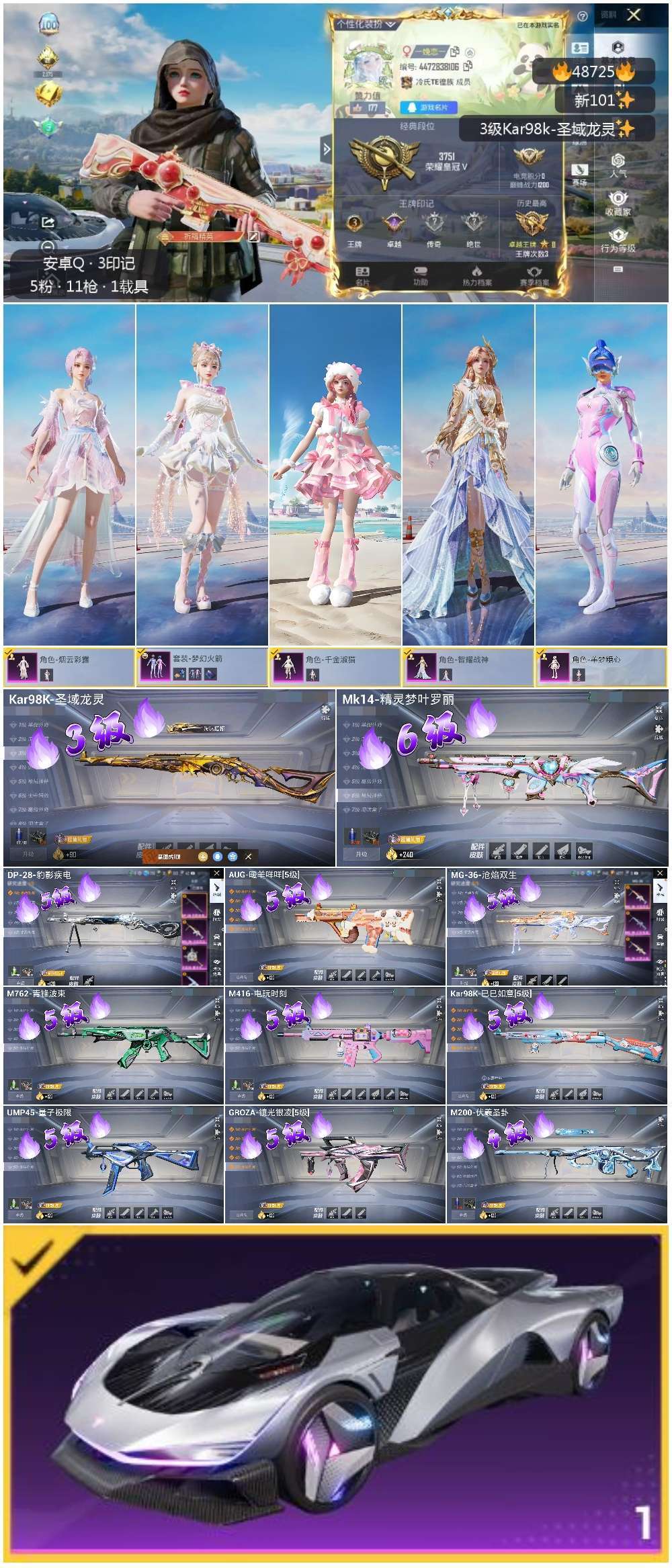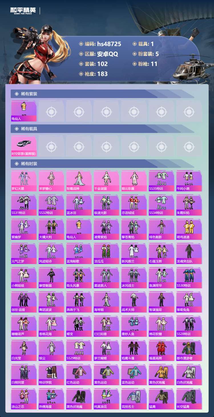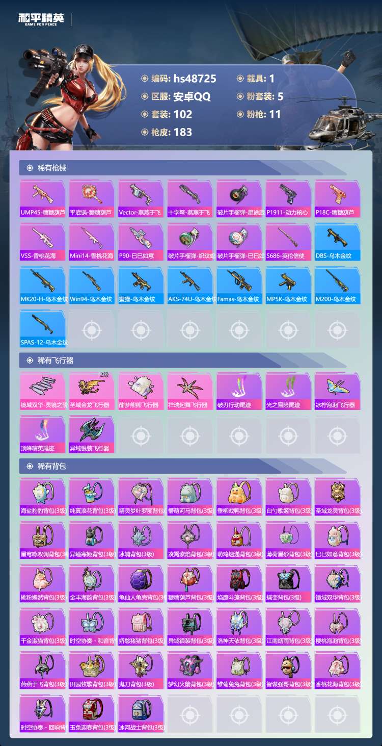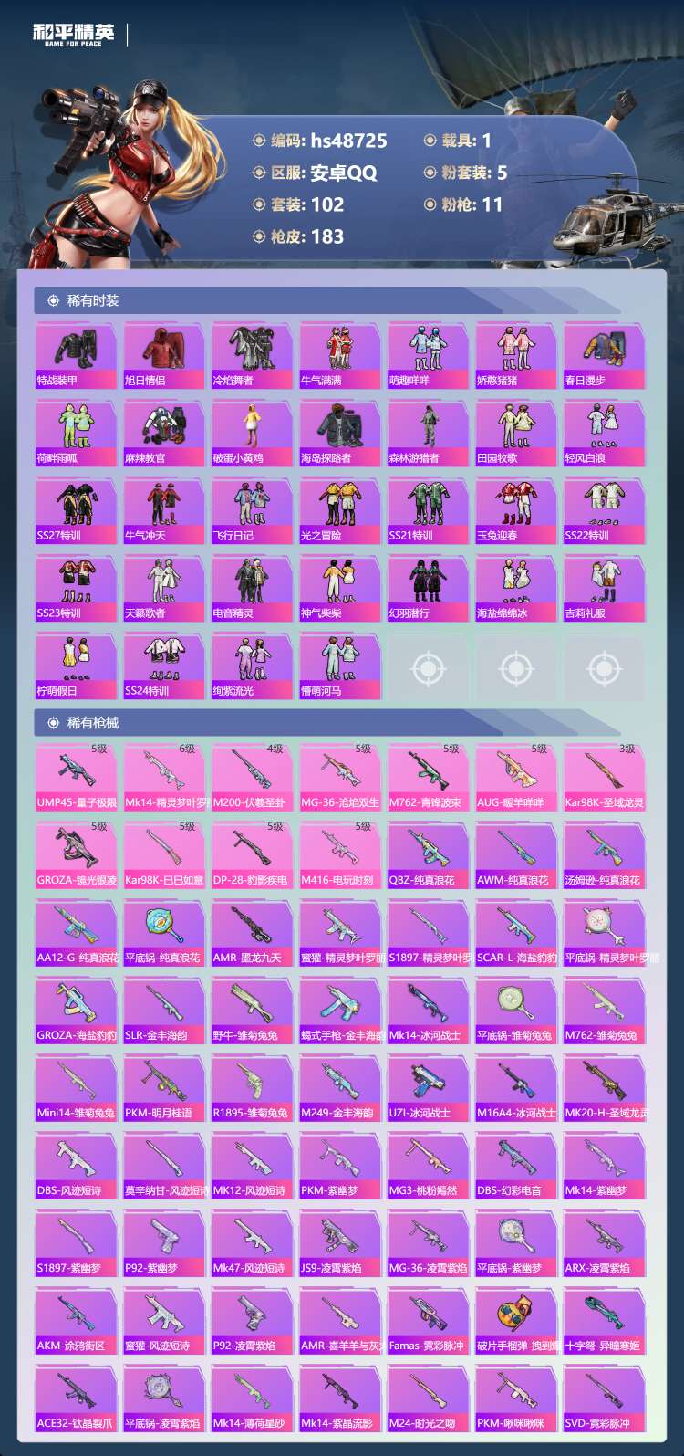 hs48725 安卓手Q-3王牌印记-5粉装-11特效枪-1载具-54885热力值-102套装-18