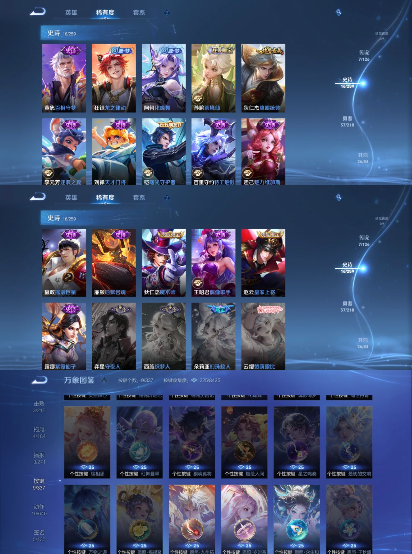 【史诗皮肤】 茶境仙 谧流熔炉 龙之律动 百相守梦 化蝶舞 魅力维加斯 魔术师 鹰眼统帅 曙光守护者 逐浪之夏 地狱岩魂 天才门将 紫霞仙子 偶像歌手 摇滚巨星 皇家上将 特工魅影