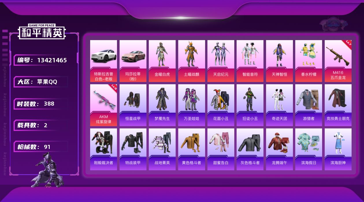 6粉装 2特效枪 2载具 4印记 可二次 可修改实名 【热门装扮】:金曜白虎,土曜战麒,天启纪元,