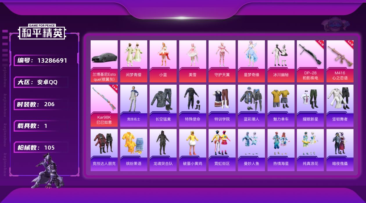 6粉装 3特效枪 1载具 5印记 可二次 可修改实名 【热门装扮】:冰川幽秘,闲梦青缨,美雪,小蓝