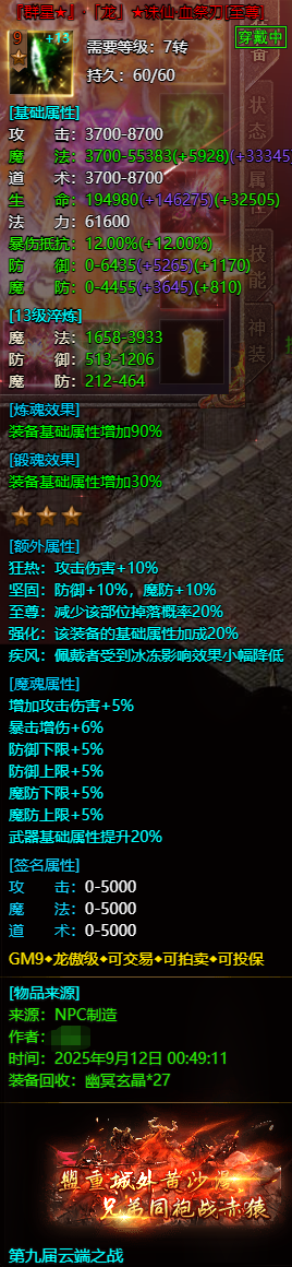 全套至尊,满星圣兽白虎,赠送终身辅助+4个小号,沙巴克会长