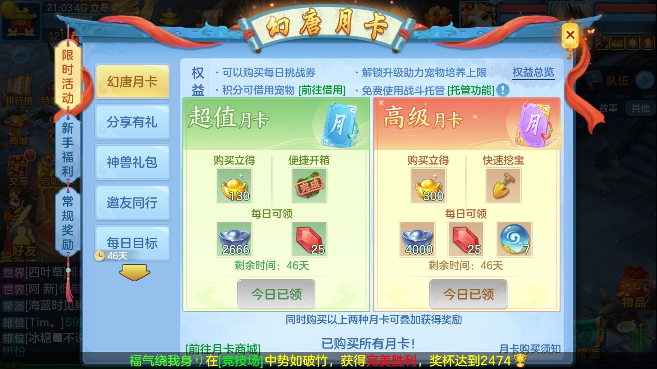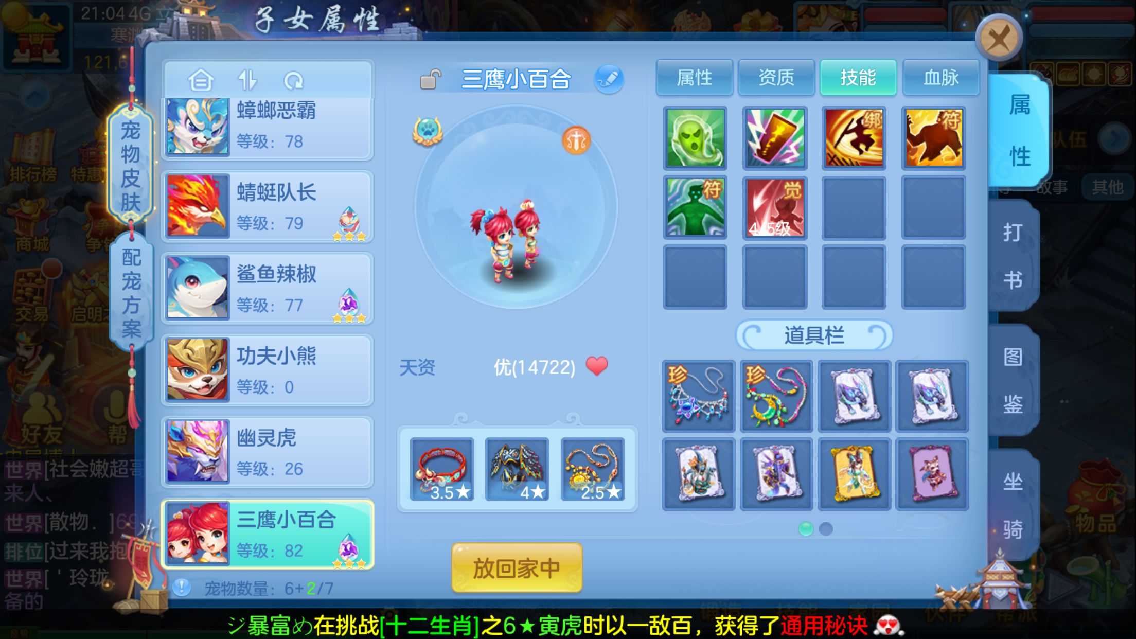三无号,安全换绑,没有双重,天行健,神兽马,5技能大波浣熊,特技齐全,月卡时装