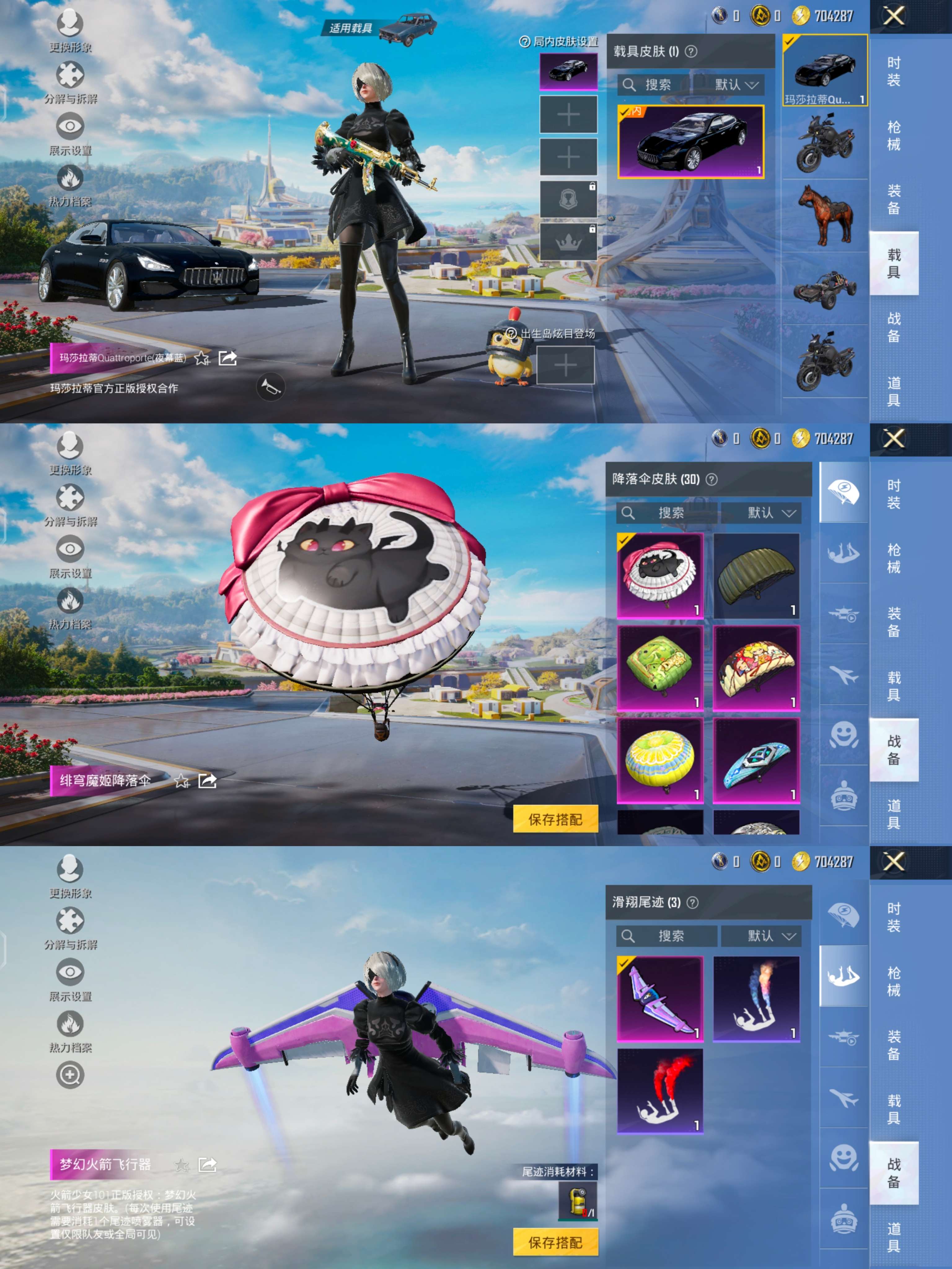 连体号!身法号1载具5粉装5特效枪 梦幻火箭 宝贝奶油派 2B战斗服款