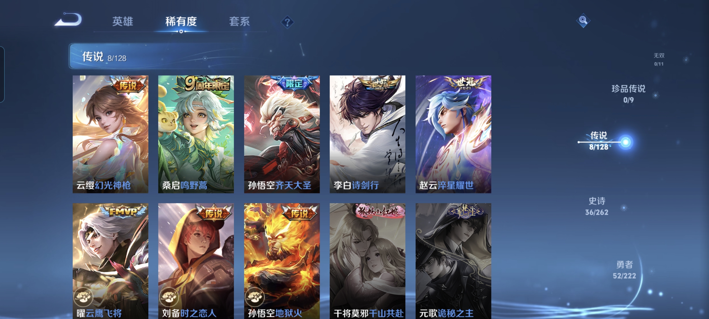 【传说皮肤】 鸣野蒿 幻光神枪 齐天大圣 诗剑行 时之恋人 地狱火 云鹰飞将 淬星耀世