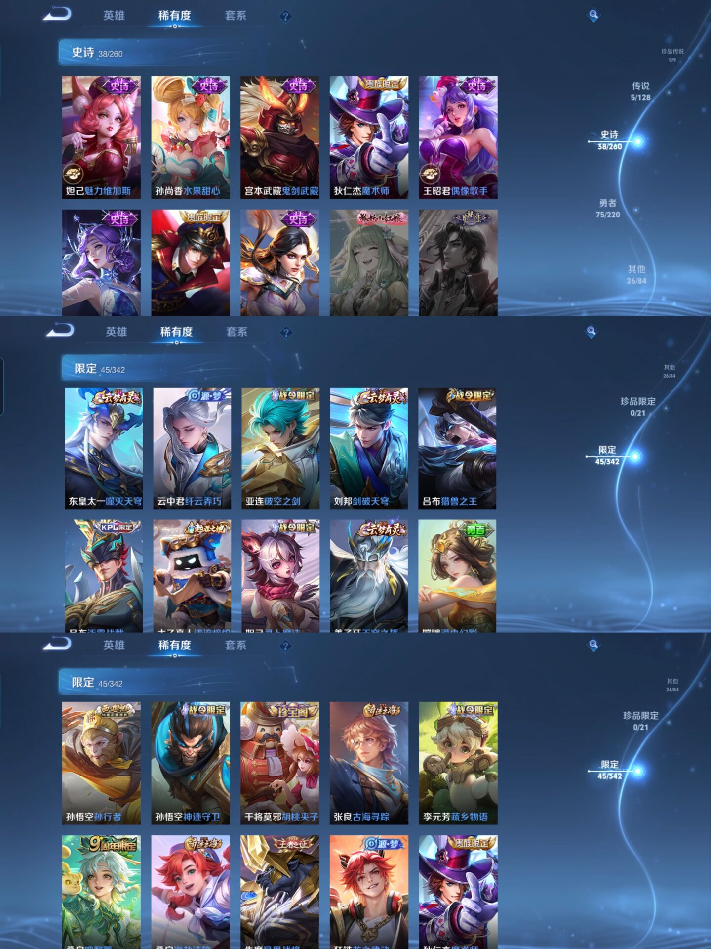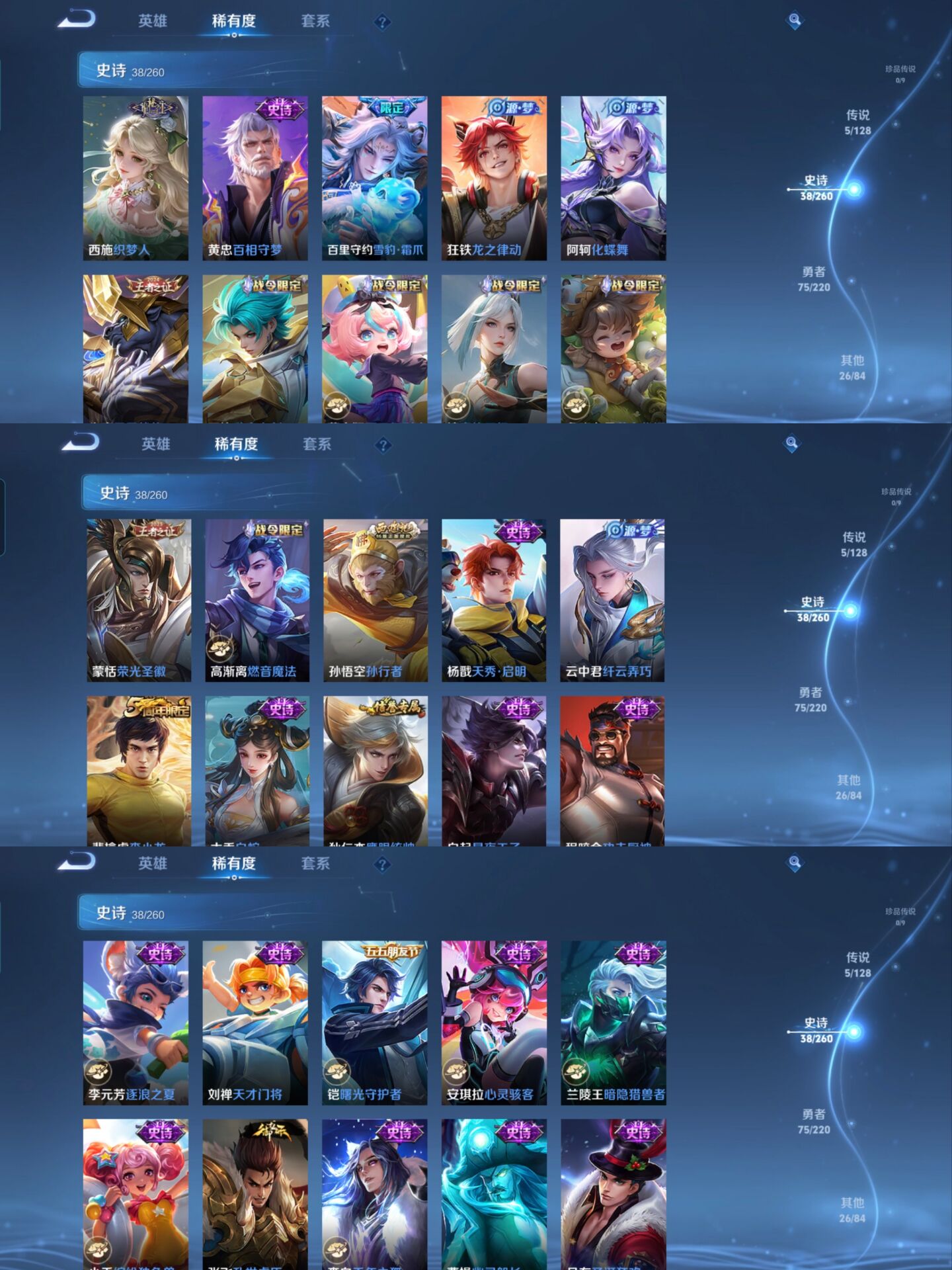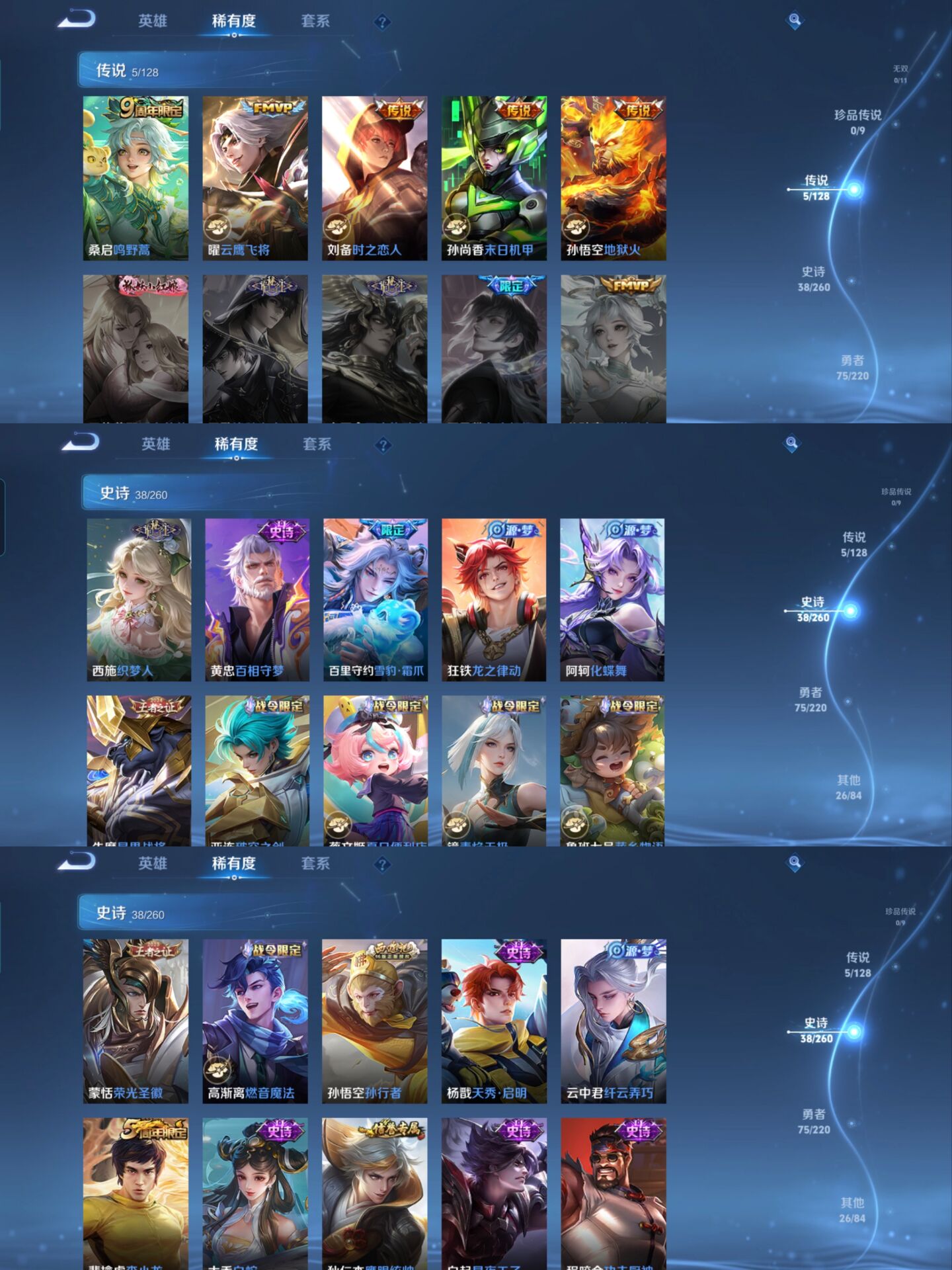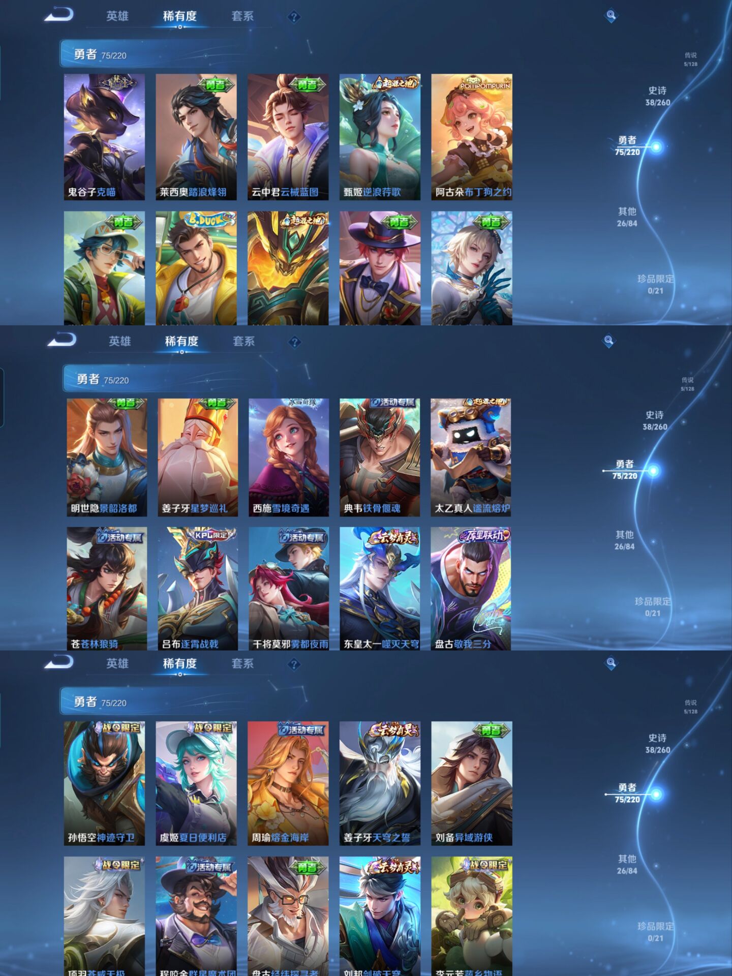 【史诗皮肤】 蔬乡物语 蔬乡物语 破空之剑 星界战将 布丁狗之约 谧流熔炉 孙行者 龙之律动 青焰无极 踏浪烽翎 夏日便利店 苍威无极 荣光圣徽 百相守梦 漠中幻影 雪豹·霜爪 织梦人 化蝶舞 幽灵船长 功夫厨神 魅力维加斯 白蛇 魔术师 鹰眼统帅 鬼剑武藏 曙光守护者 暗隐猎兽者 千年之狐 逐浪之夏 天才门将 紫霞仙子 圣诞狂欢 李小龙 水果甜心 偶像歌手 缤