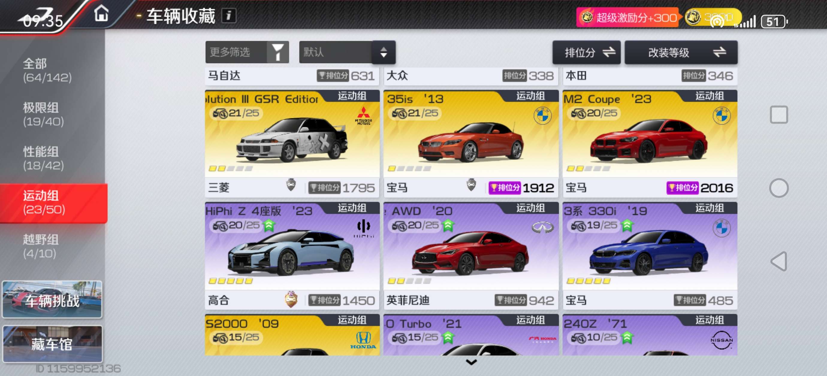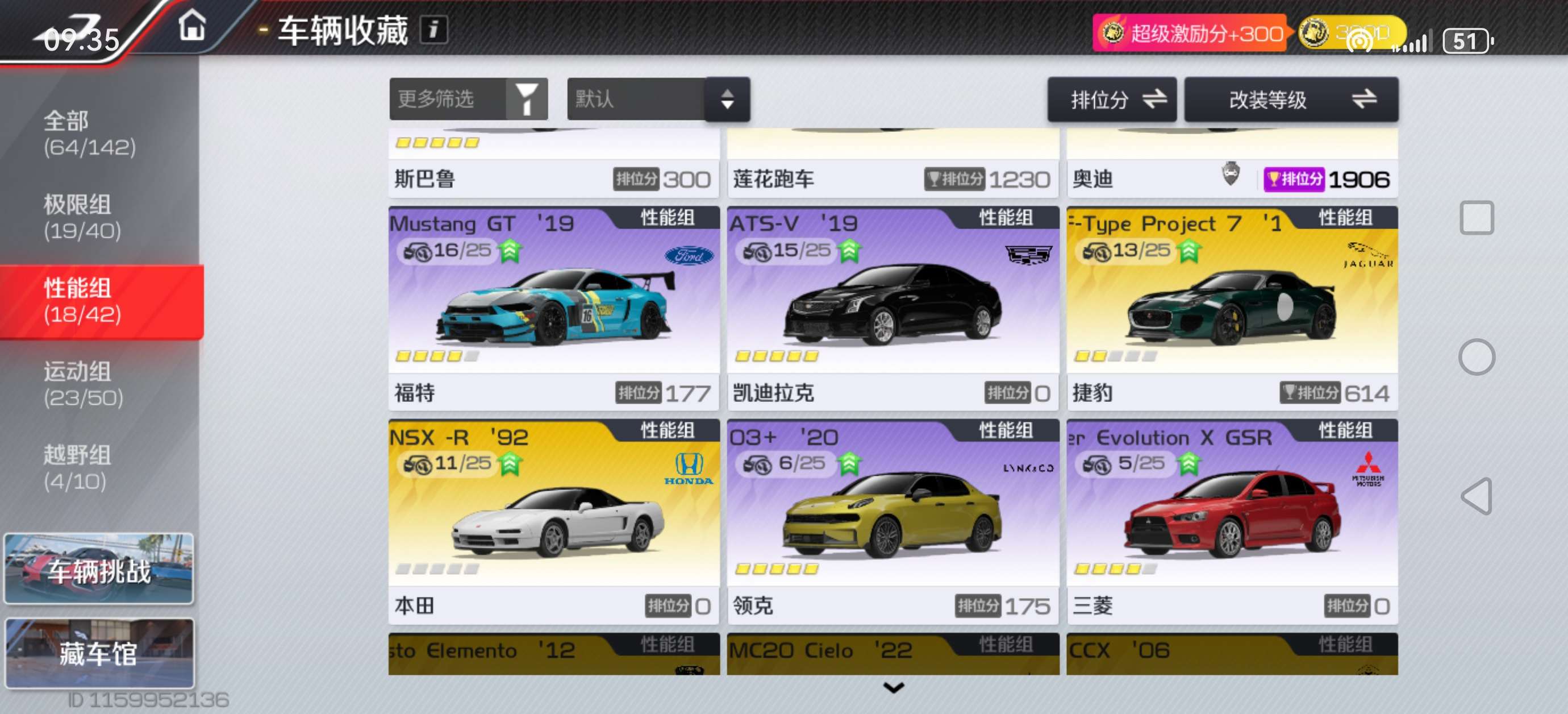 很多强势车型尤其是性能组的车,账号相当划算打排位完全够用