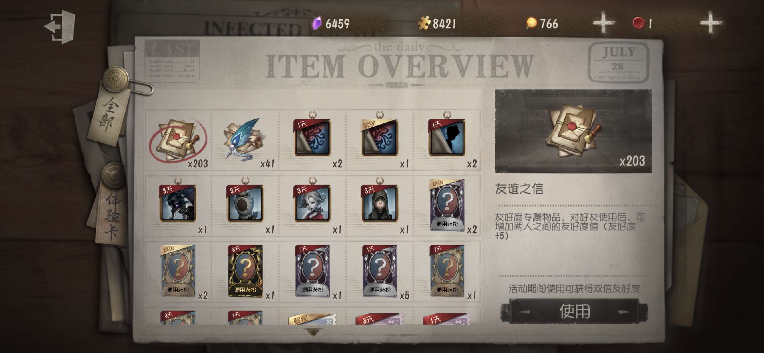 随身物品数量: