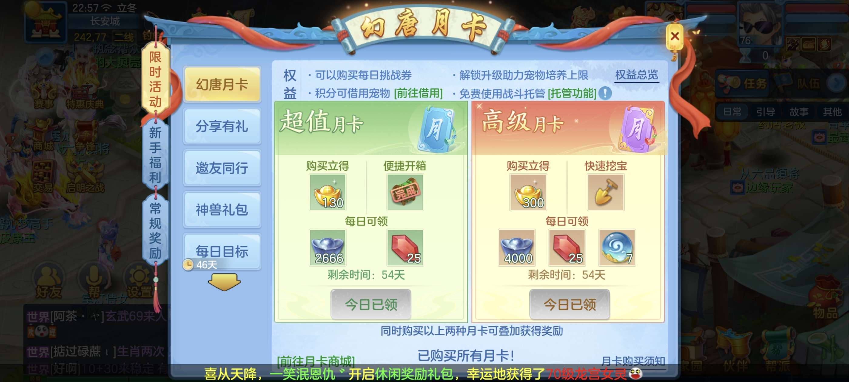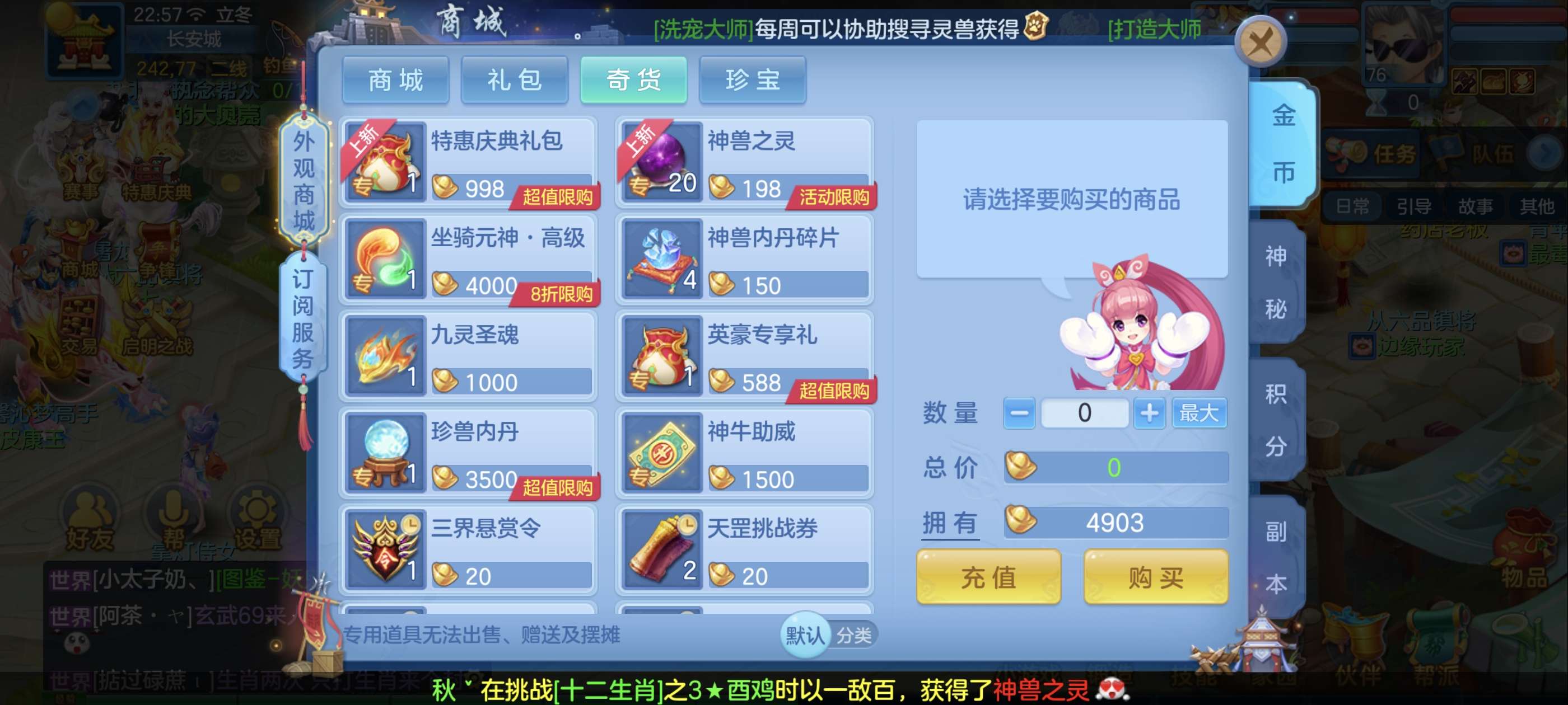 幻唐志:逍遥外传(神武4)【安卓官方】天行健,5技能大波老鼠,小熊,4900金,月卡50天