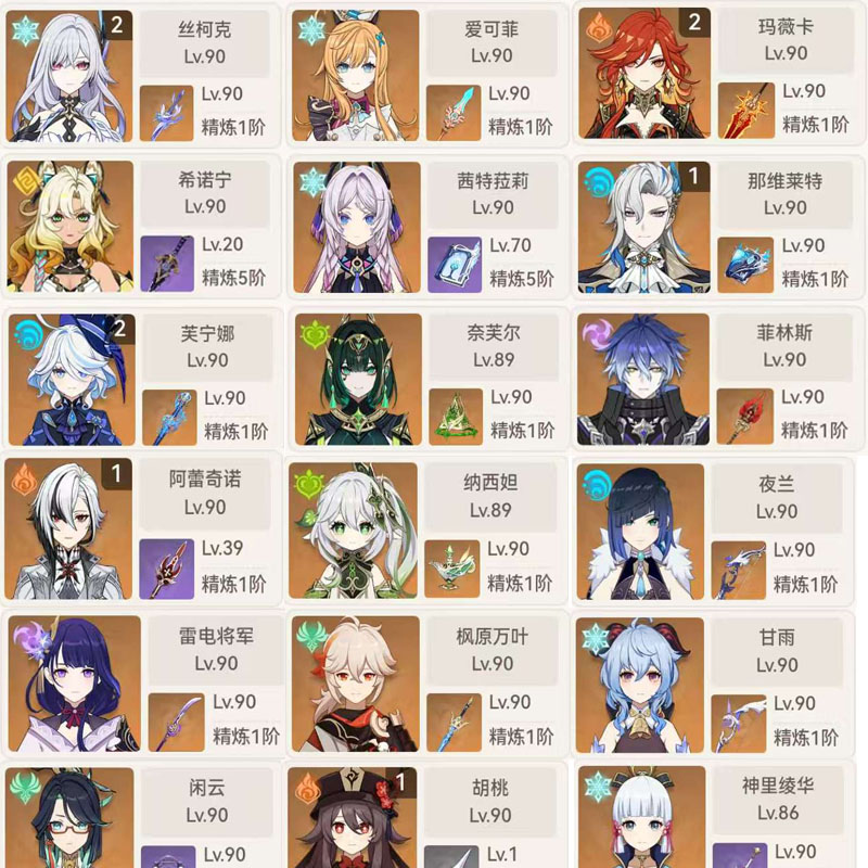 全图鉴账号一个角色不少