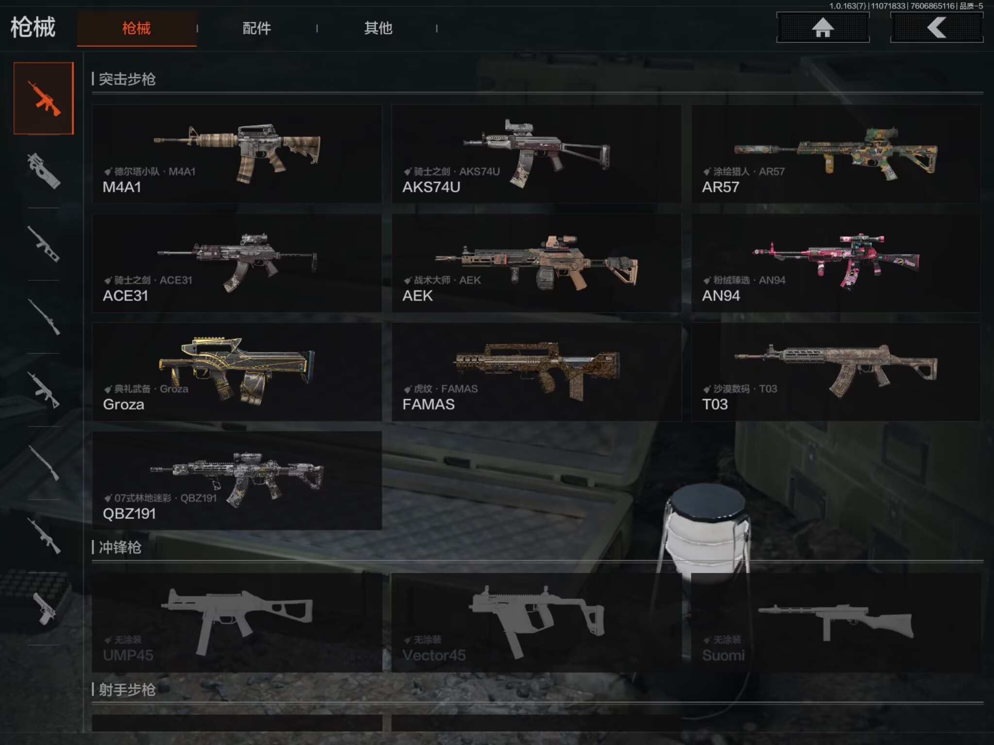 【枪皮】 战术大师·AEK 德尔塔小队·M4A1 骑士之剑·ACE31 典礼武备・Groza 战术大师·AEK 虎纹·FAMAS 沙漠数码·T03