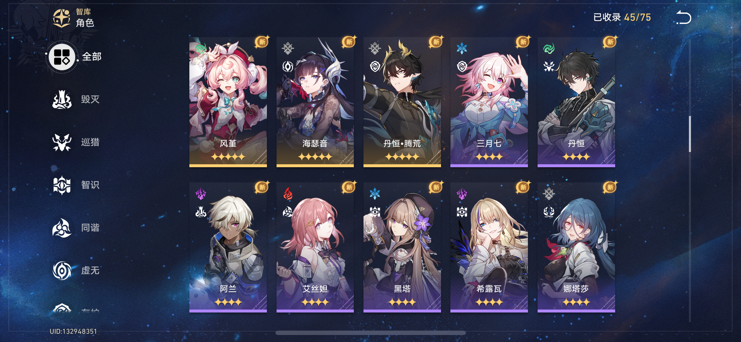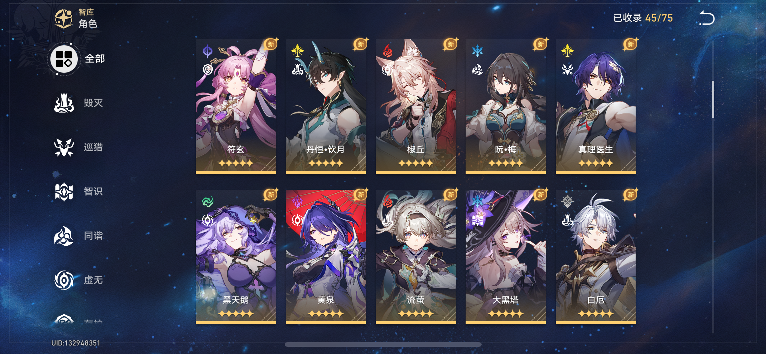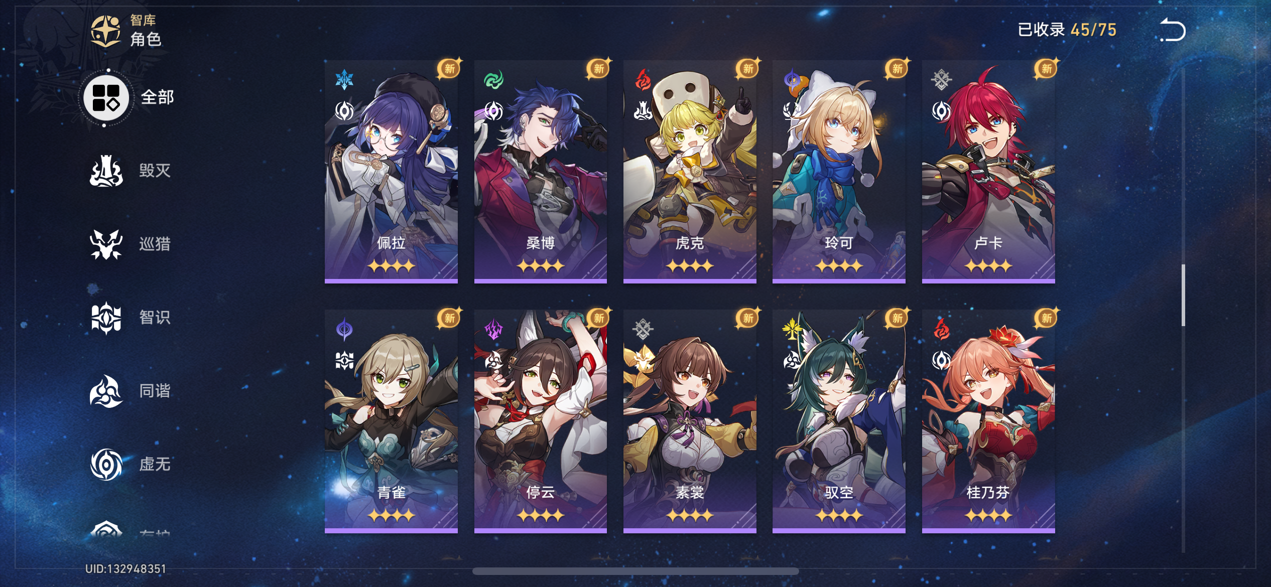 角色可以看截图,大部分限定c都有专属光椎,卡夫卡2加1有完整dot队,还有其他版本主推队伍,且角色培养都不错