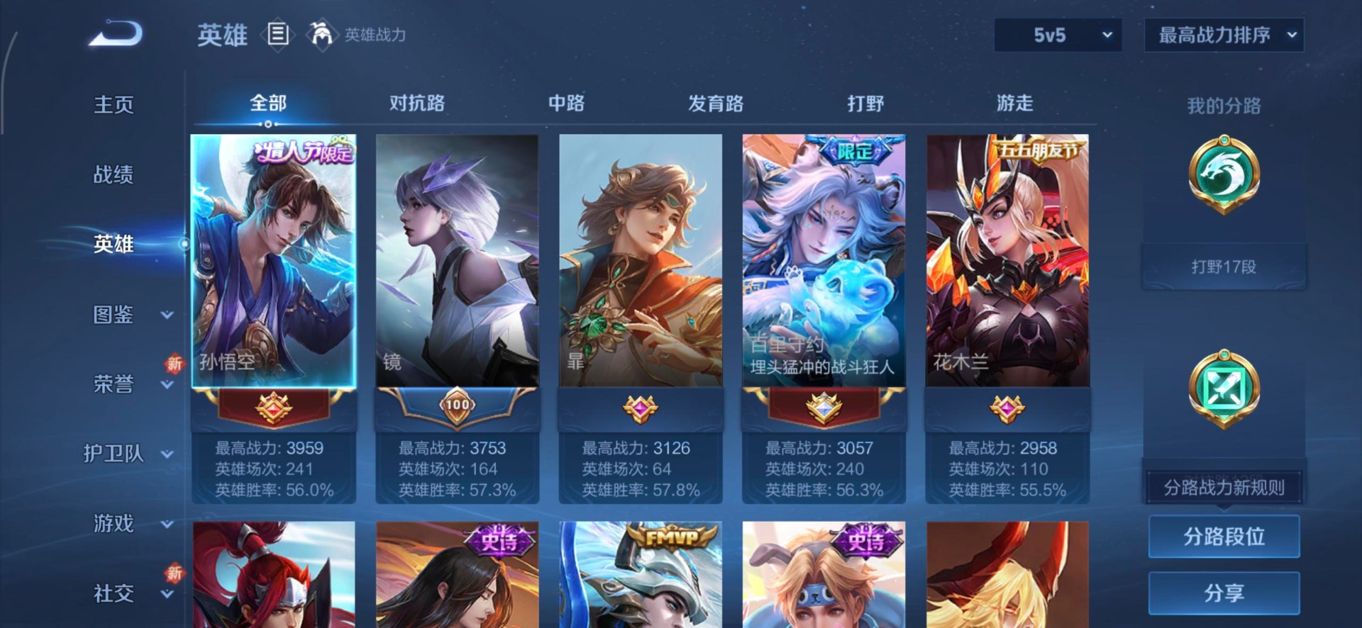 王者荣耀【安卓QQ】-可二次-0典藏-5传说-54史诗