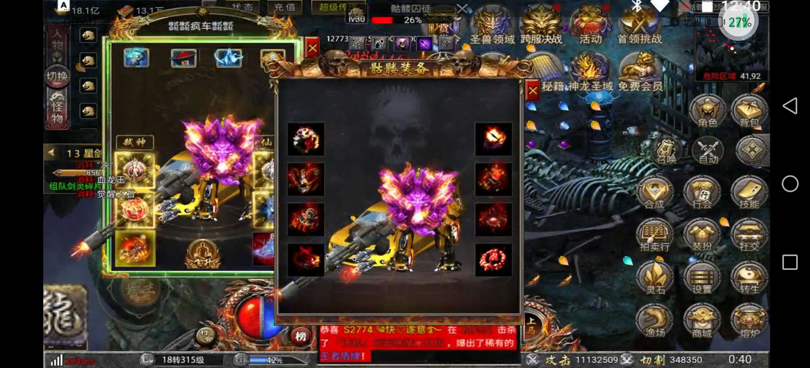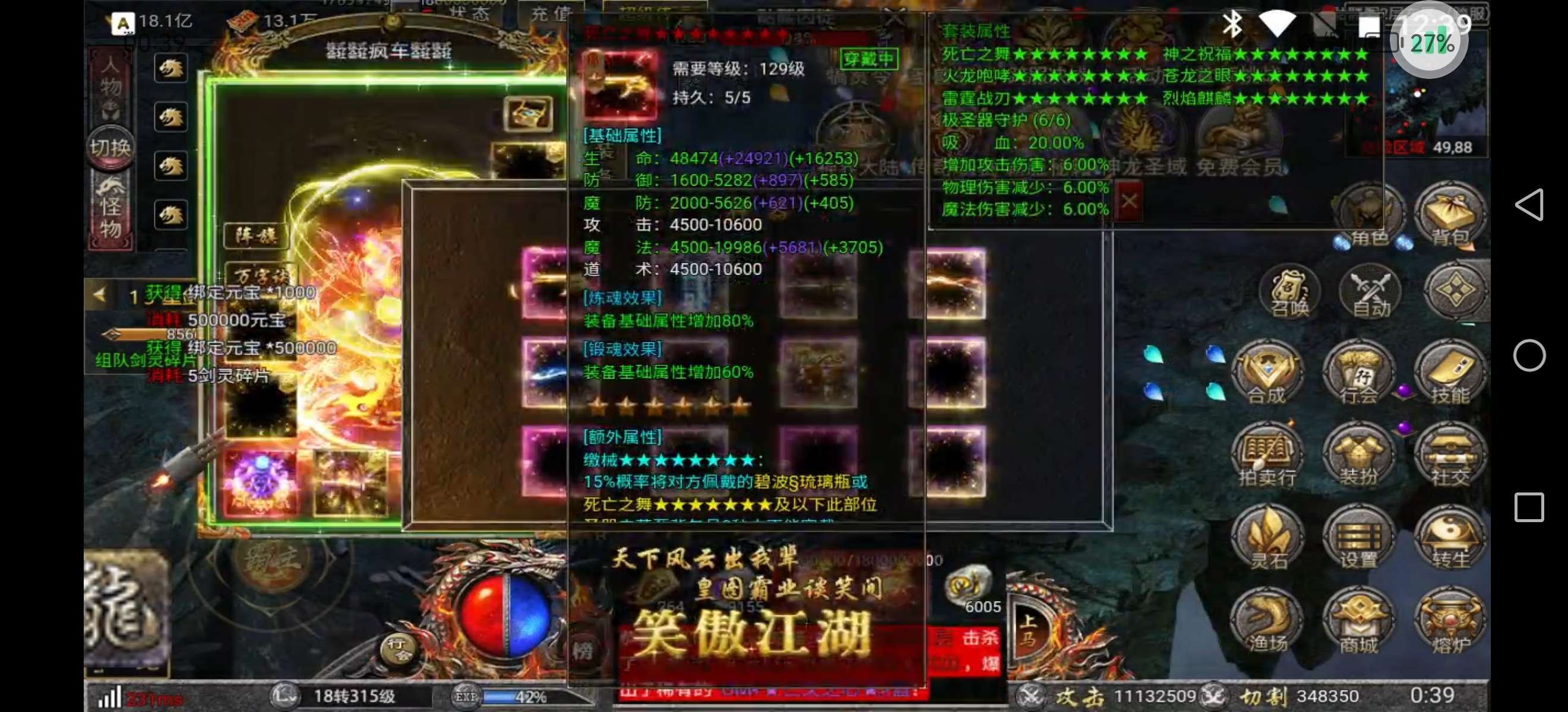 至尊首饰4s套少一个戒指,一个戒指是3s。武器13阶3s至尊,衣服12阶2s至尊,技能全,属性高