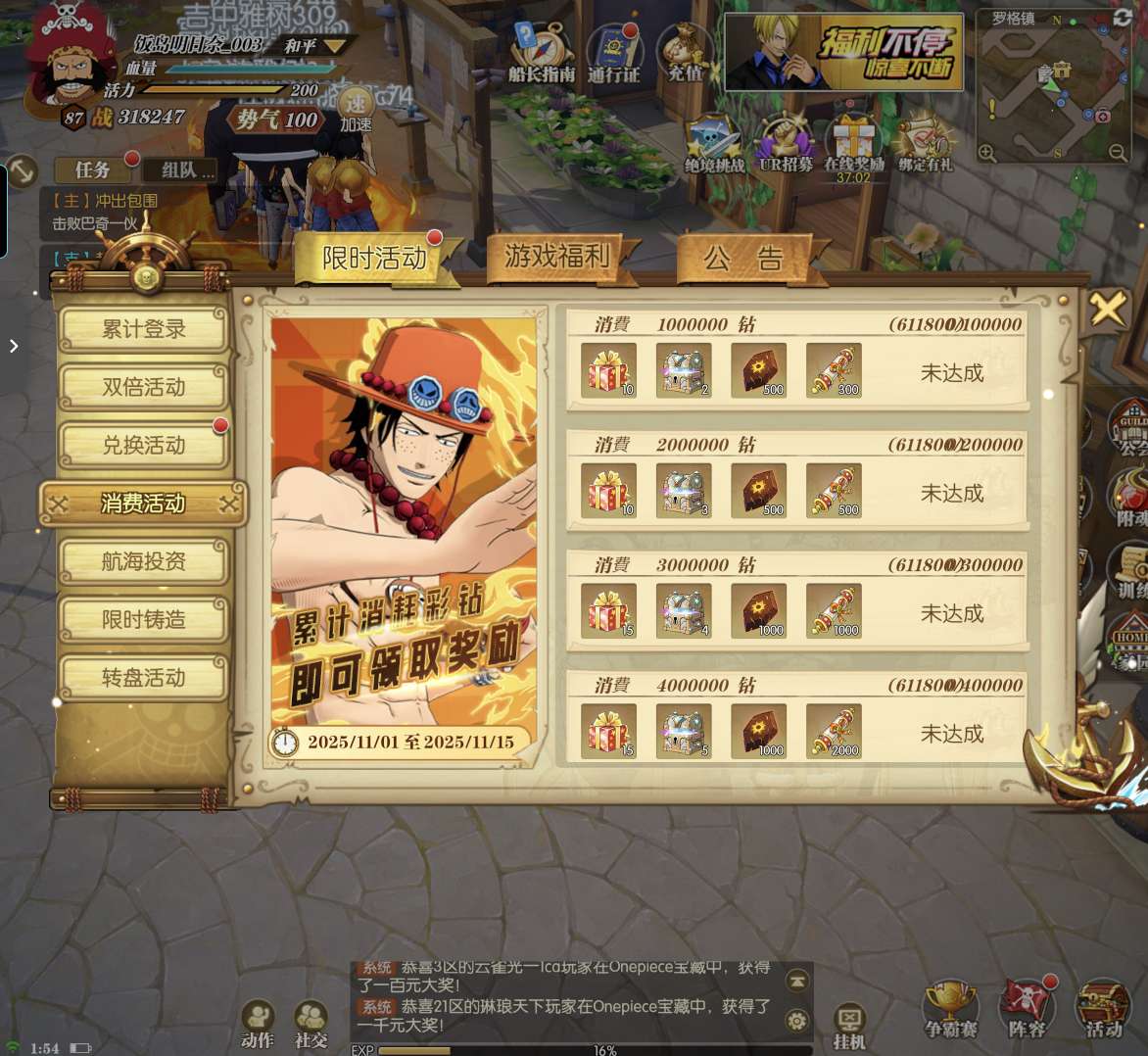 航海王:燃烧意志【安卓官方】bt!bt!bt服6星罗杰带皮肤和罗路飞等等开局号还有20多万彩钻60万累计消费等等也可以再换一套皮