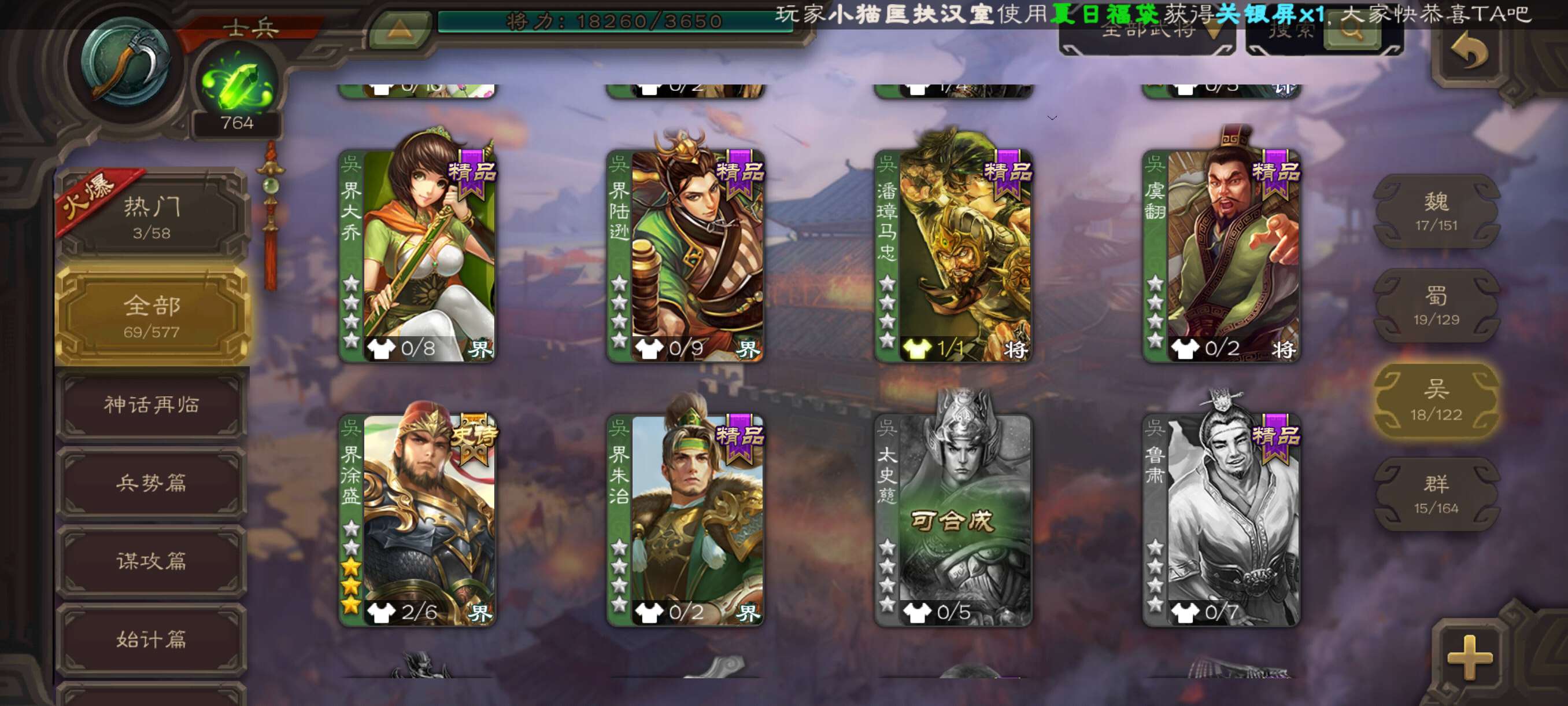 三国杀【安卓官方】动态界徐盛+骆统+麴义+界于禁超级士兵开局号!总将69,182招募令,游卡官服字母格式活绑