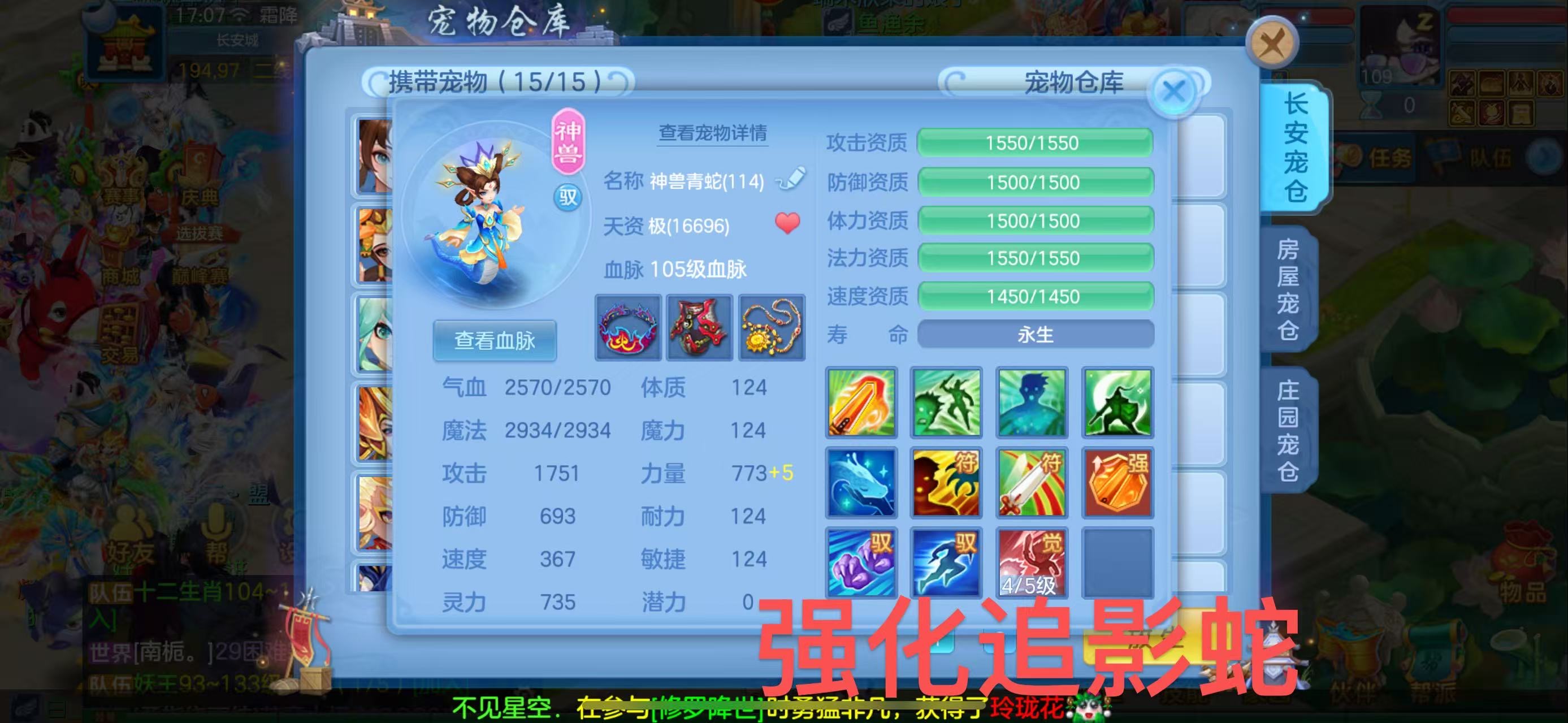 强化玉龙将,强化追影青蛇,还差8个蛋第二只蛇。多只红心紫心满资质特殊宠。