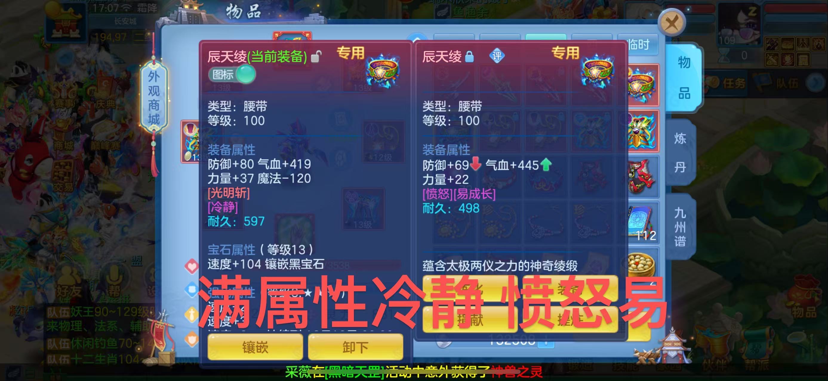 万木109一线万兽,满功必杀武器,愤怒易腰带。满属性冷静腰带。