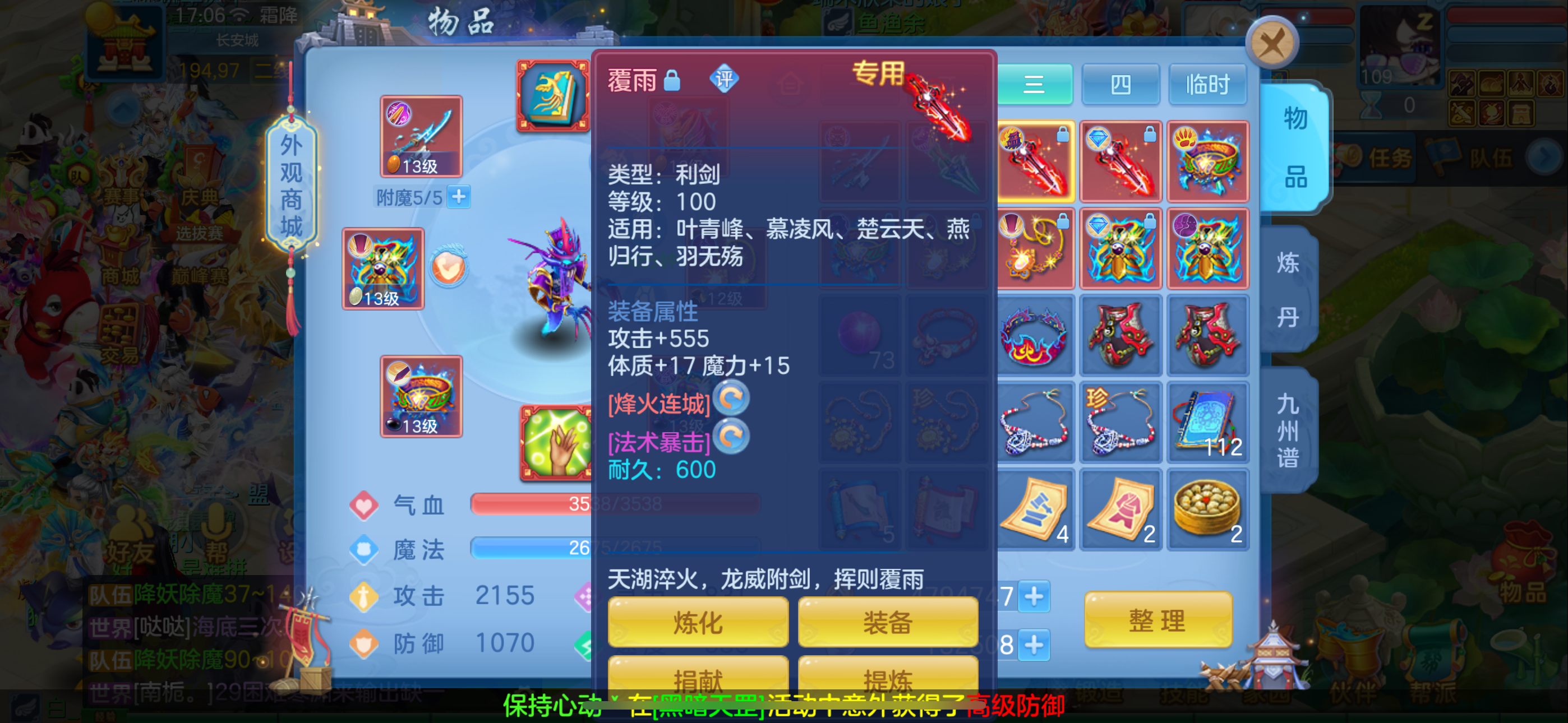玩法法爆烽火武器,173灵易成长项链,165灵易成长五雷项链。