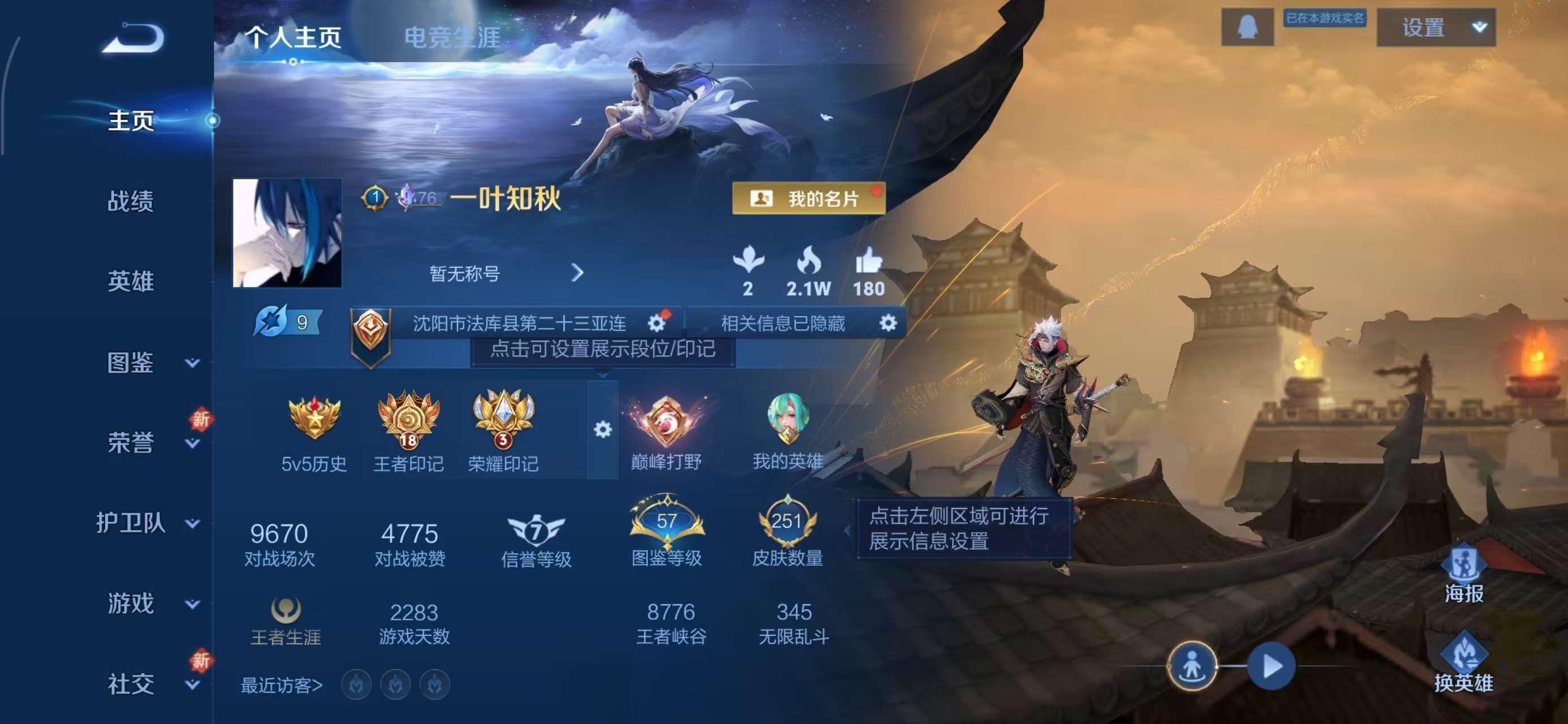 安卓QQ/非凡王者/251皮肤/127英雄/2典藏/0珍品无双/0无双/1珍品传说/13传说/62史