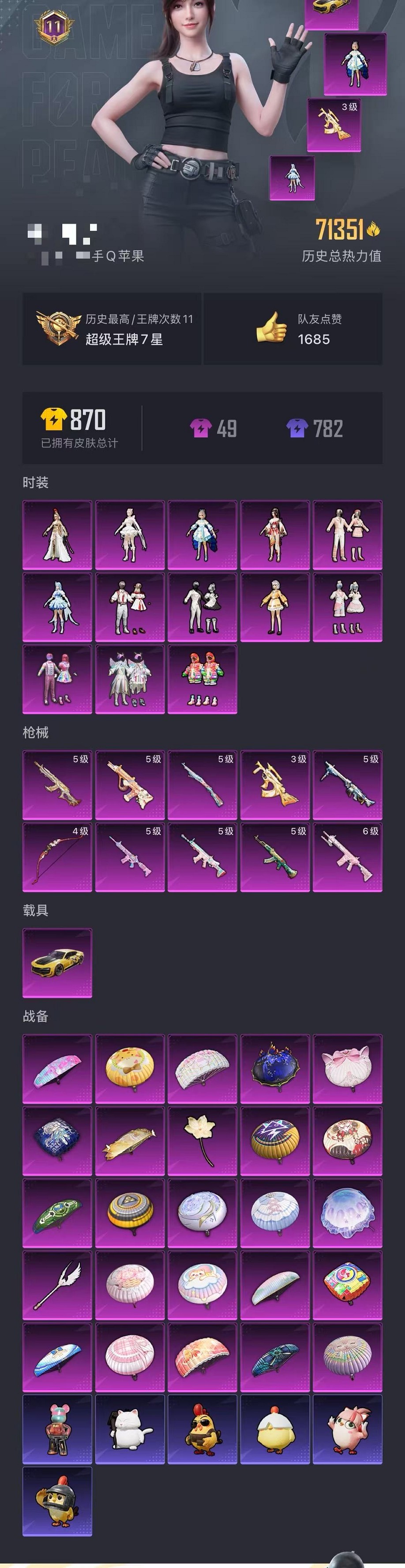 743-【精氪号 都市赤蝎金靴子梦幻猪脸巧克力26粉装13特效枪3载具可秒换绑】 苹果Q区-74422热力值-7印记-147套装-186枪皮 【4载具】 僚机-萌兔起飞 盛世惊鸿摩托车 晶梦灵驹 宝马M4(圣保罗黄)【2稀有】 赤蝎幽灵 派对舞王【26粉装】 缤纷油彩(猪脸妹) 梦幻火箭 宝贝奶油派 甜心巧克力 暖熊萌萌 馨动时刻 傲傲奶龙 天使彩虹糖 星空之魅 茉莉星 恐龙拽拽 放客神游 海盐物语 白勺歌姬 冰川幽秘 桃粉嫣然 角色-翎光蝶翼 星月云朵 蜜语绒猫 星穹咏叹调 角色-狂魅哈莉 角